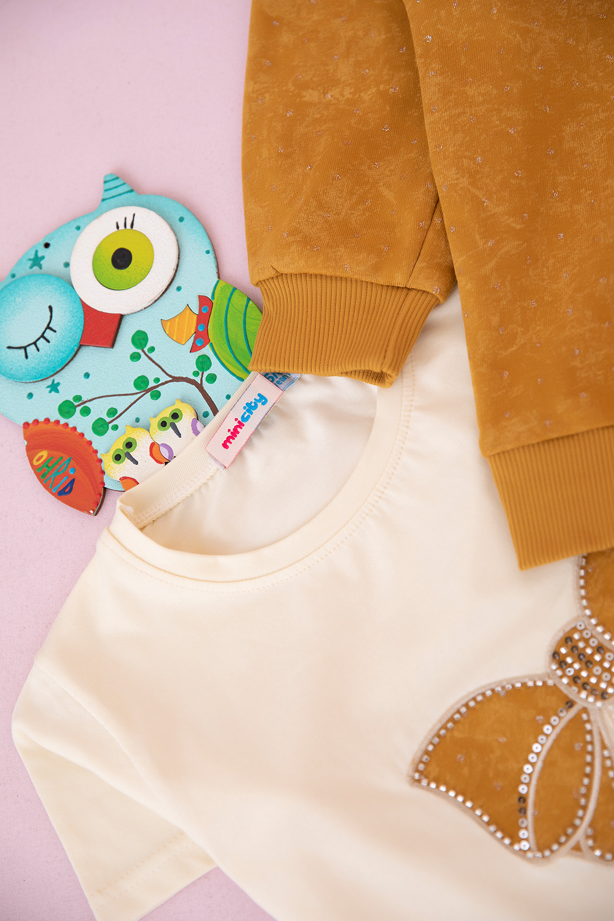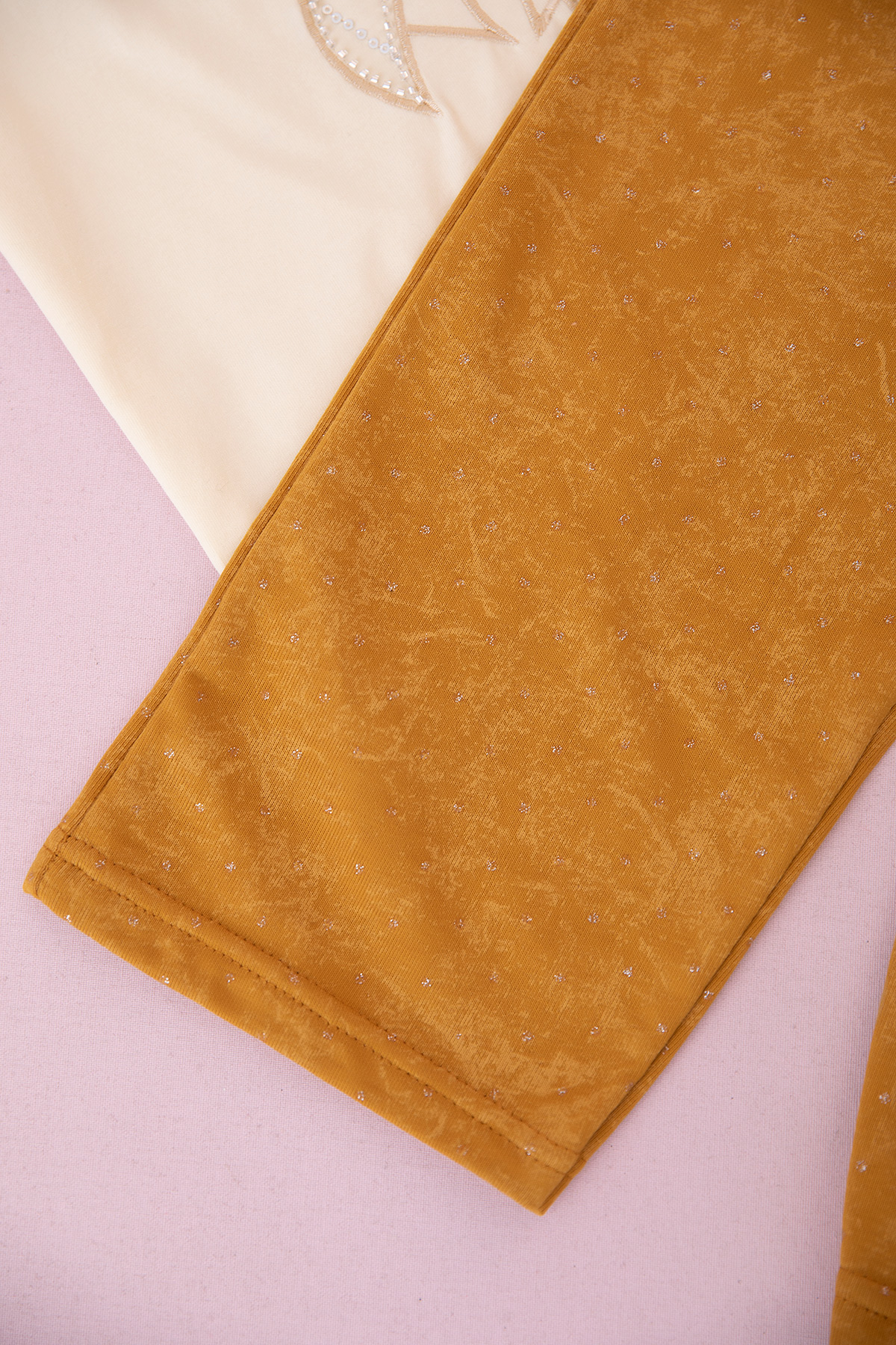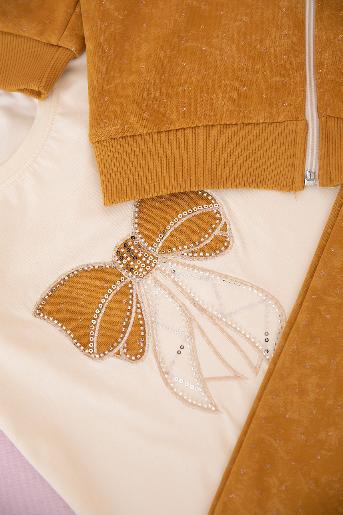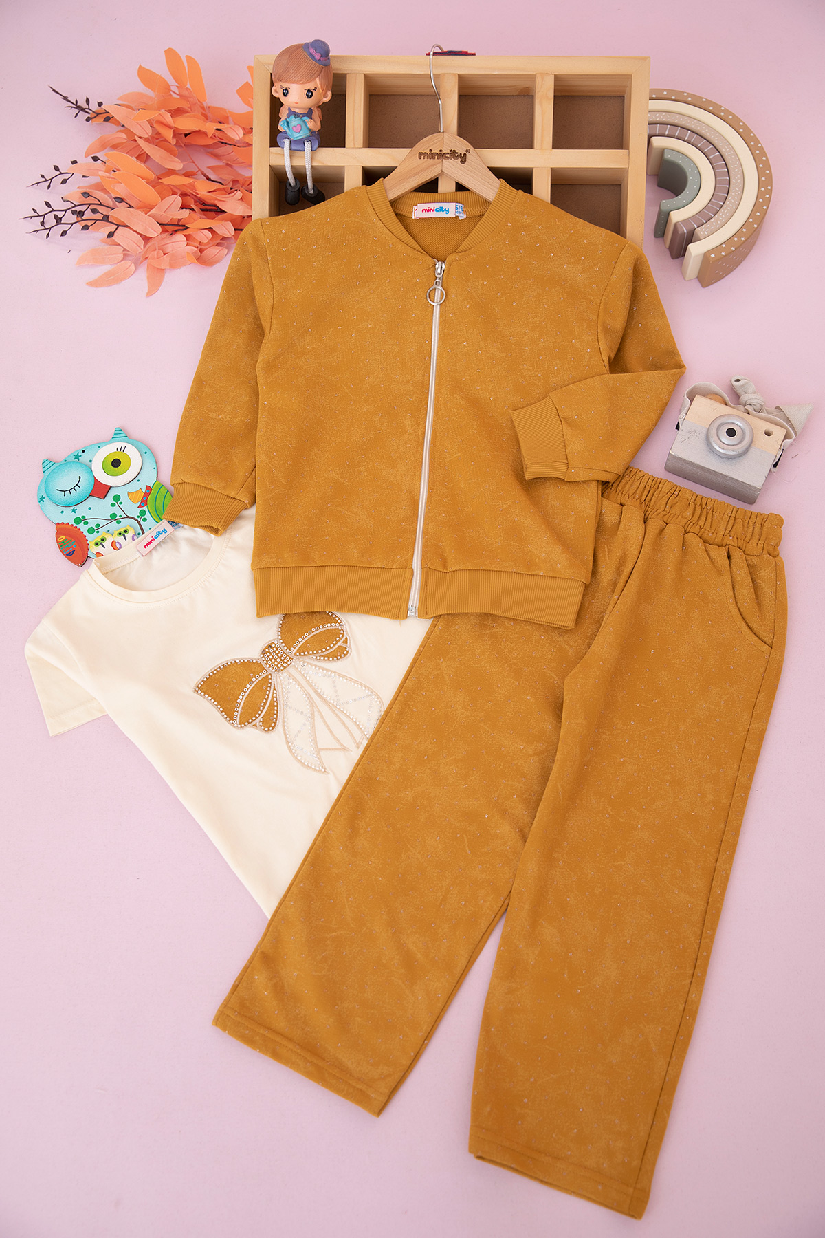 Kız Çocuk Simli Fiyonk Nakışlı Üçlü Takım (5-12 Yaş)