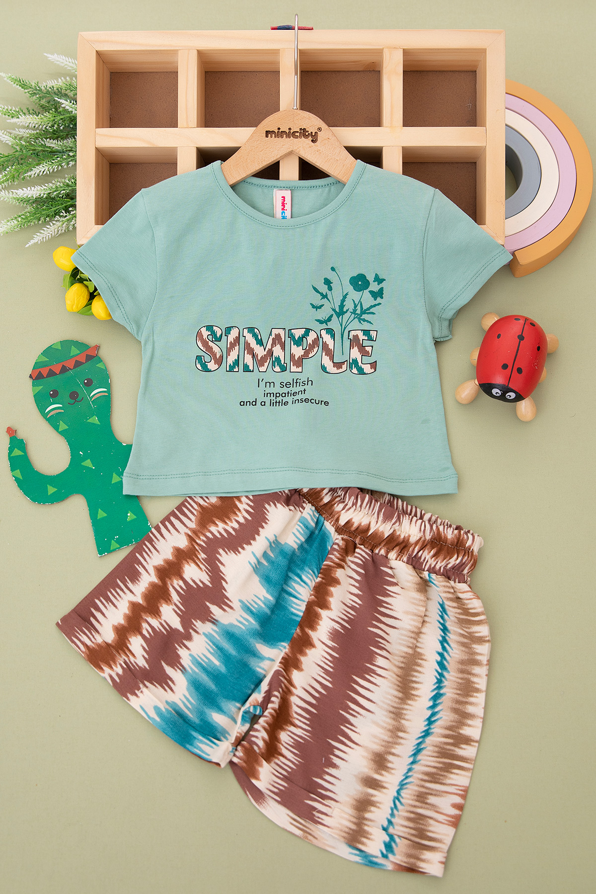 Kız Çocuk Sımple Baskılı Şortlu Takım - 3002 (2-5 Yaş)