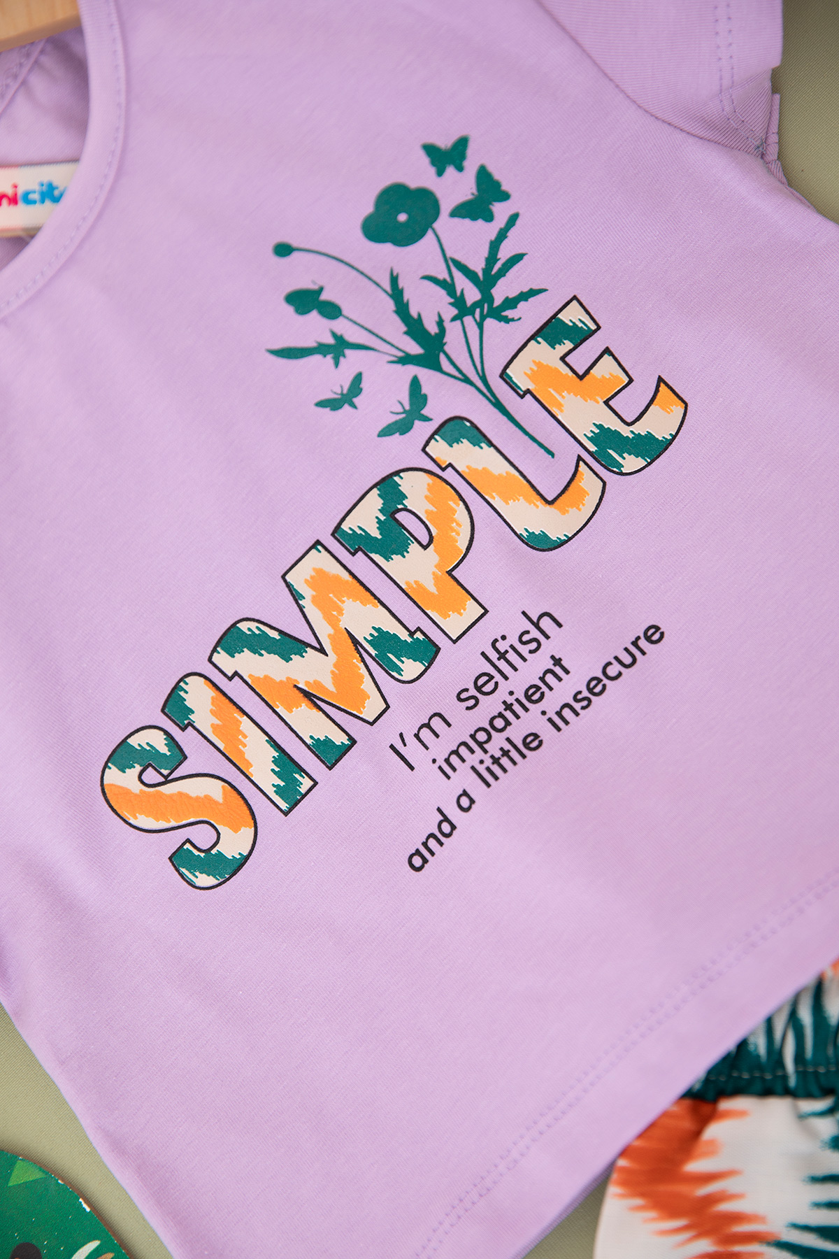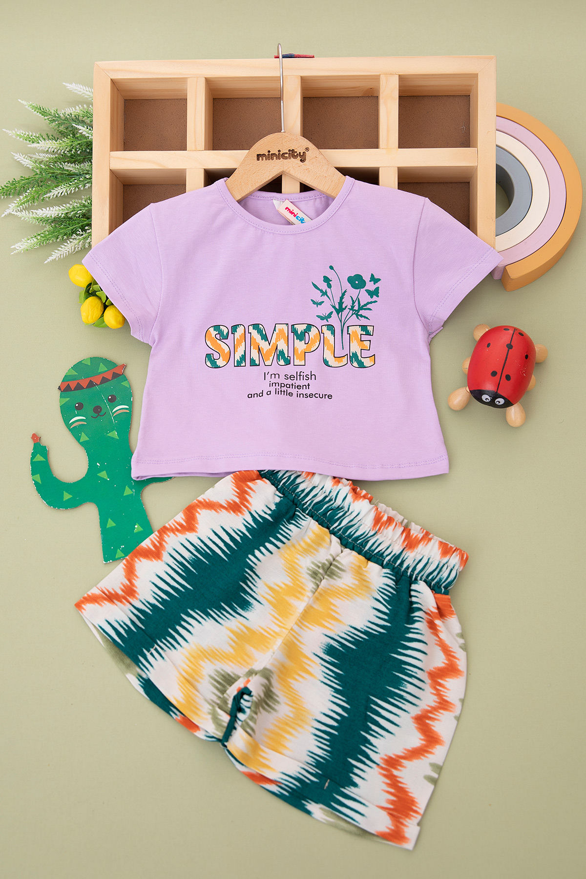 Kız Çocuk Sımple Baskılı Şortlu Takım - 3003 (5-8 Yaş)