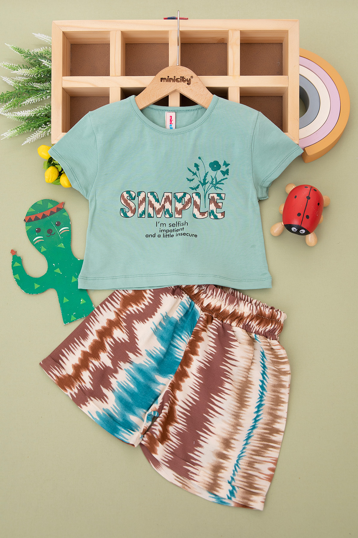 Kız Çocuk Sımple Baskılı Şortlu Takım - 3003 (5-8 Yaş)