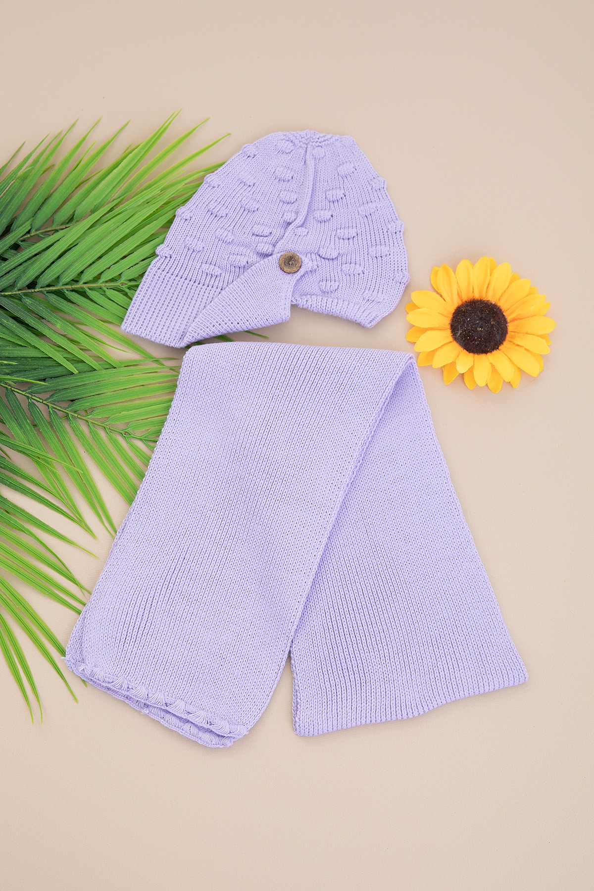 Kız Çocuk Siperli Şapka Atkı Takım - 9008