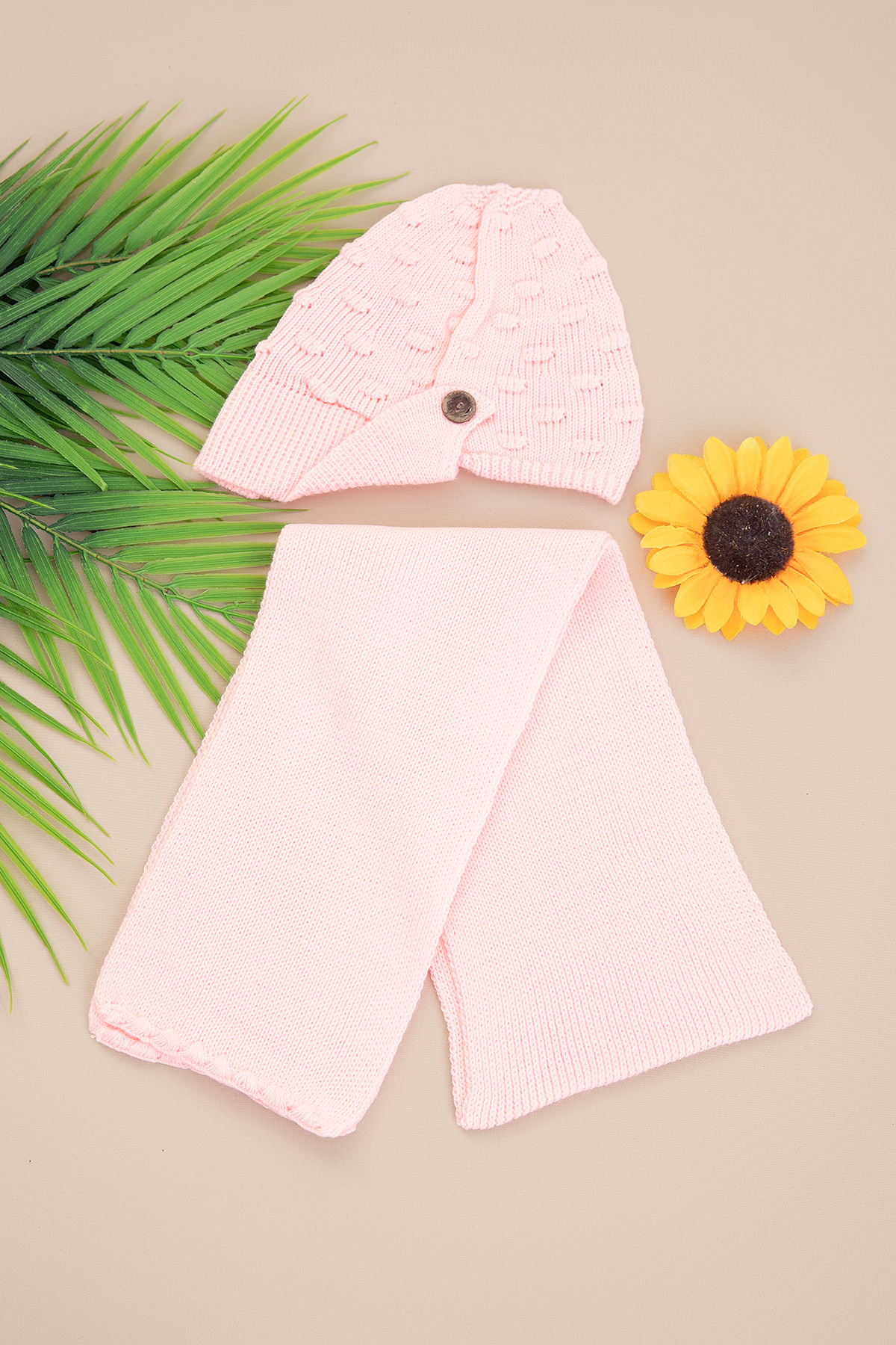 Kız Çocuk Siperli Şapka Atkı Takım - 9008