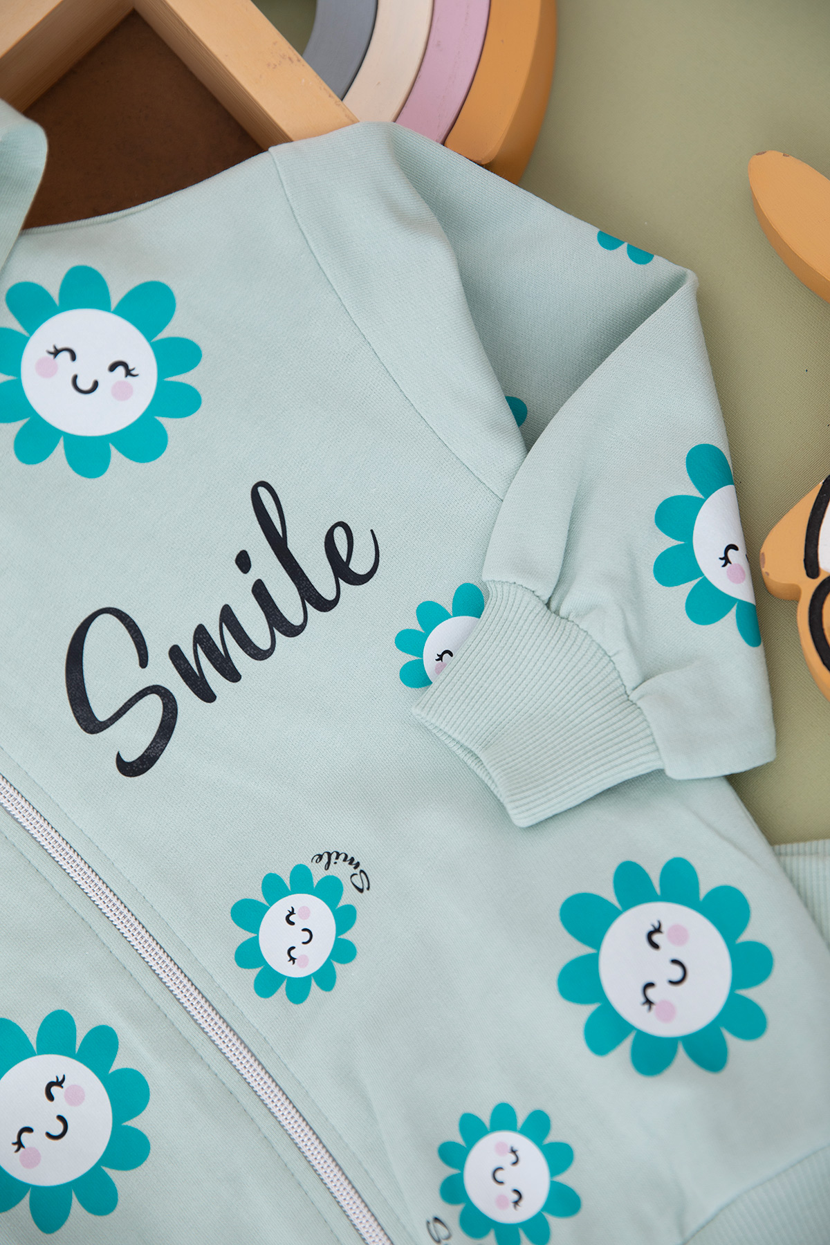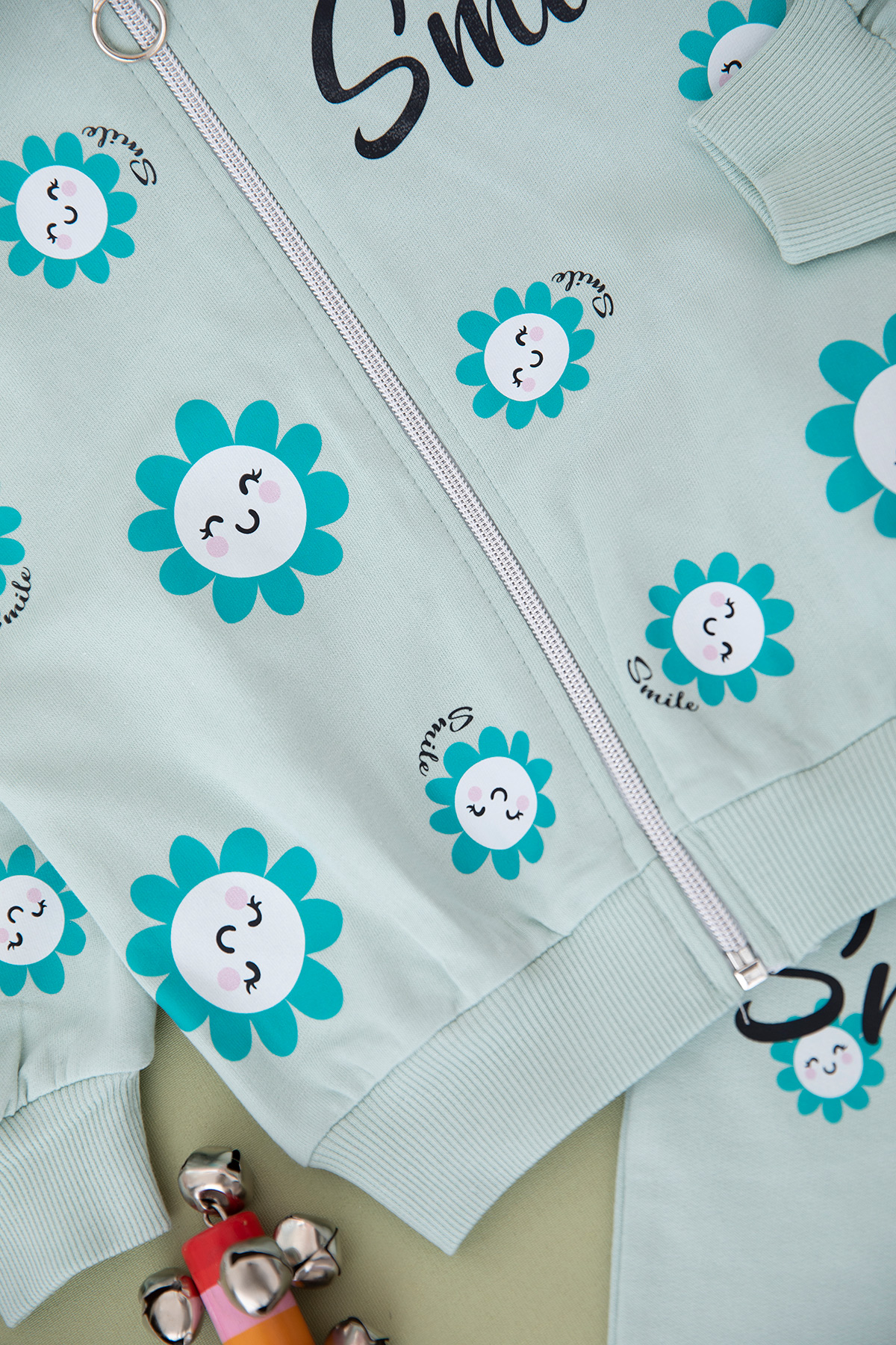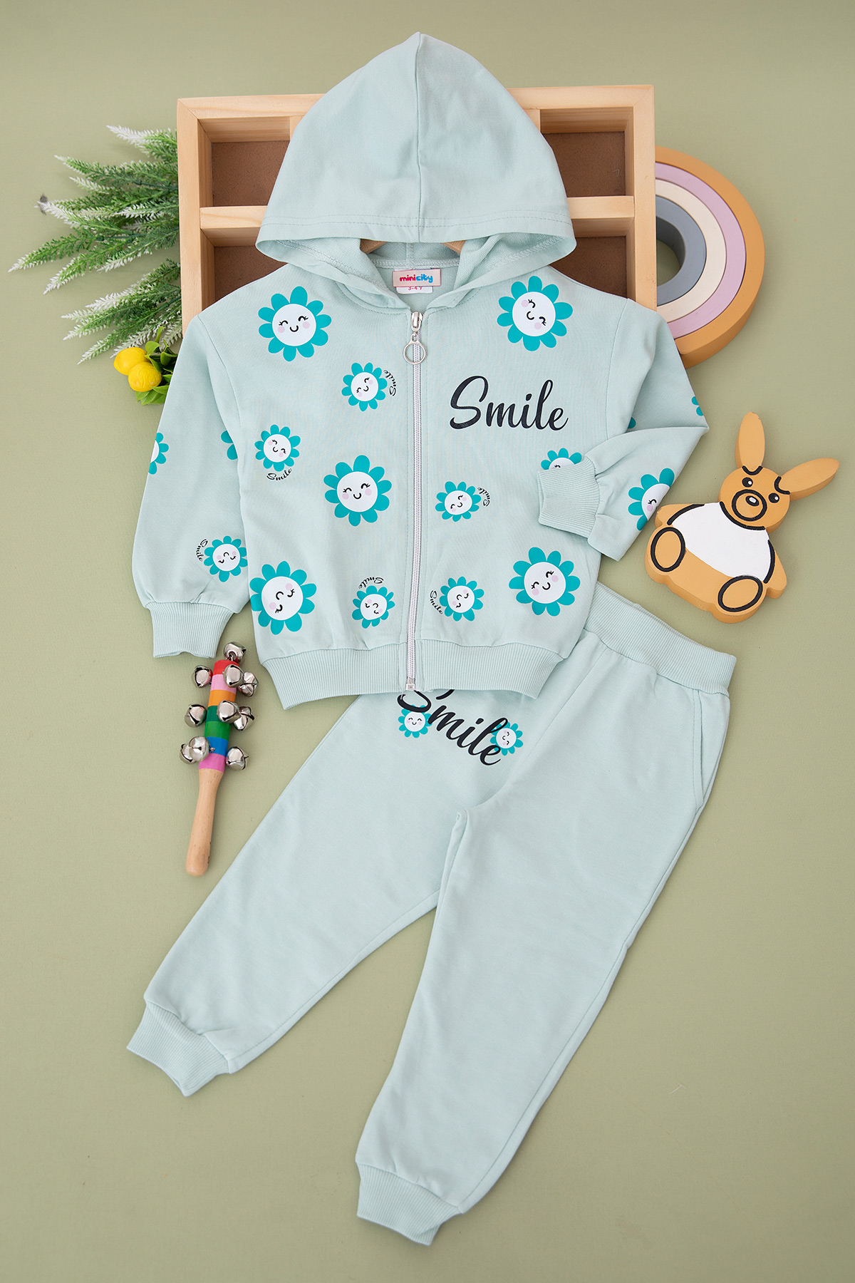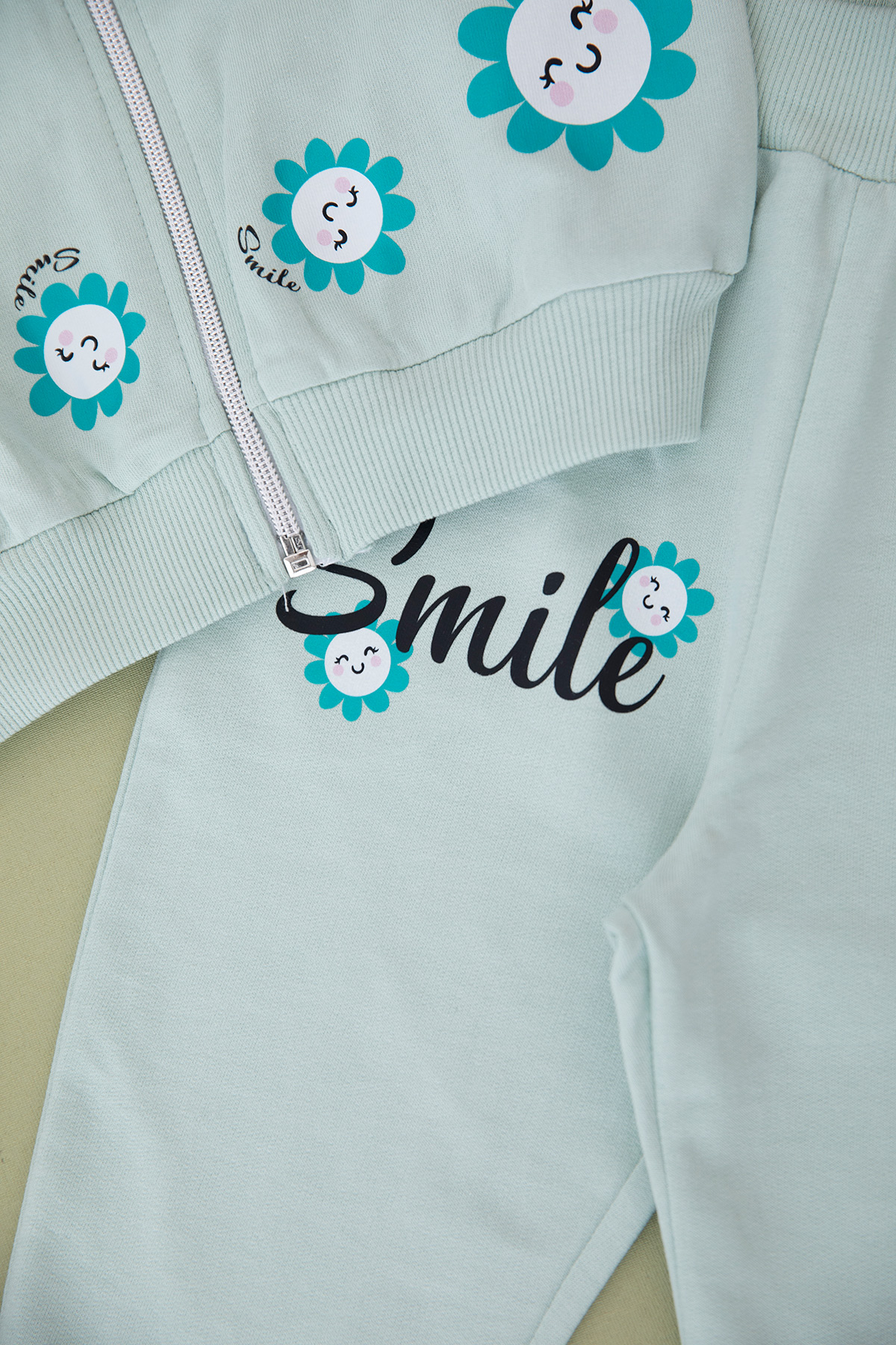 Kız Çocuk Smile Baskılı Fermuarlı Kapşonlu Takım - 3418 (3-6 Yaş)
