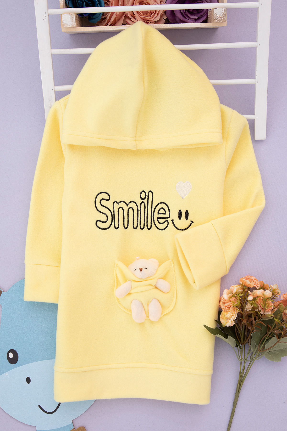Kız Çocuk Smile Nakışlı Ayıcıklı Tunik - 0137 (5-9 Yaş)