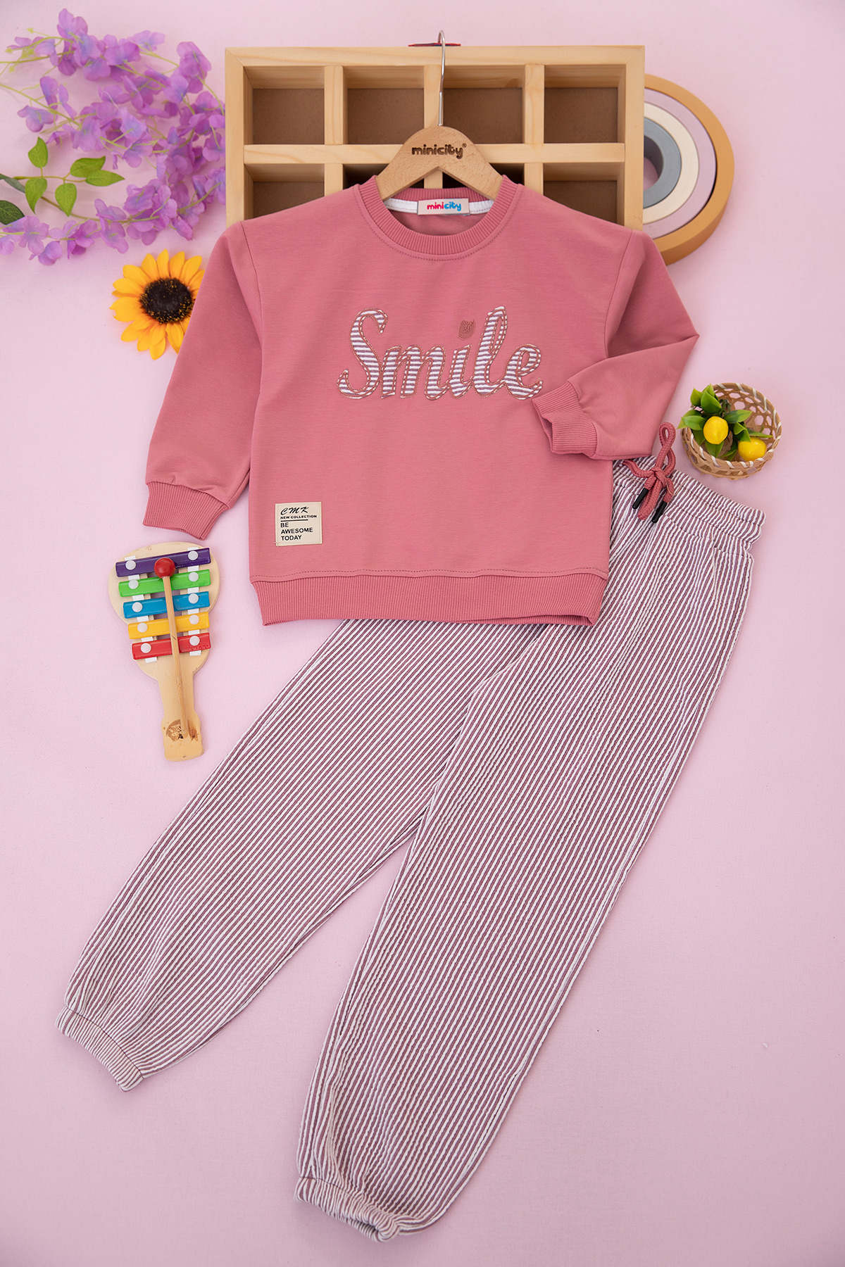 Kız Çocuk Smile Nakışlı Takım - 200790 (4-11 Yaş)