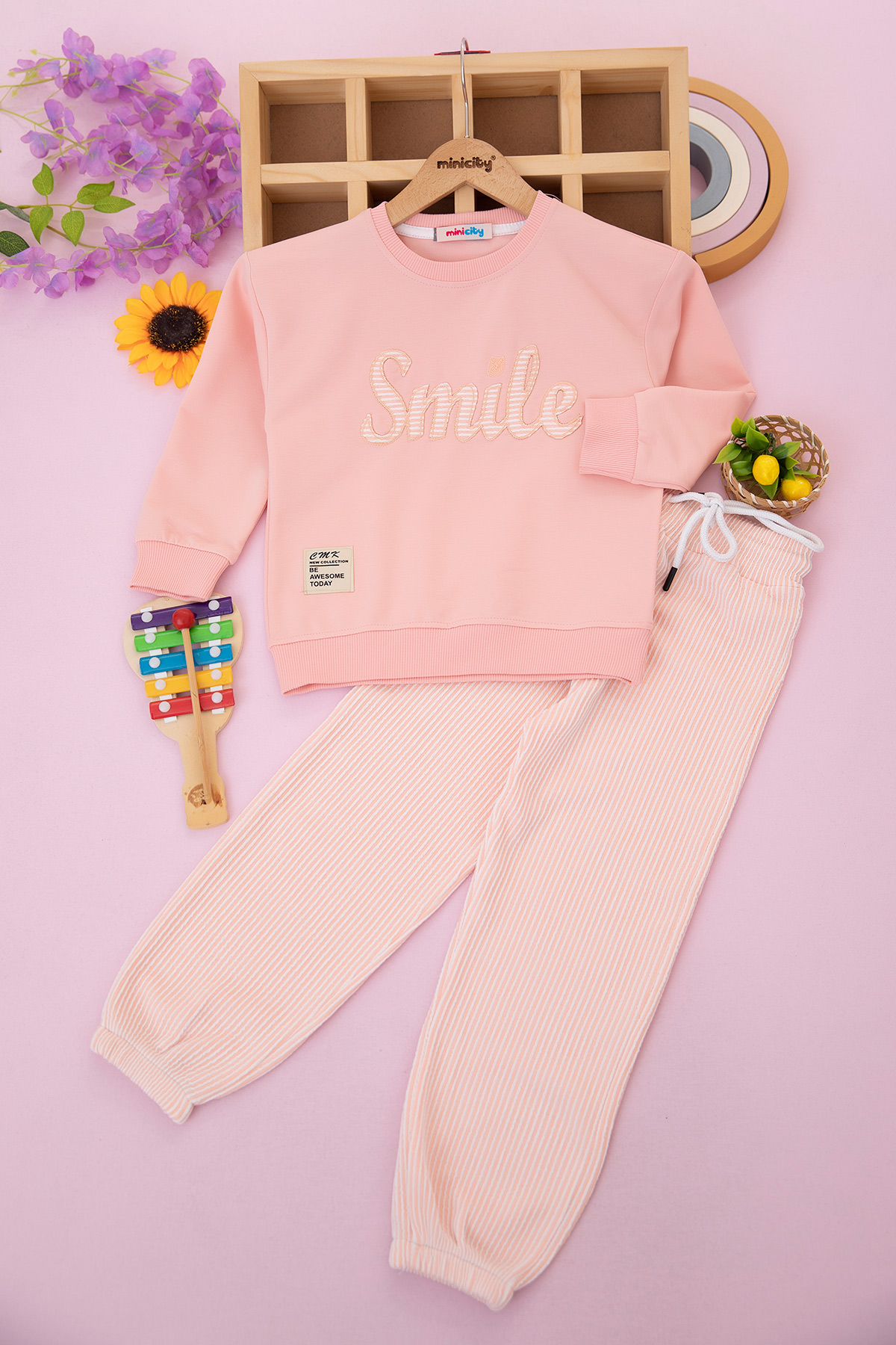 Kız Çocuk Smile Nakışlı Takım - 200790 (4-11 Yaş)