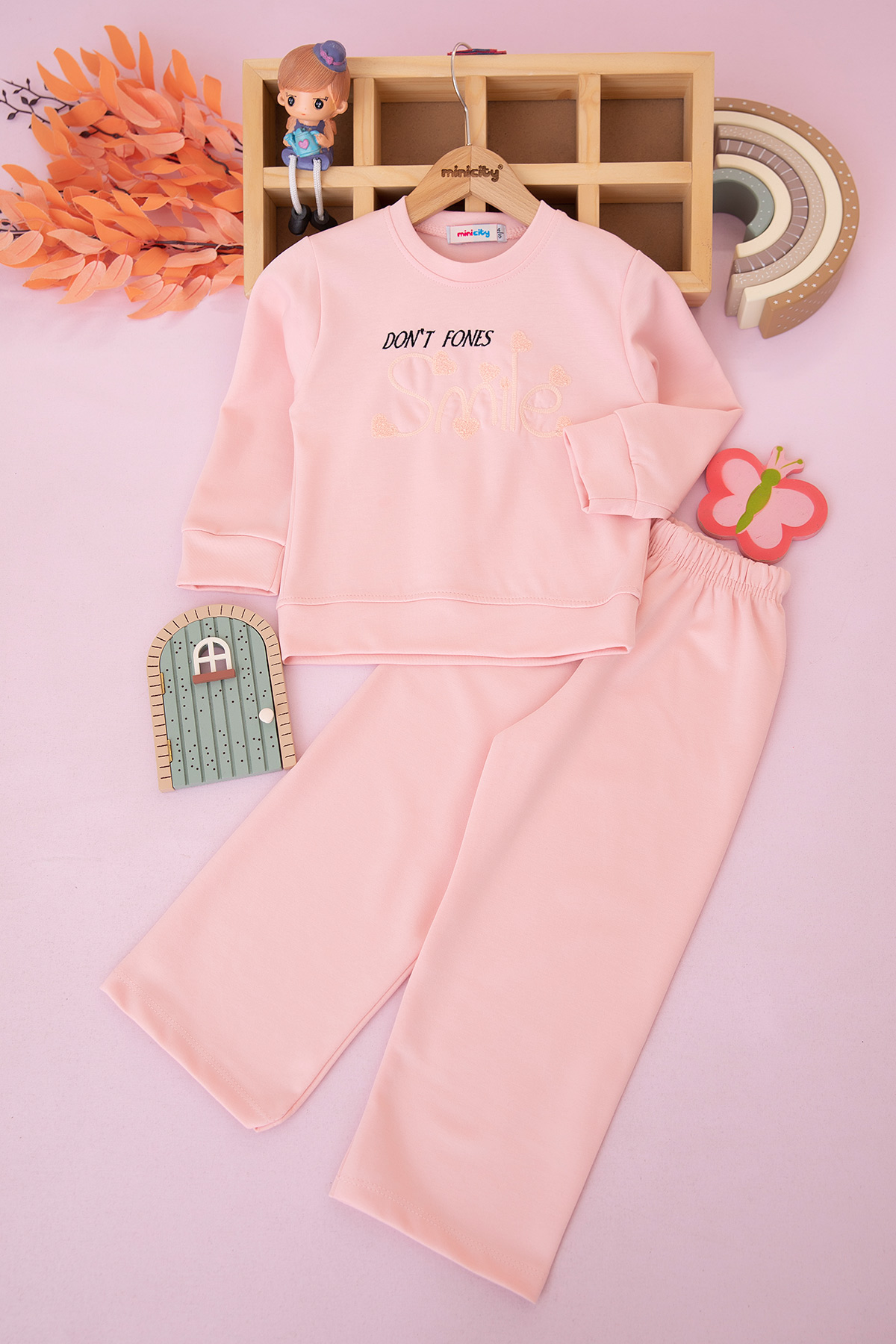 Kız Çocuk Smile Nakışlı Takım - 70115 (3-10 Yaş)