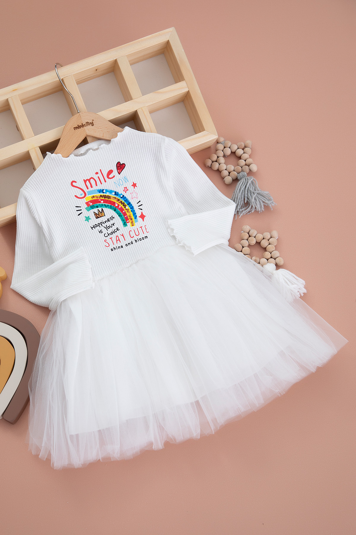 Kız Çocuk Smile Uzun Kollu Tüllü Elbise - 1041 (2-4 Yaş)