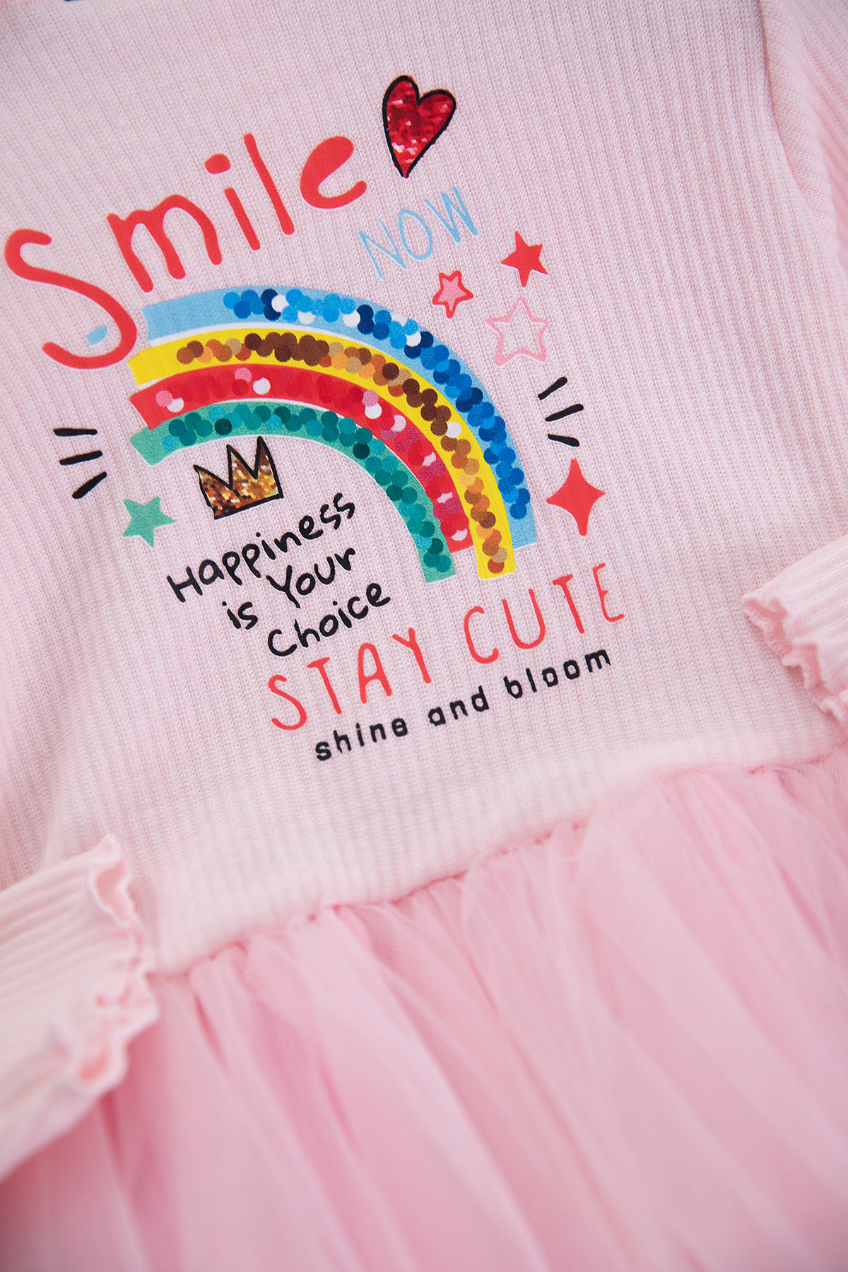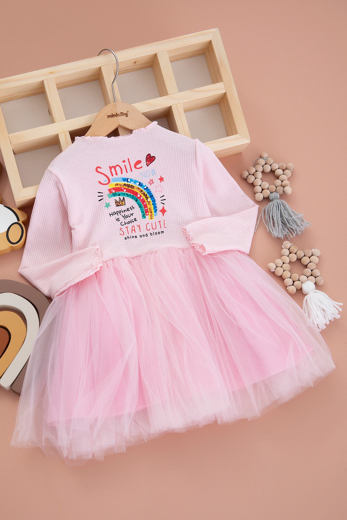 Kız Çocuk Smile Uzun Kollu Tüllü Elbise - 1041 (2-4 Yaş)
