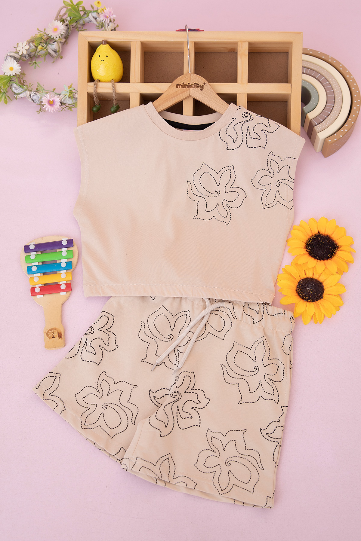 Kız Çocuk Sol Omuz Baskılı Takım - 8673 (7-10 Yaş)