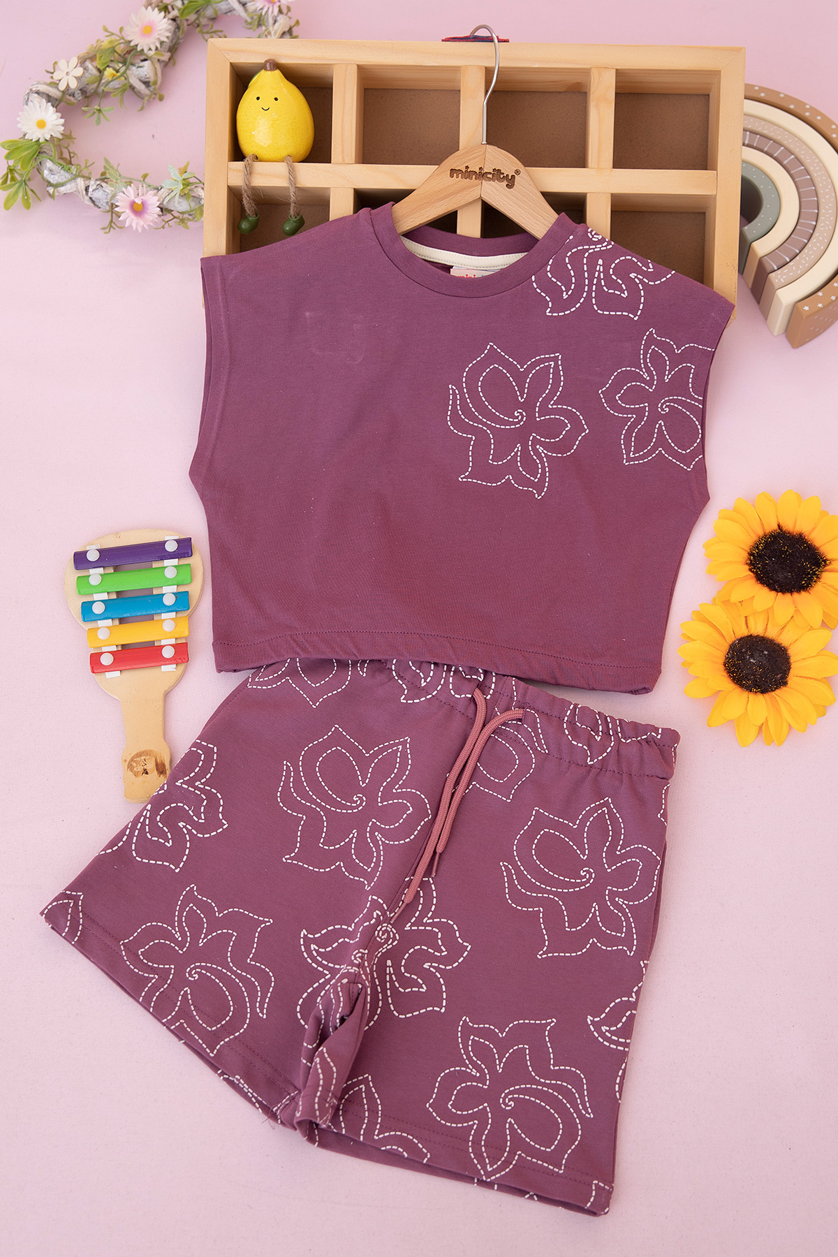 Kız Çocuk Sol Omuz Baskılı Takım - 8673 (7-10 Yaş)