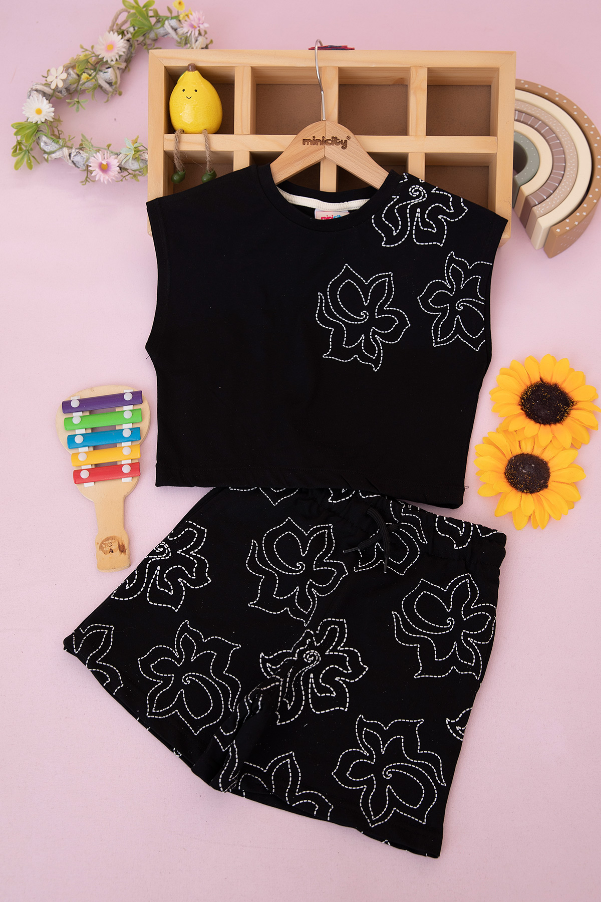 Kız Çocuk Sol Omuz Baskılı Takım - 8673 (7-10 Yaş)