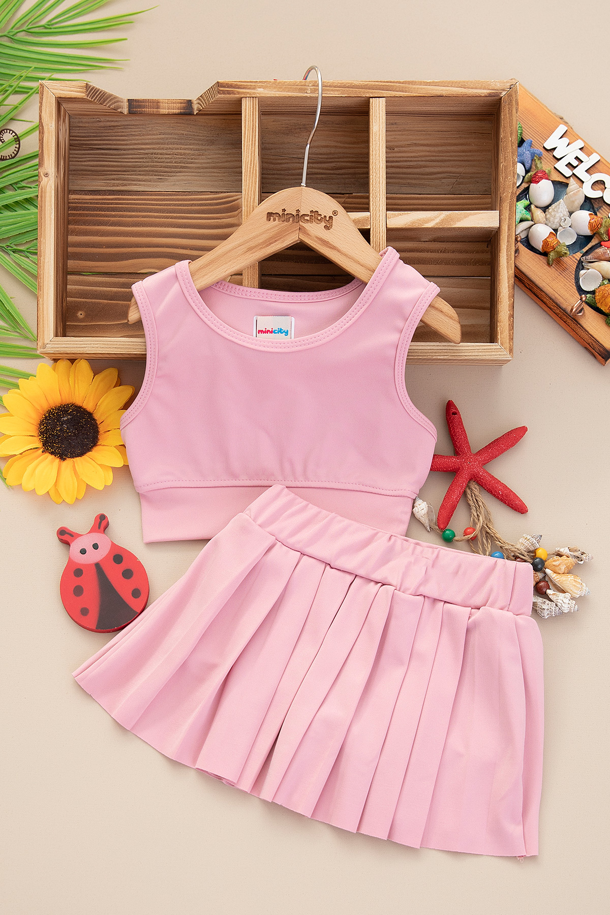 Kız Çocuk Şort Etek Crop Mayo Takım - 9002
