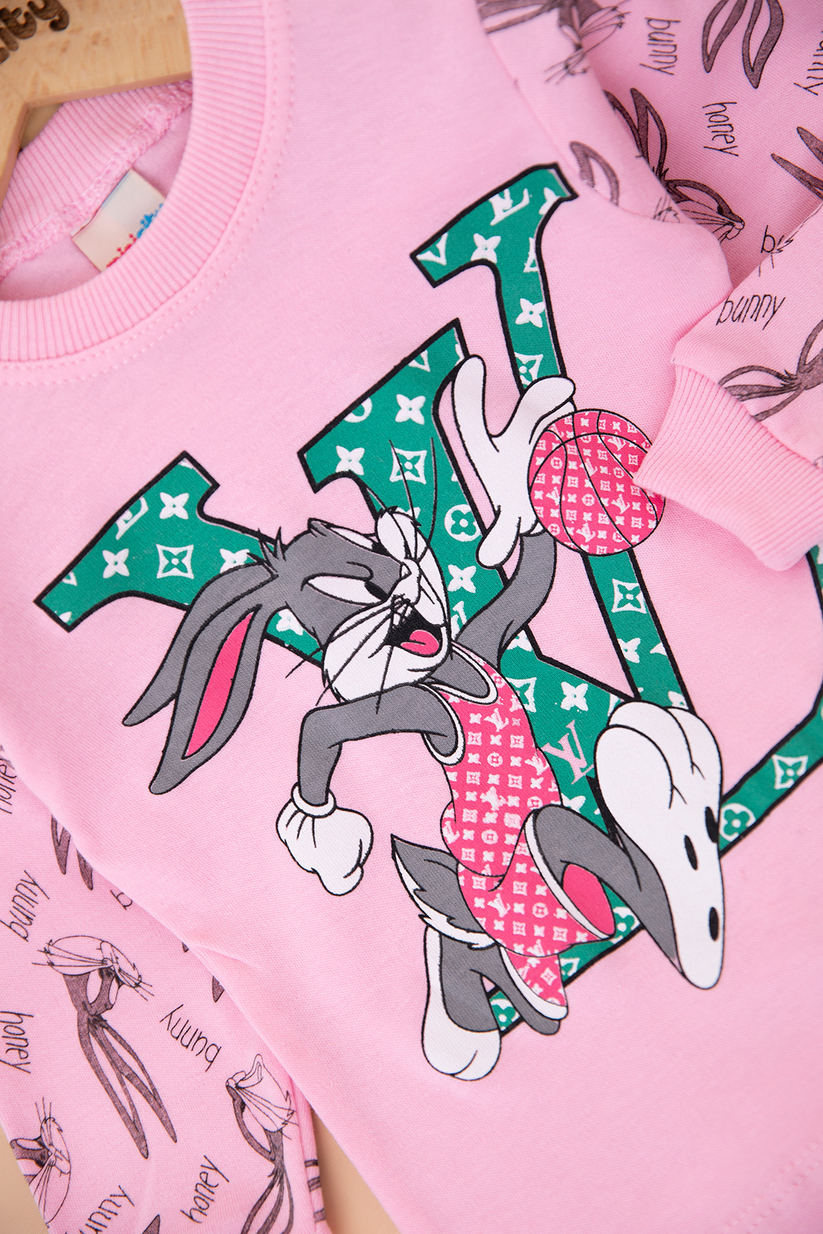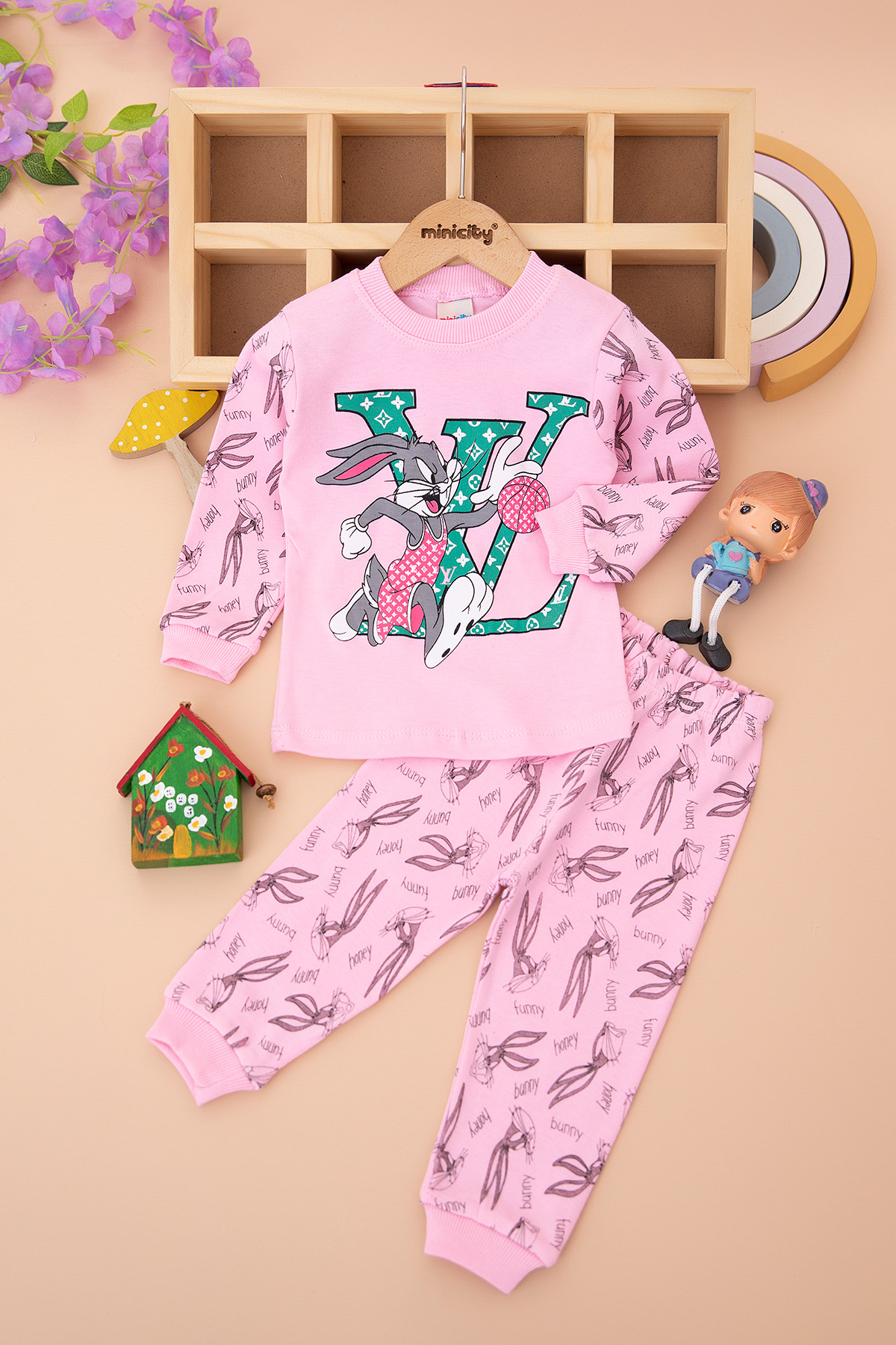 Kız Çocuk Sporcu Tavşan Pijama Takım - 1304 (1-3 Yaş)