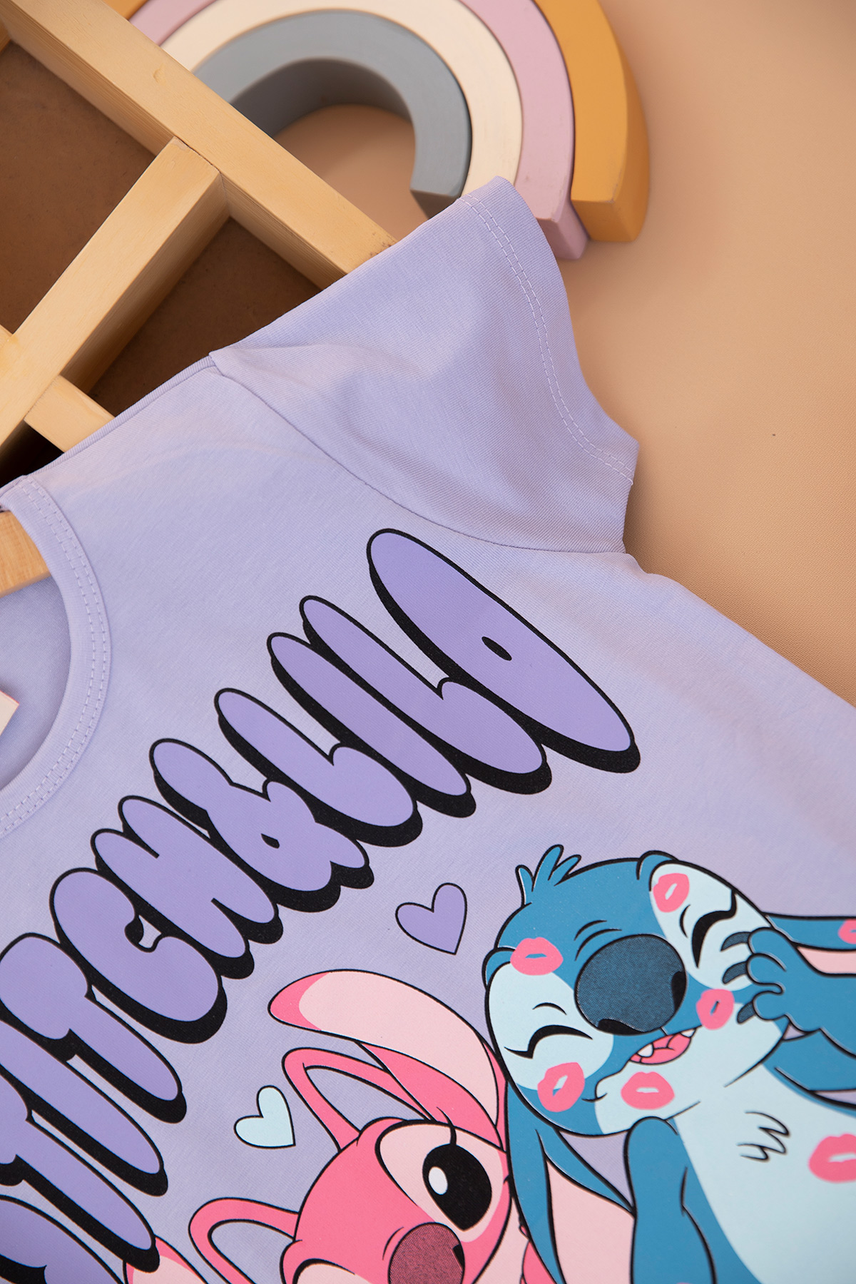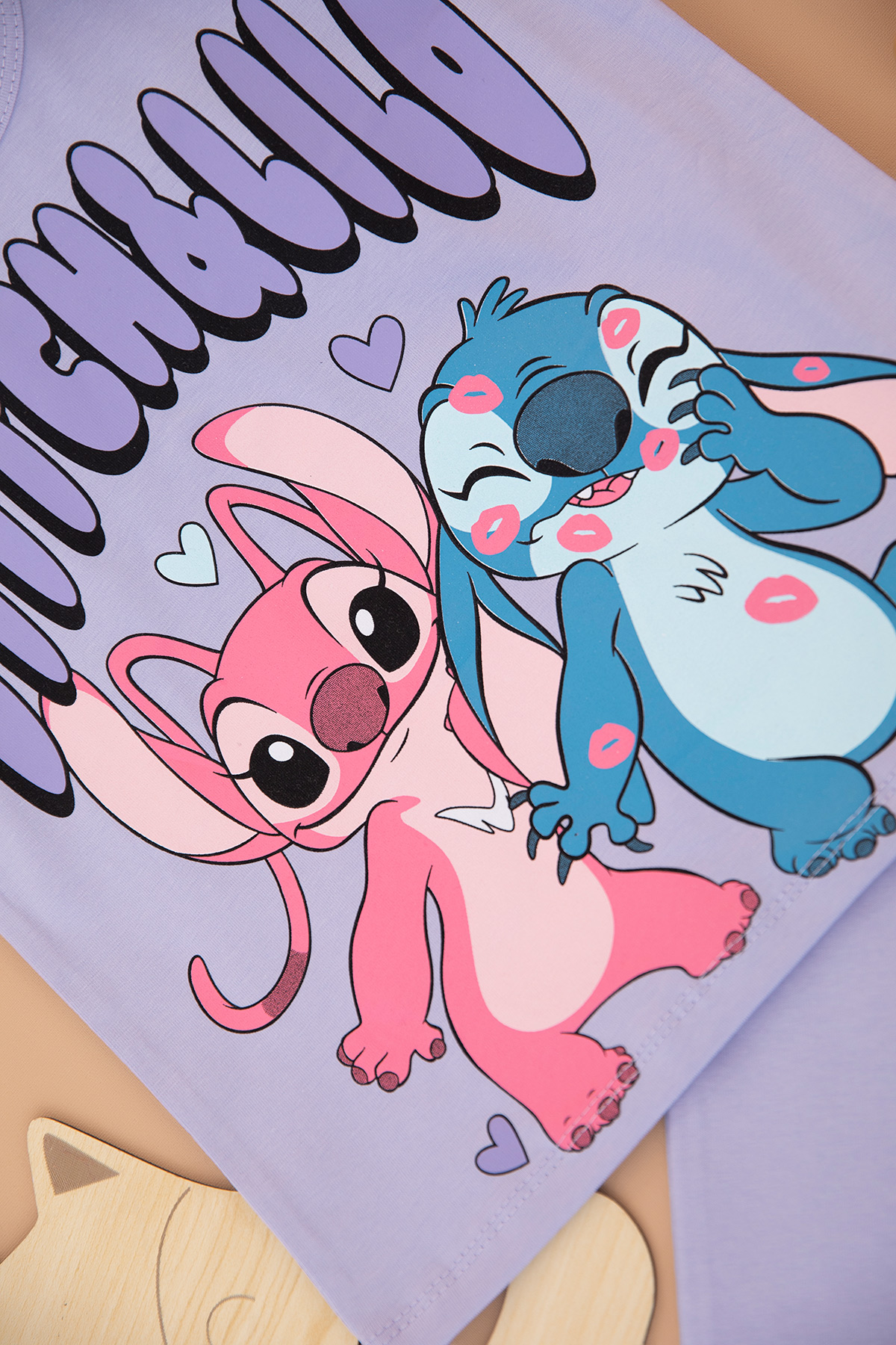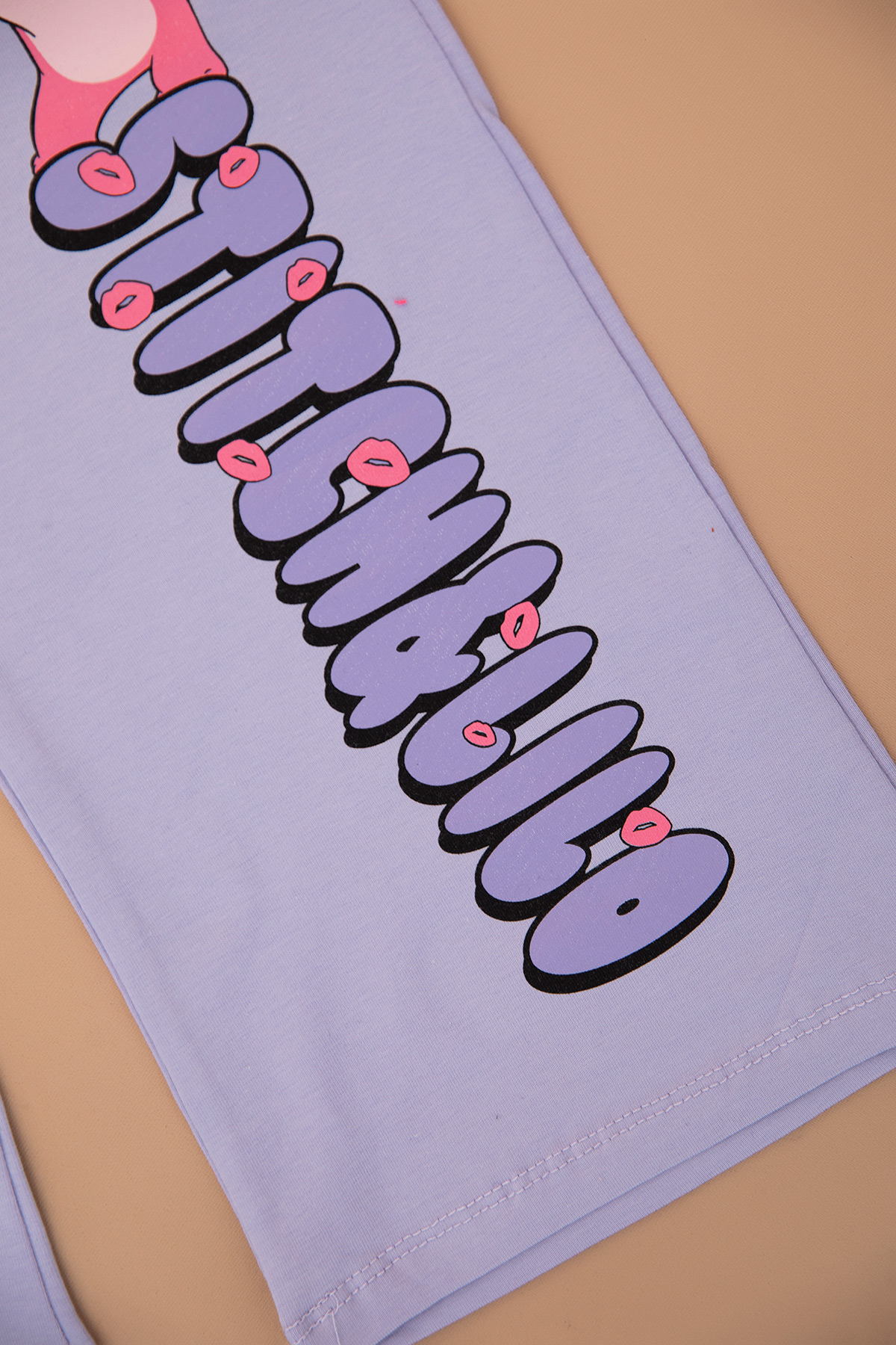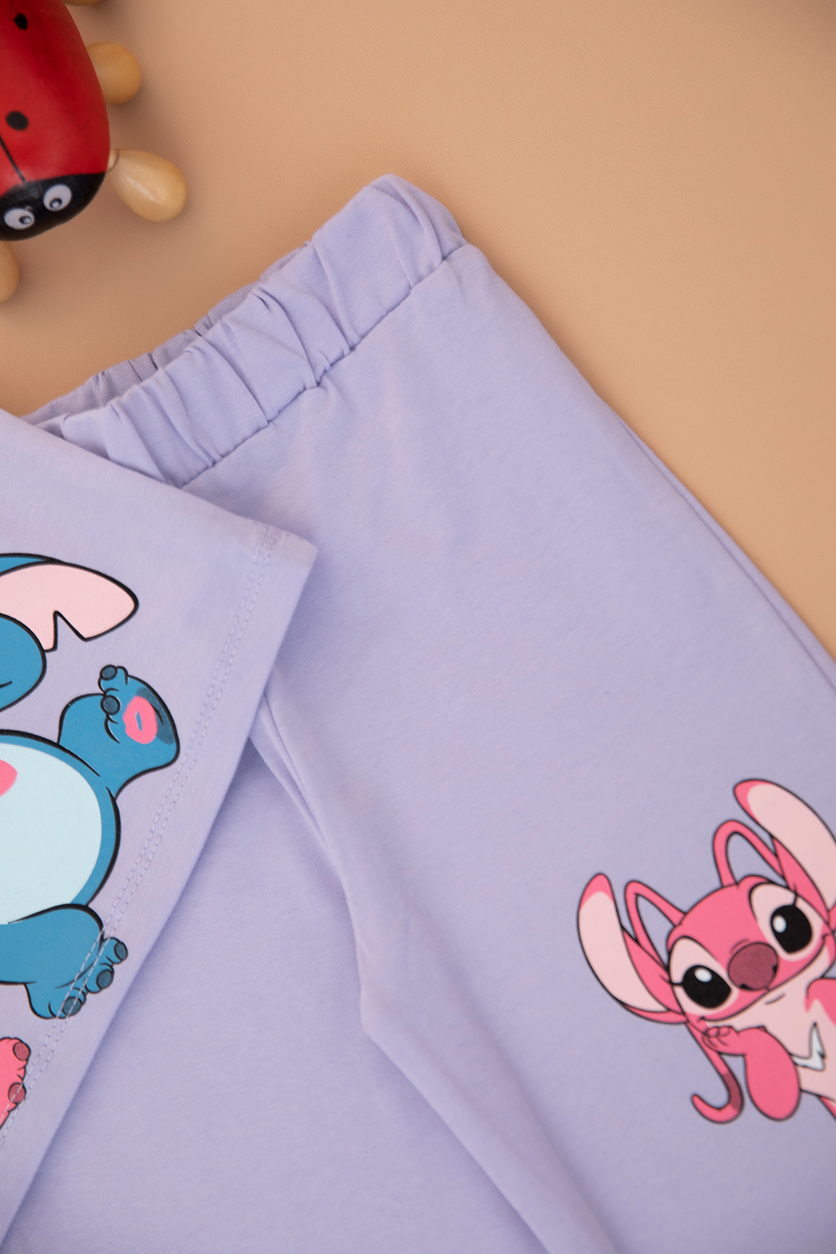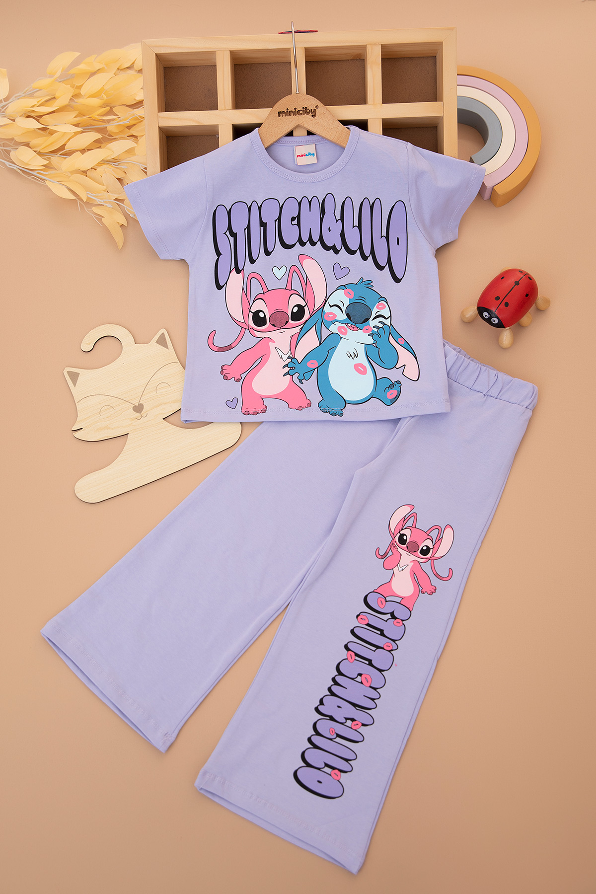Kız Çocuk Stitch Baskılı Bol Paça Takım - 7619 (3-10 Yaş)