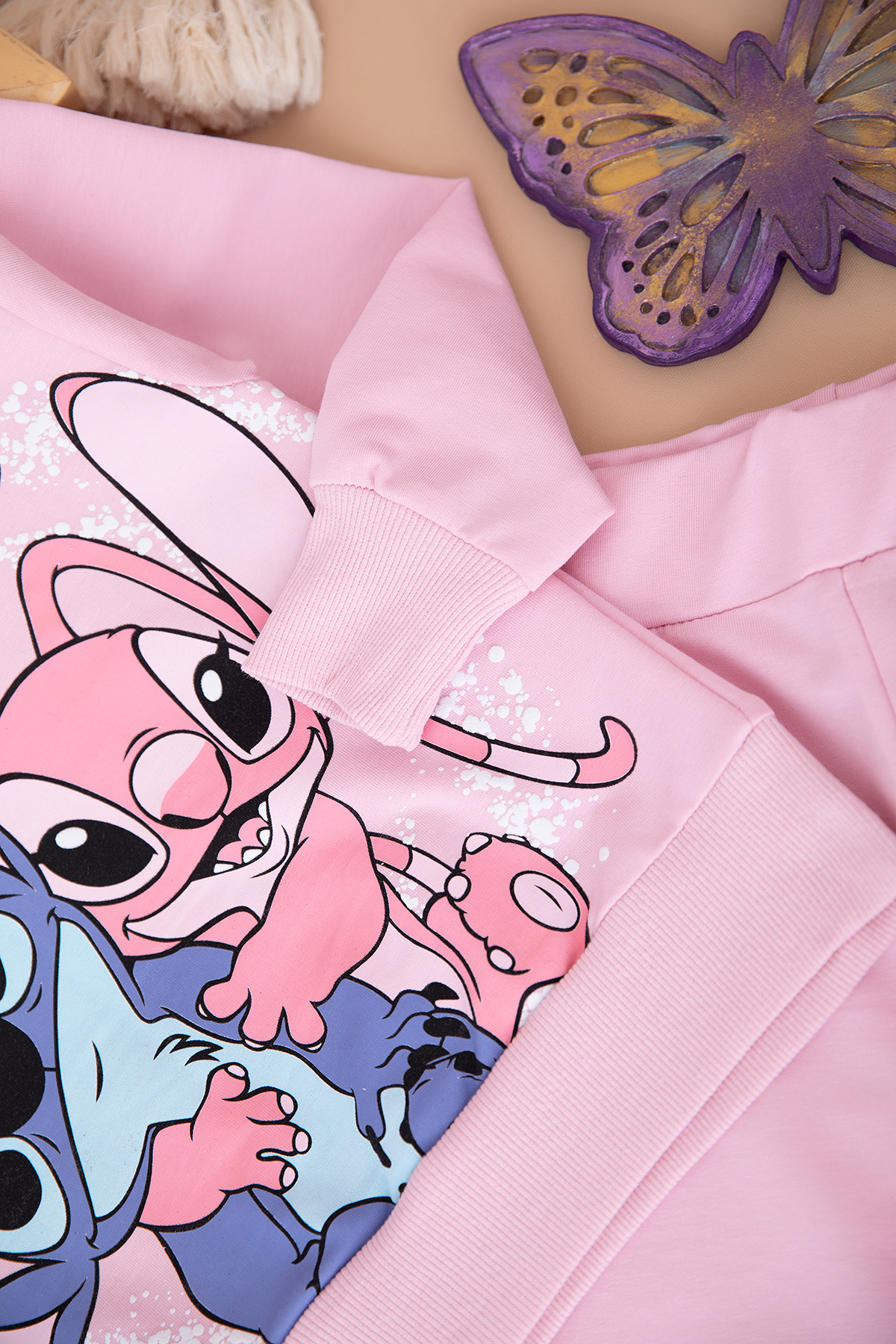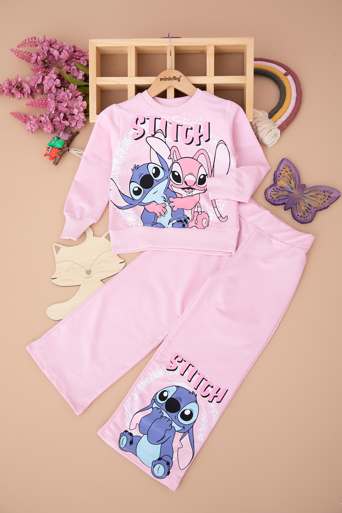 Kız Çocuk Stitch Baskılı Bol Paça Takım - 8176 (3-10 Yaş)