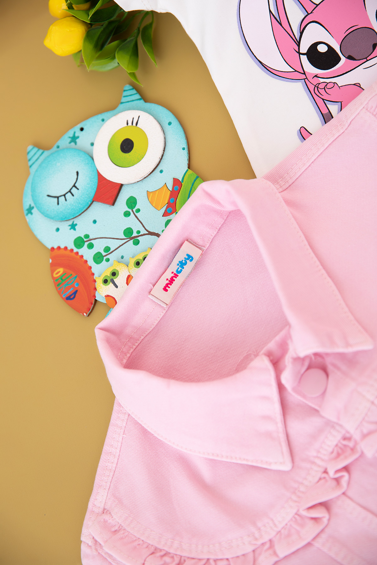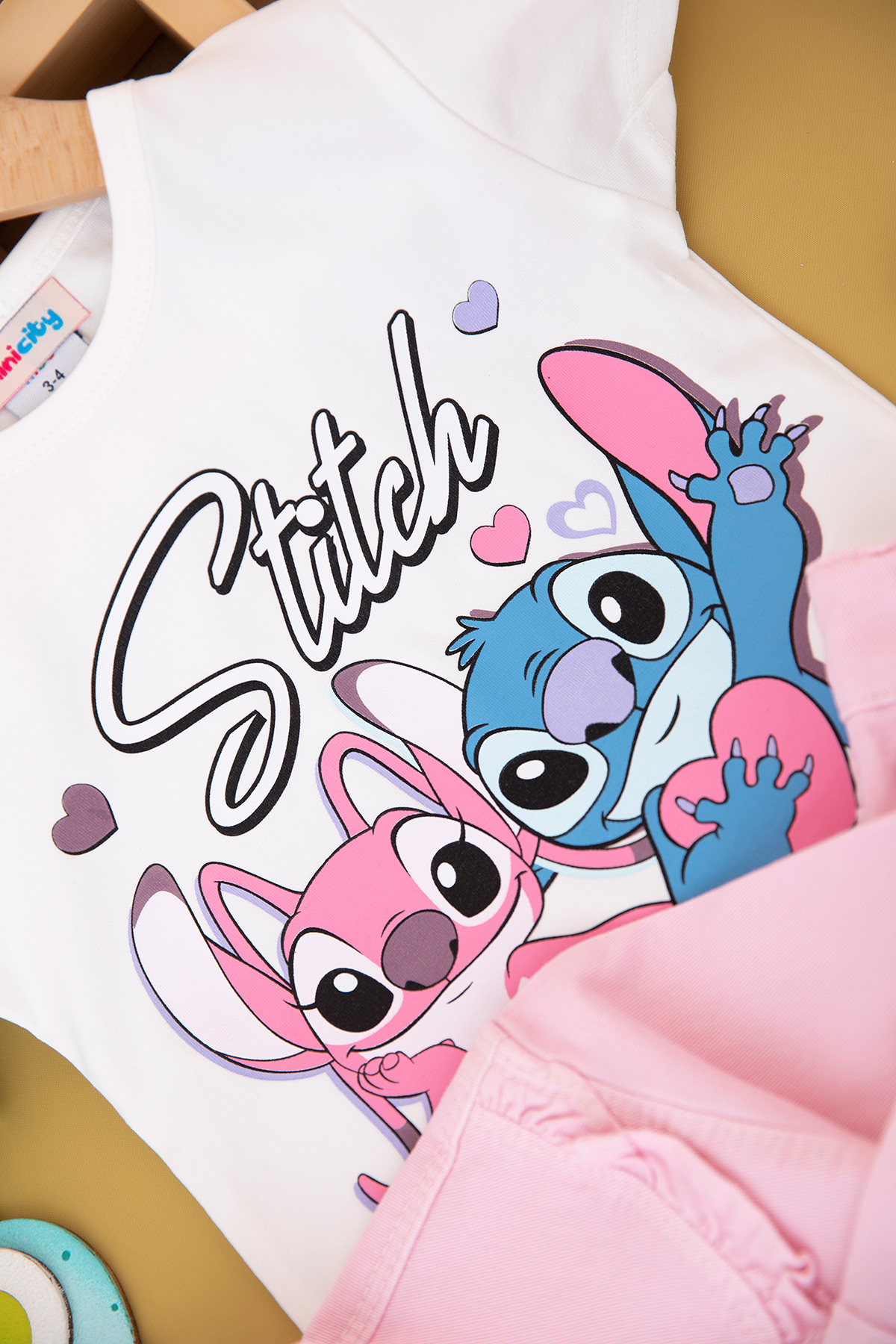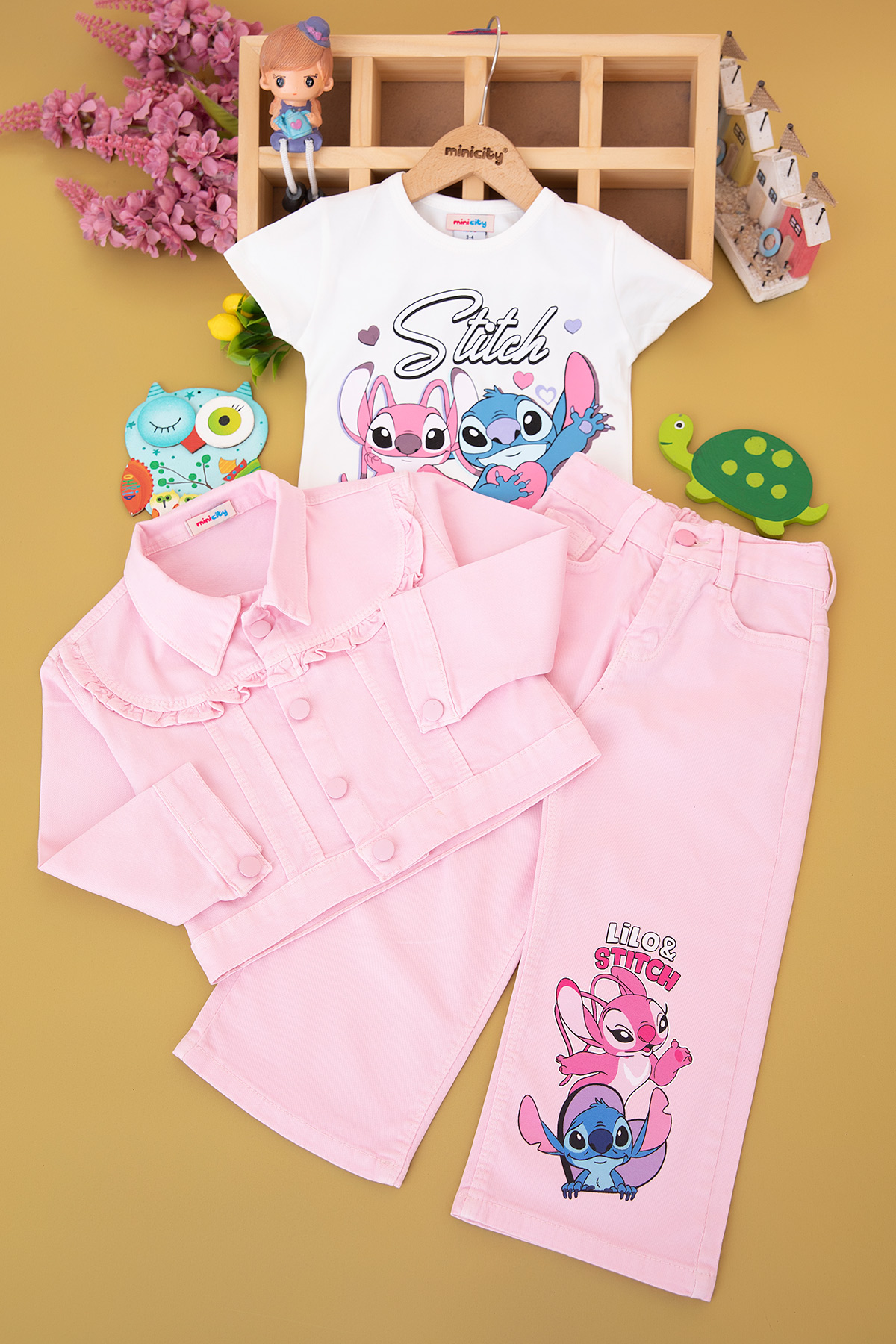 Kız Çocuk Stitch Baskılı Kot Ceket Takım - 6446 (3-10 Yaş)