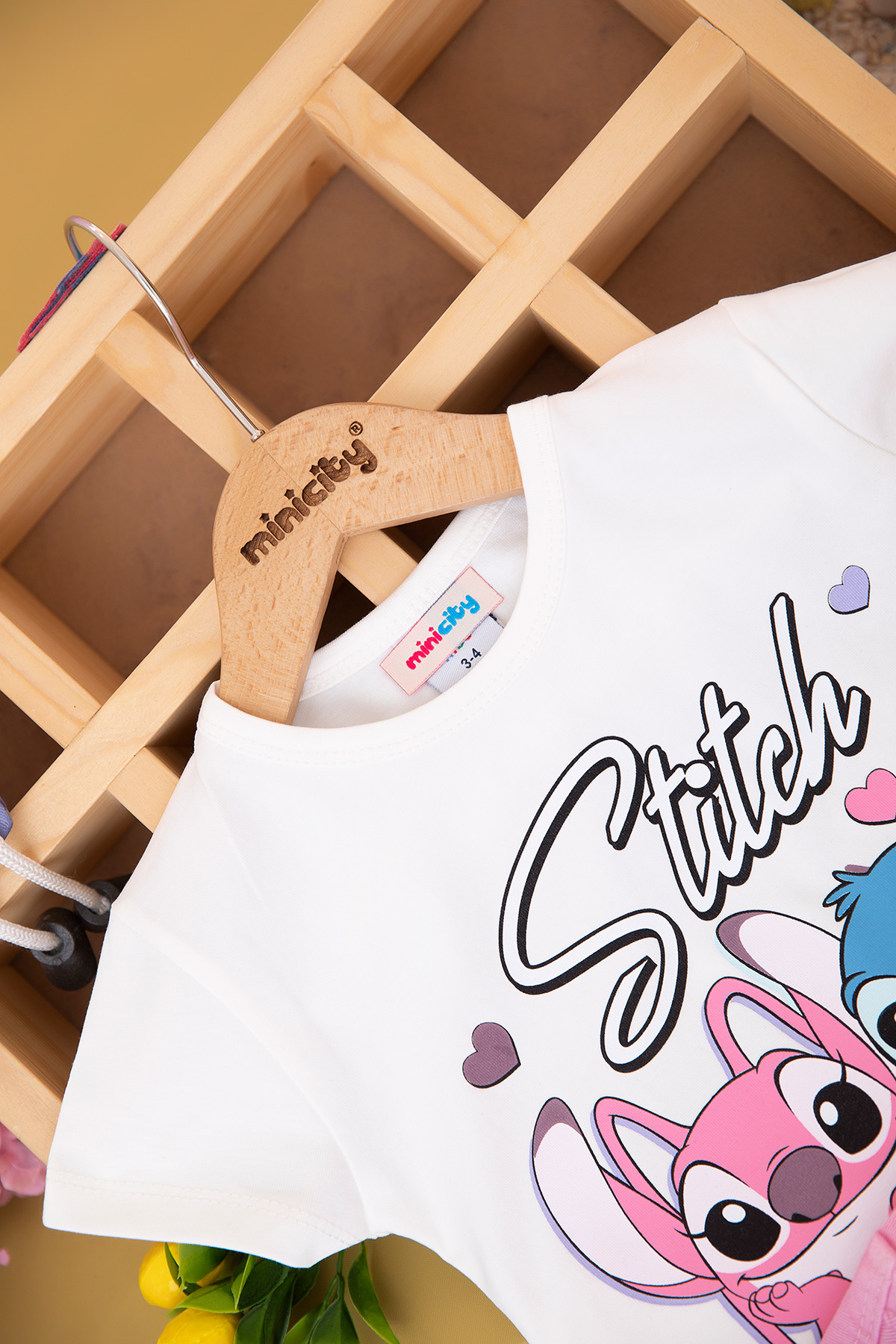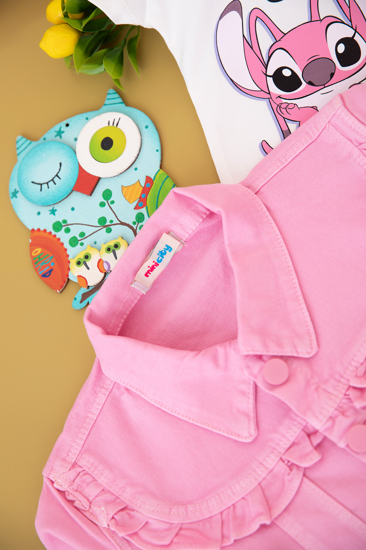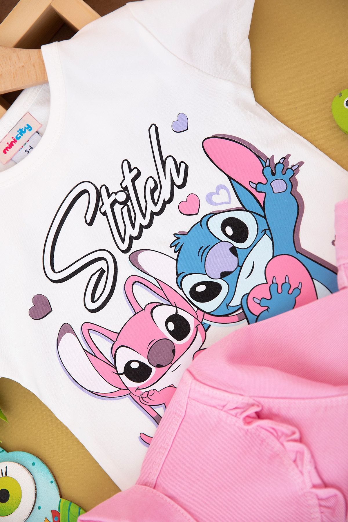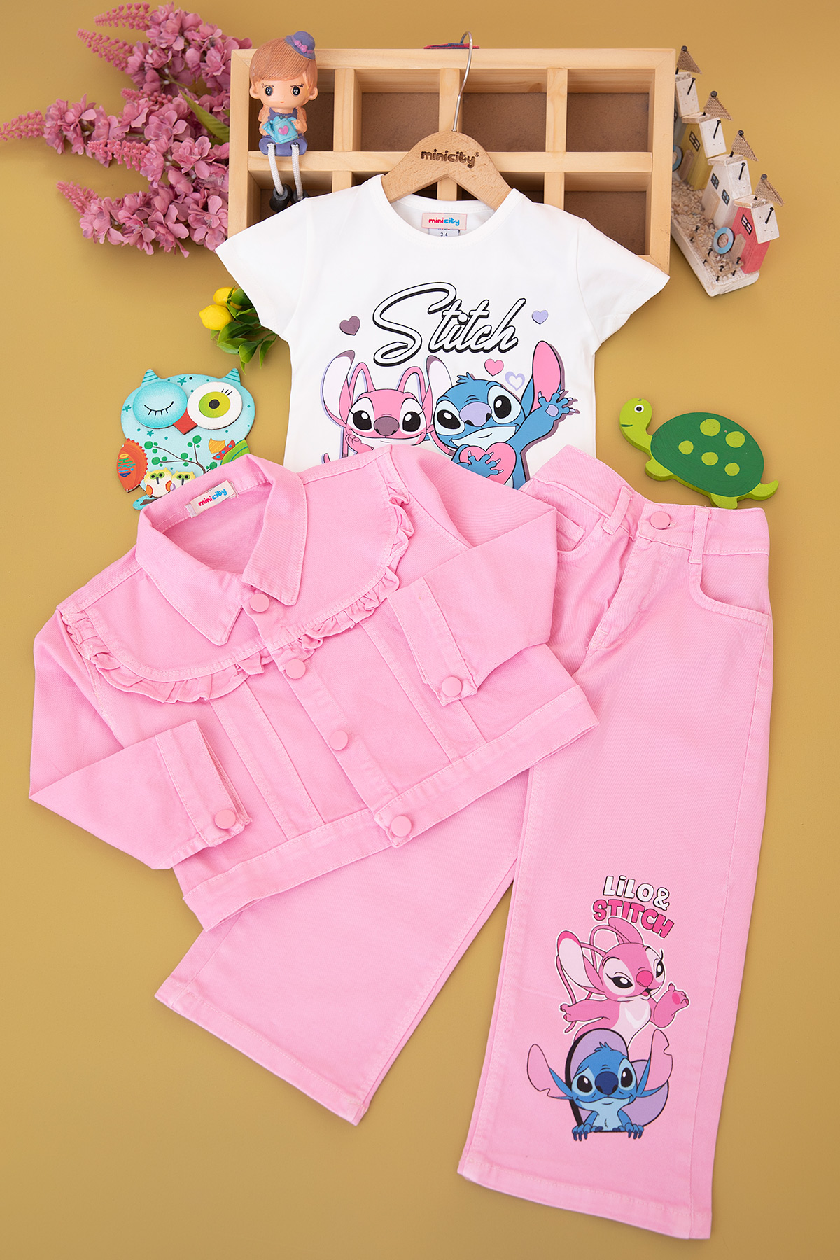 Kız Çocuk Stitch Baskılı Kot Ceket Takım - 6446 (3-10 Yaş)