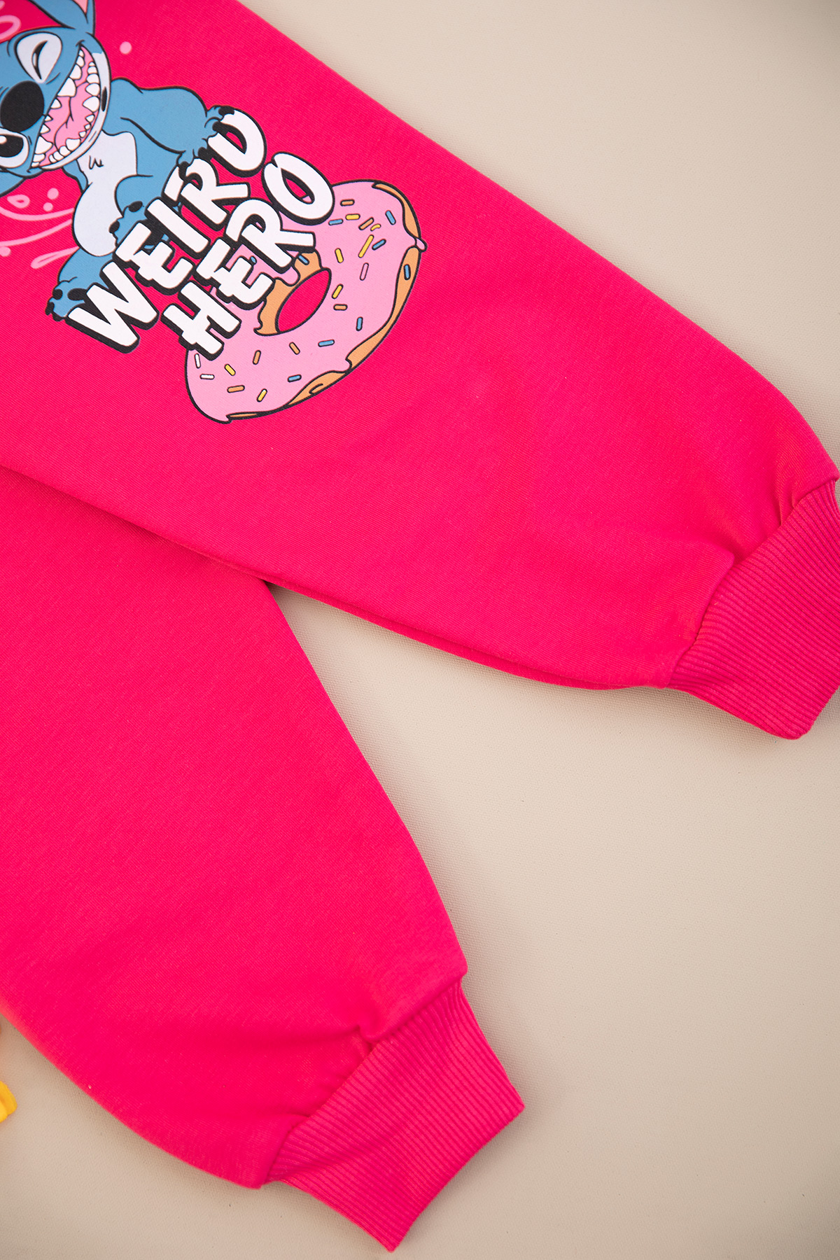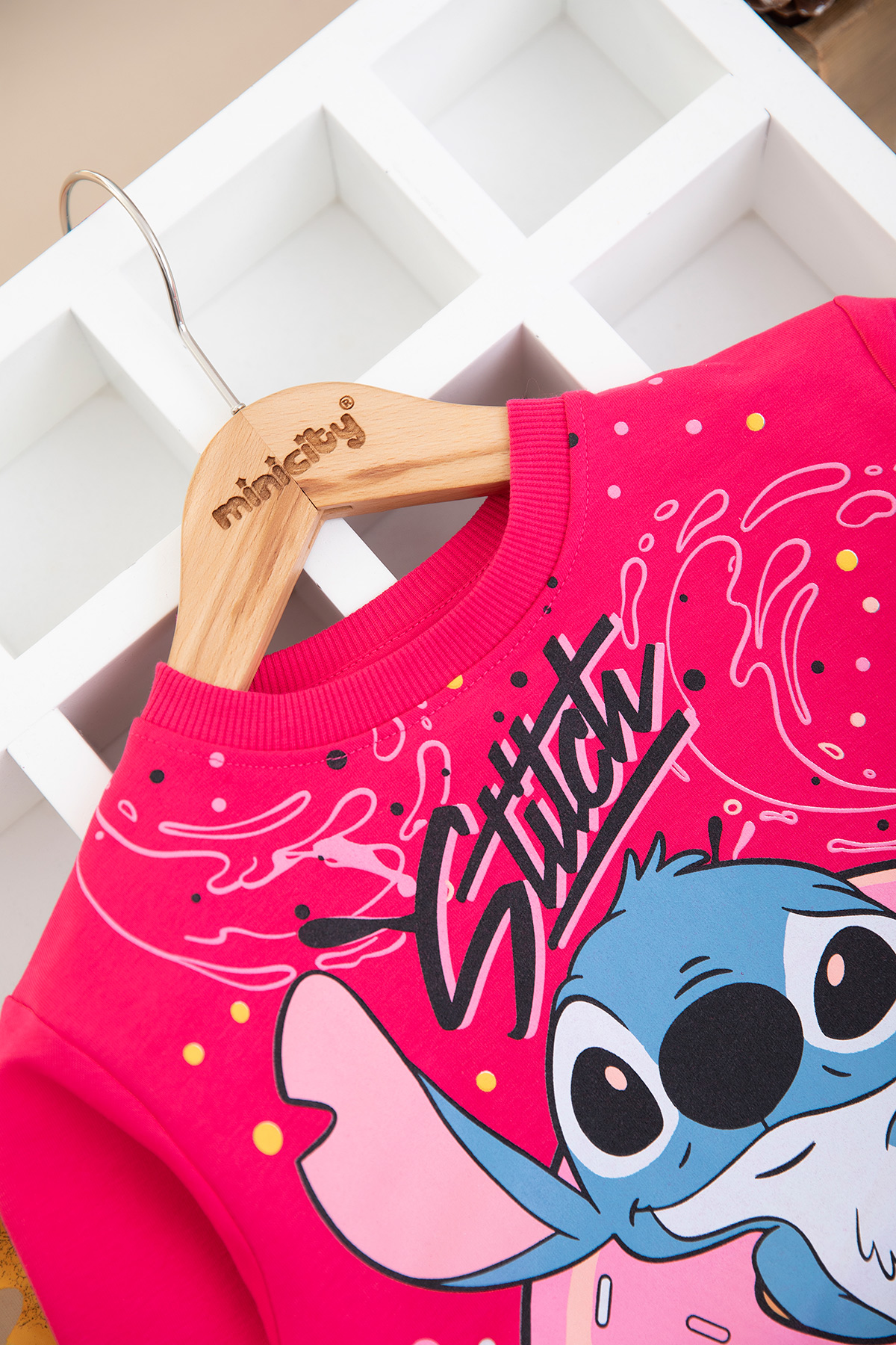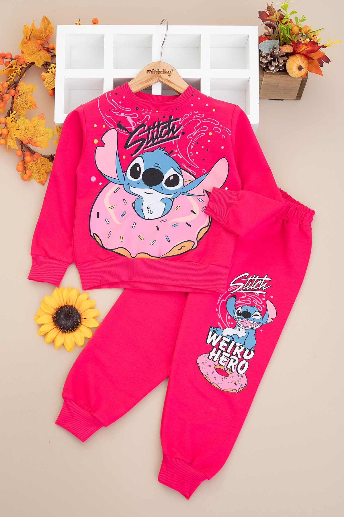 Kız Çocuk Stitch Baskılı Lycrl Takım (4-10 Yaş)
