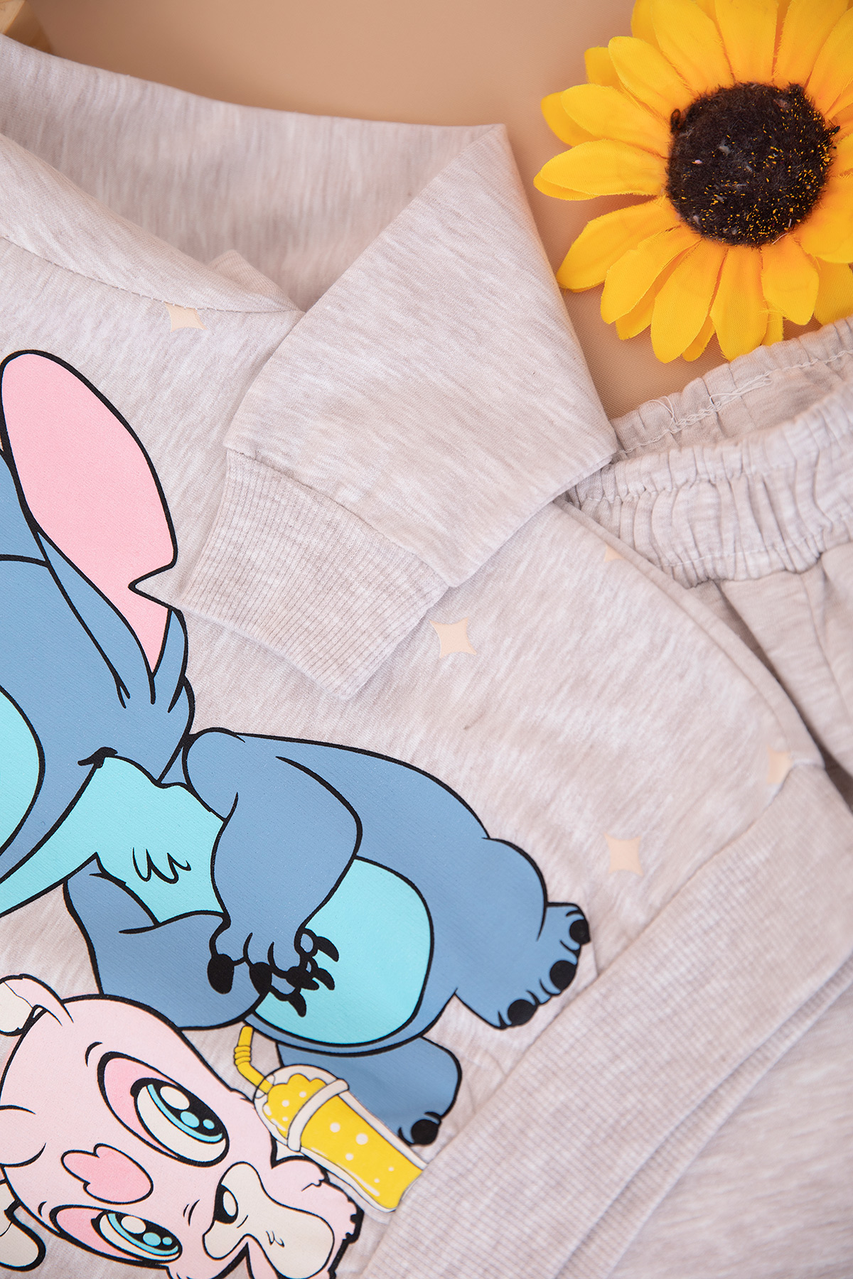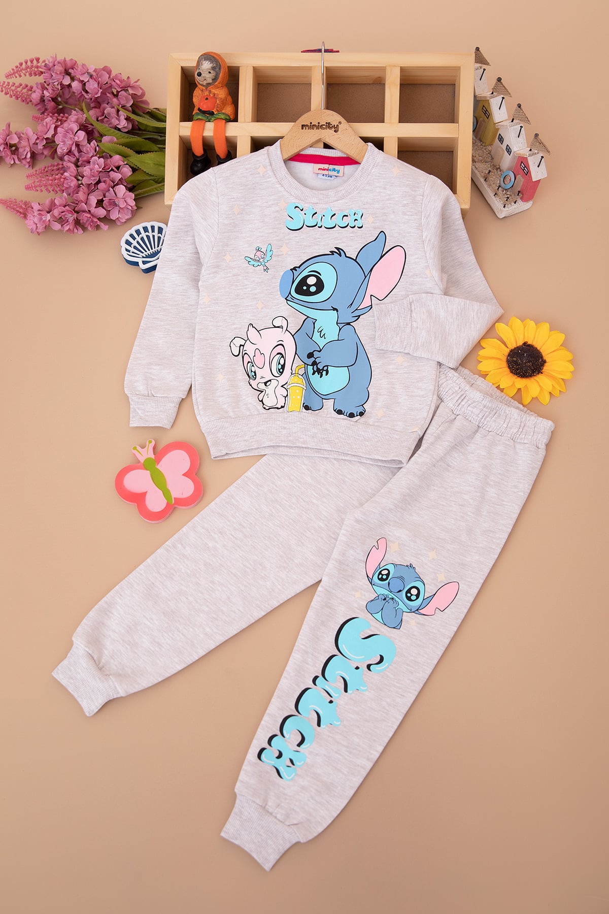 Kız Çocuk Stitch Baskılı Şardonlu Takım - 8003 (4-10 Yaş)