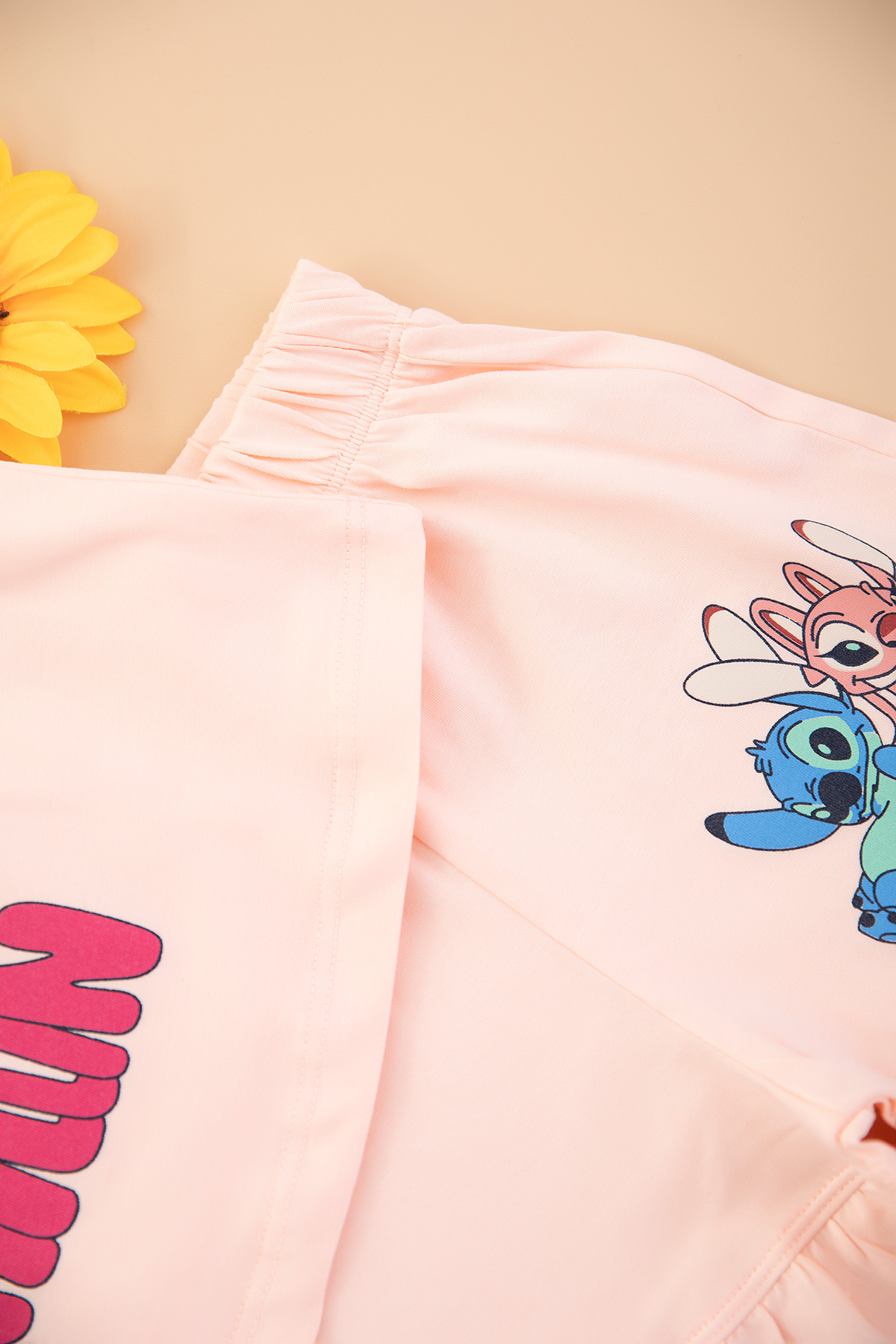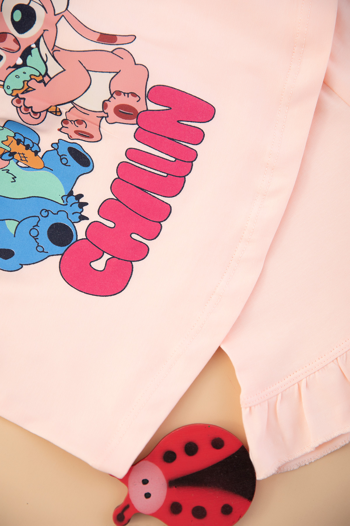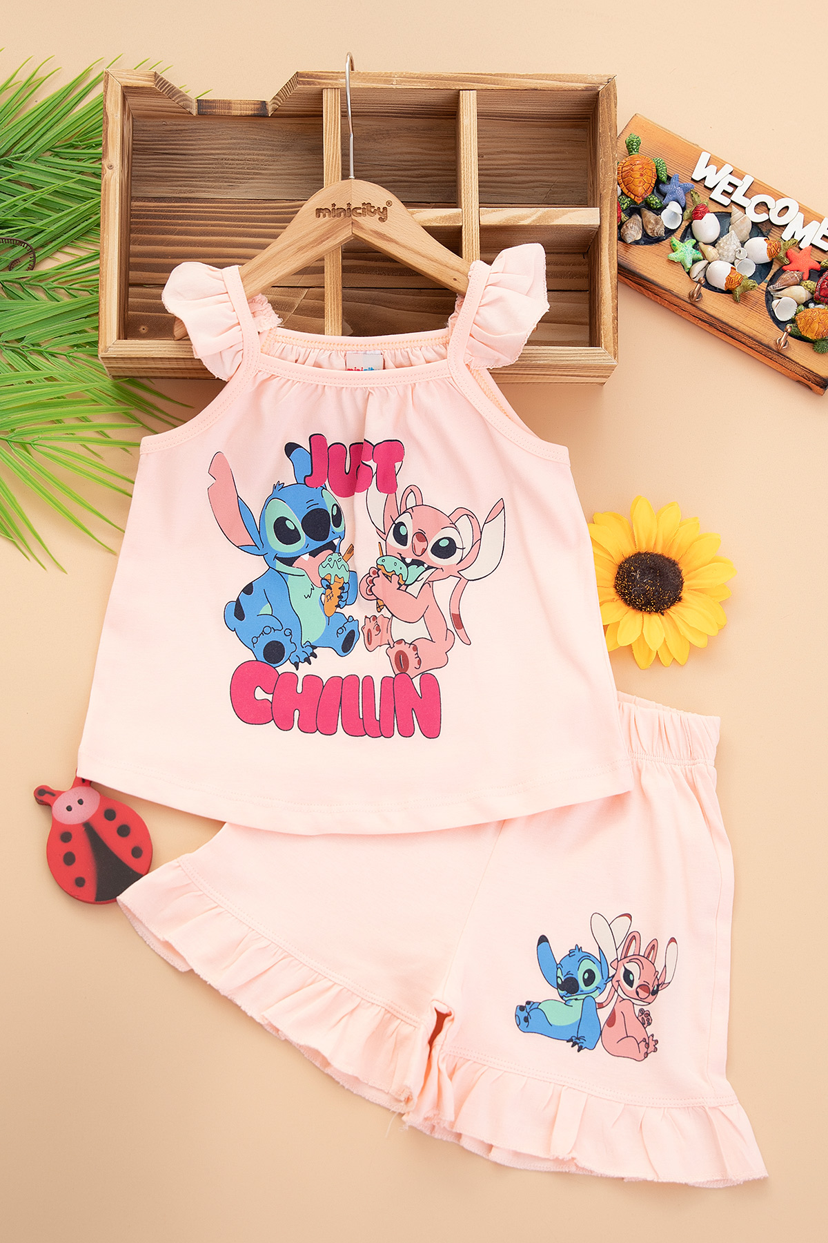 Kız Çocuk Stitch Baskılı Şortlu Takım - 6120 (6-9 Yaş)