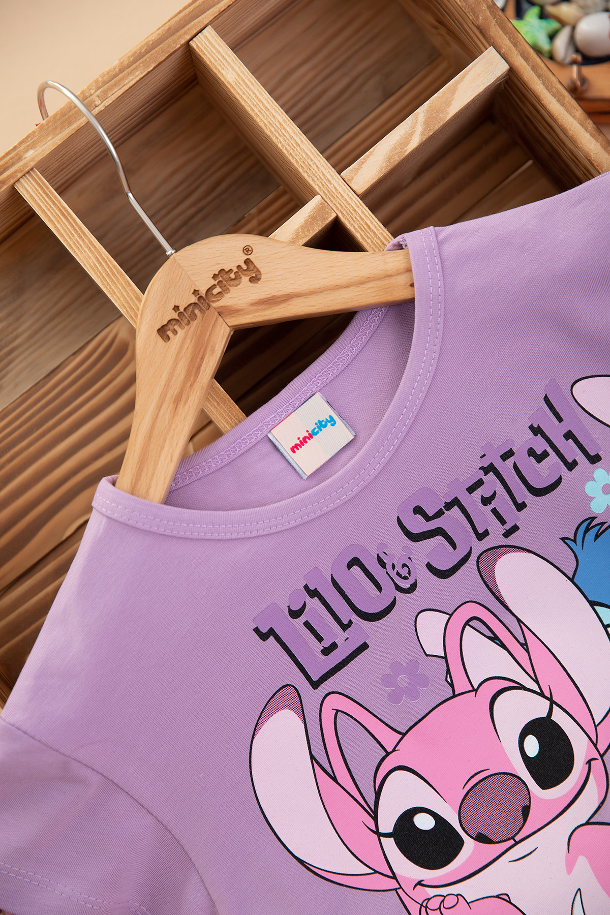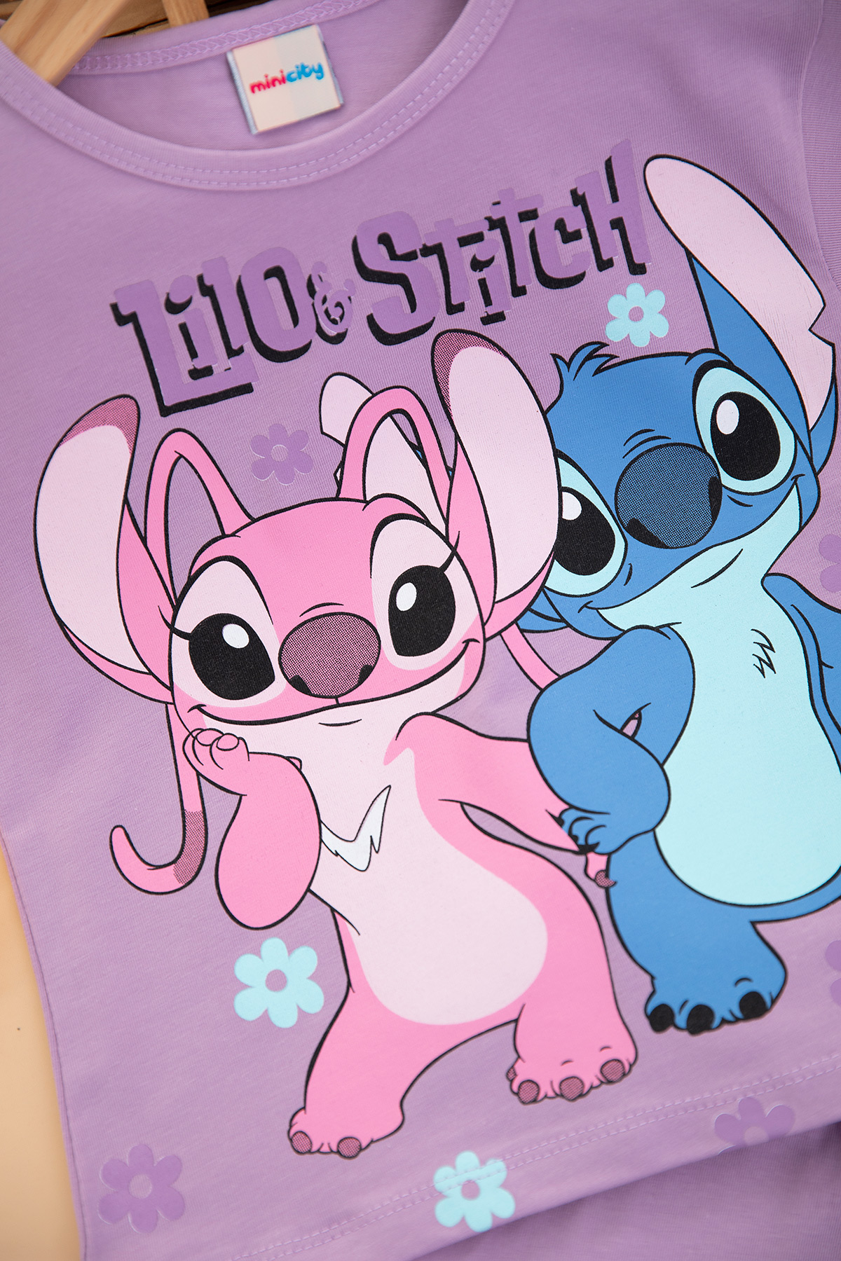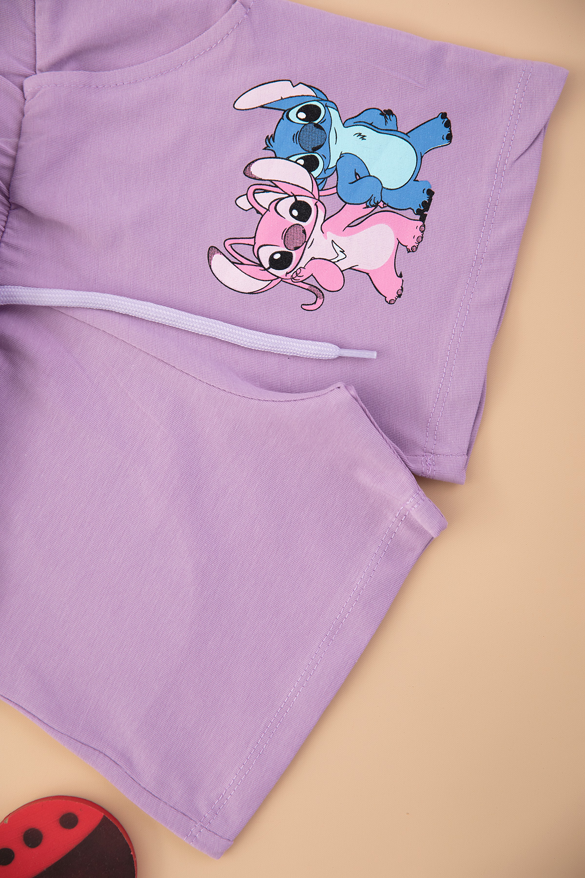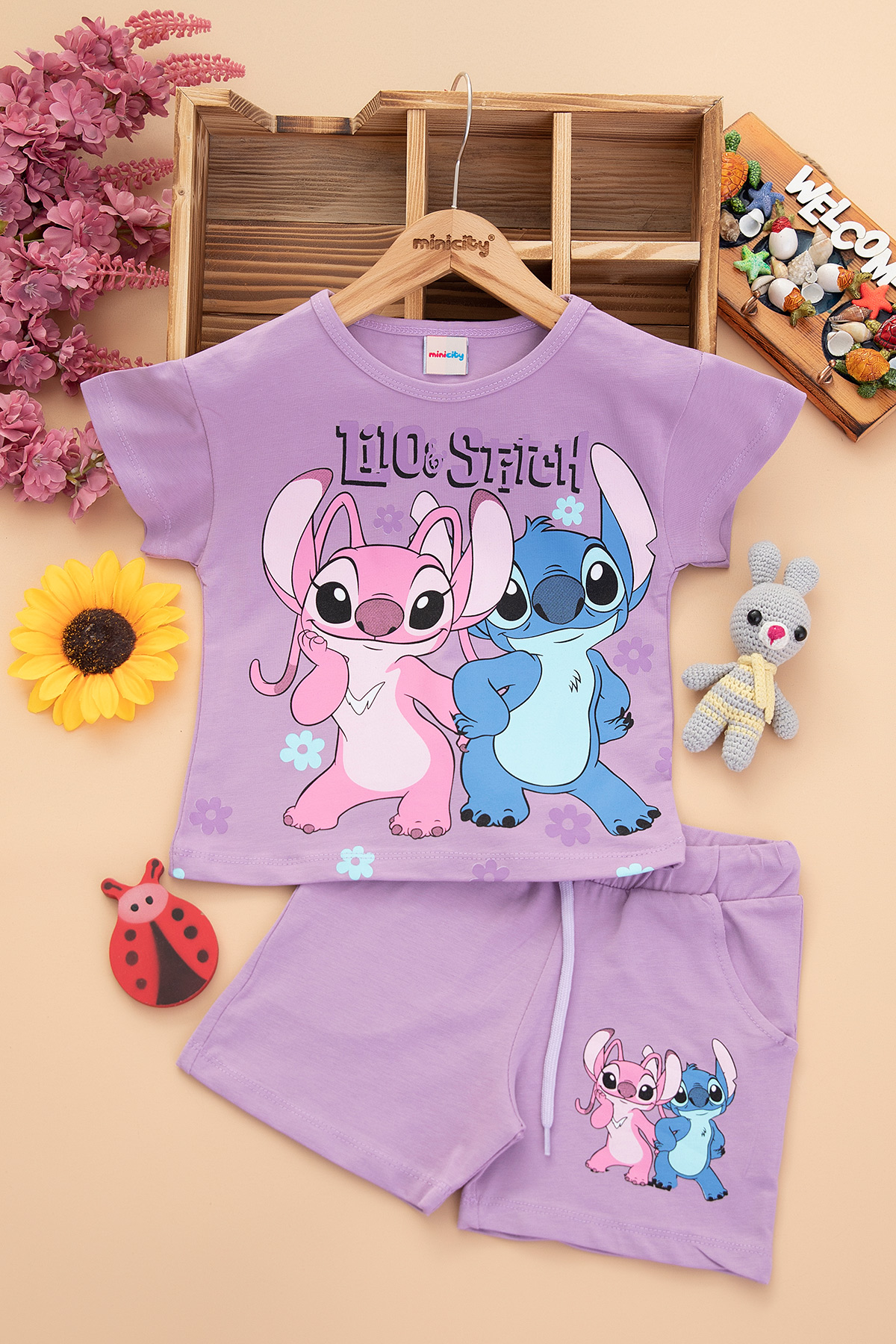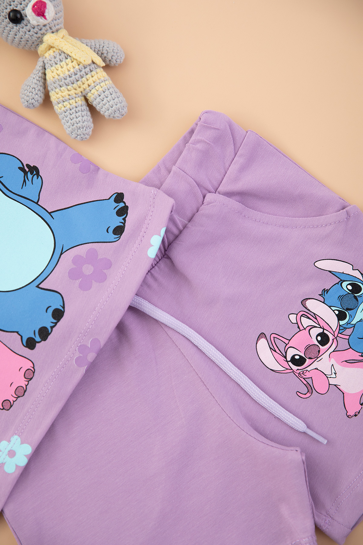 Kız Çocuk Stitch Baskılı Şortlu Takım - 7537 (3-10 Yaş)