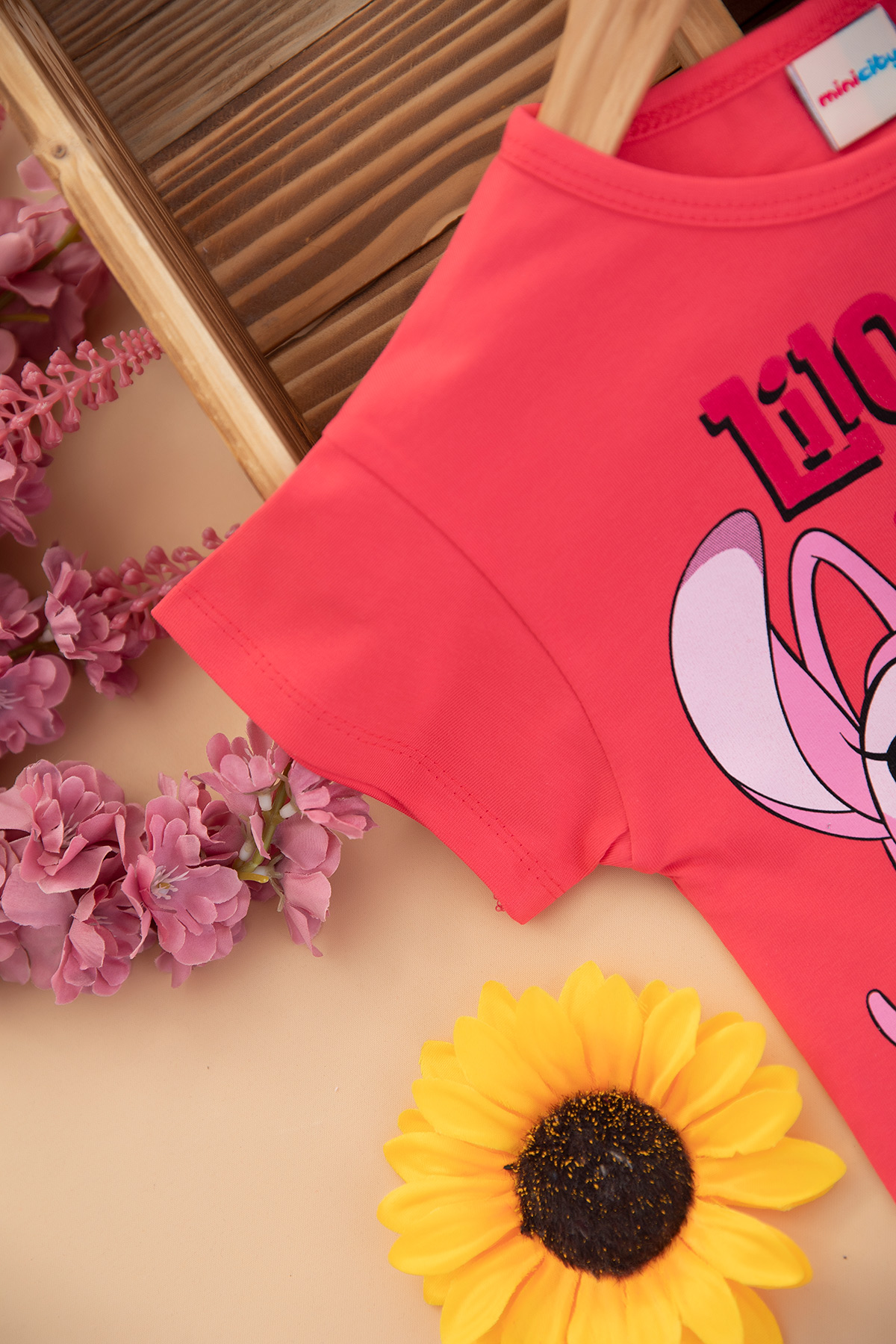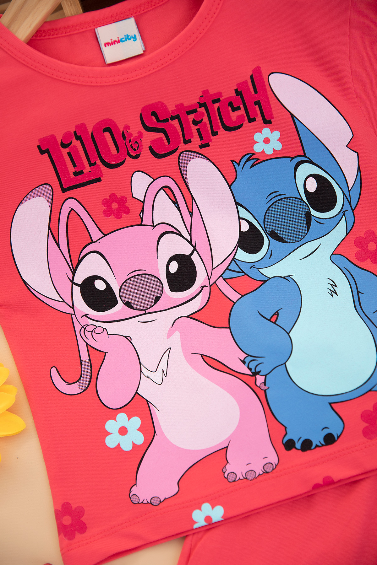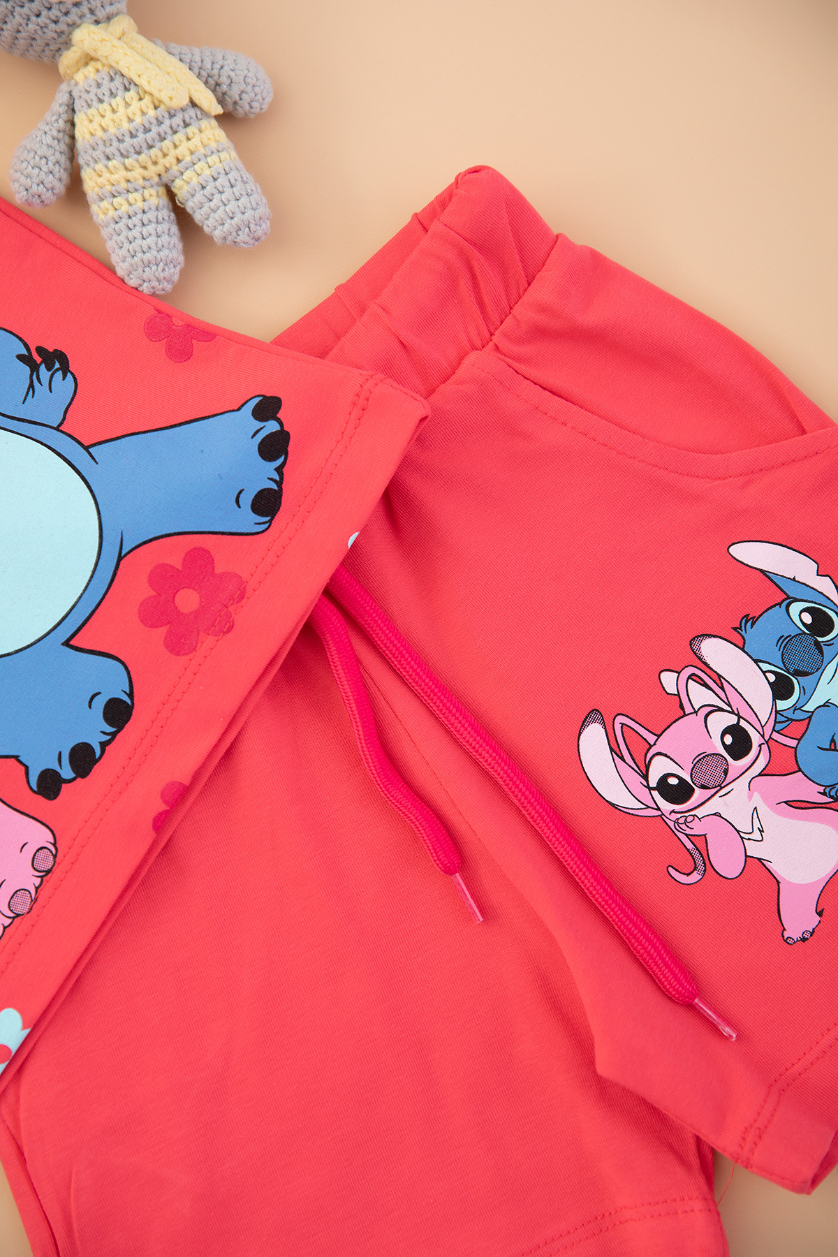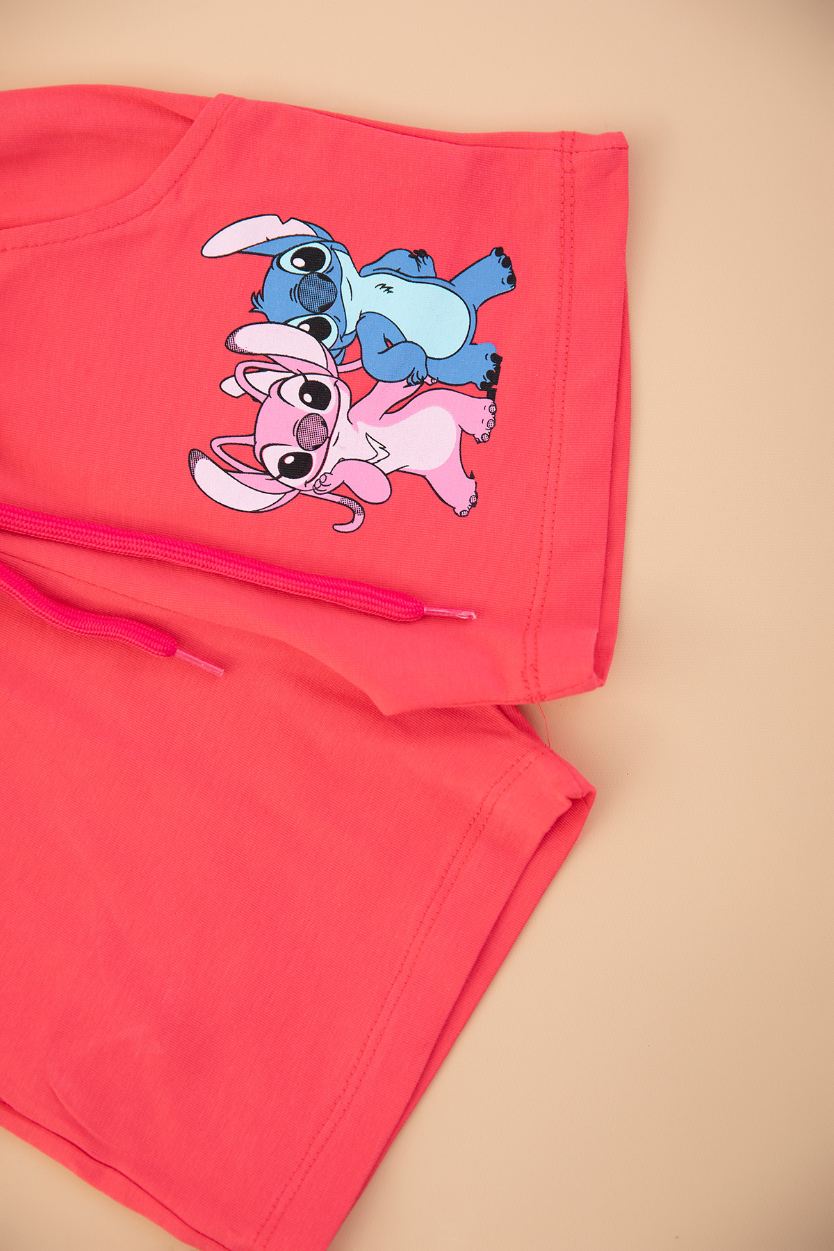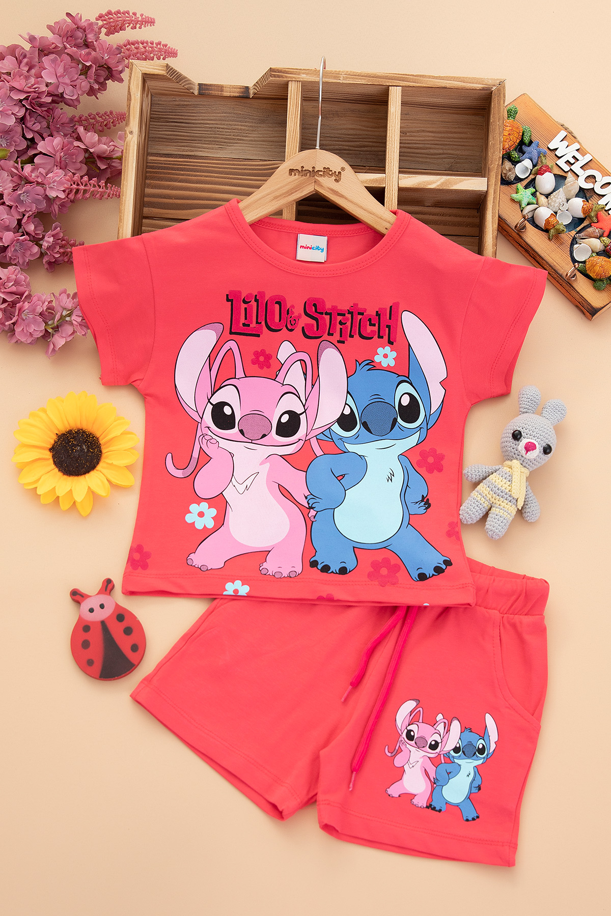 Kız Çocuk Stitch Baskılı Şortlu Takım - 7537 (3-10 Yaş)