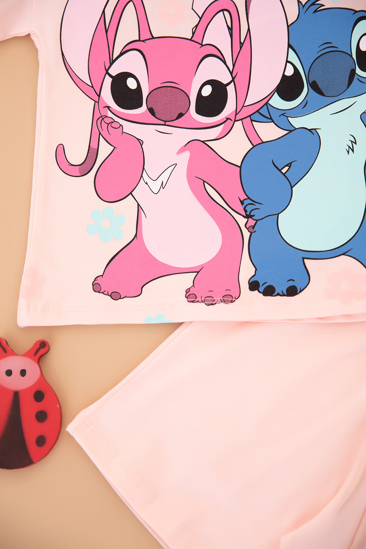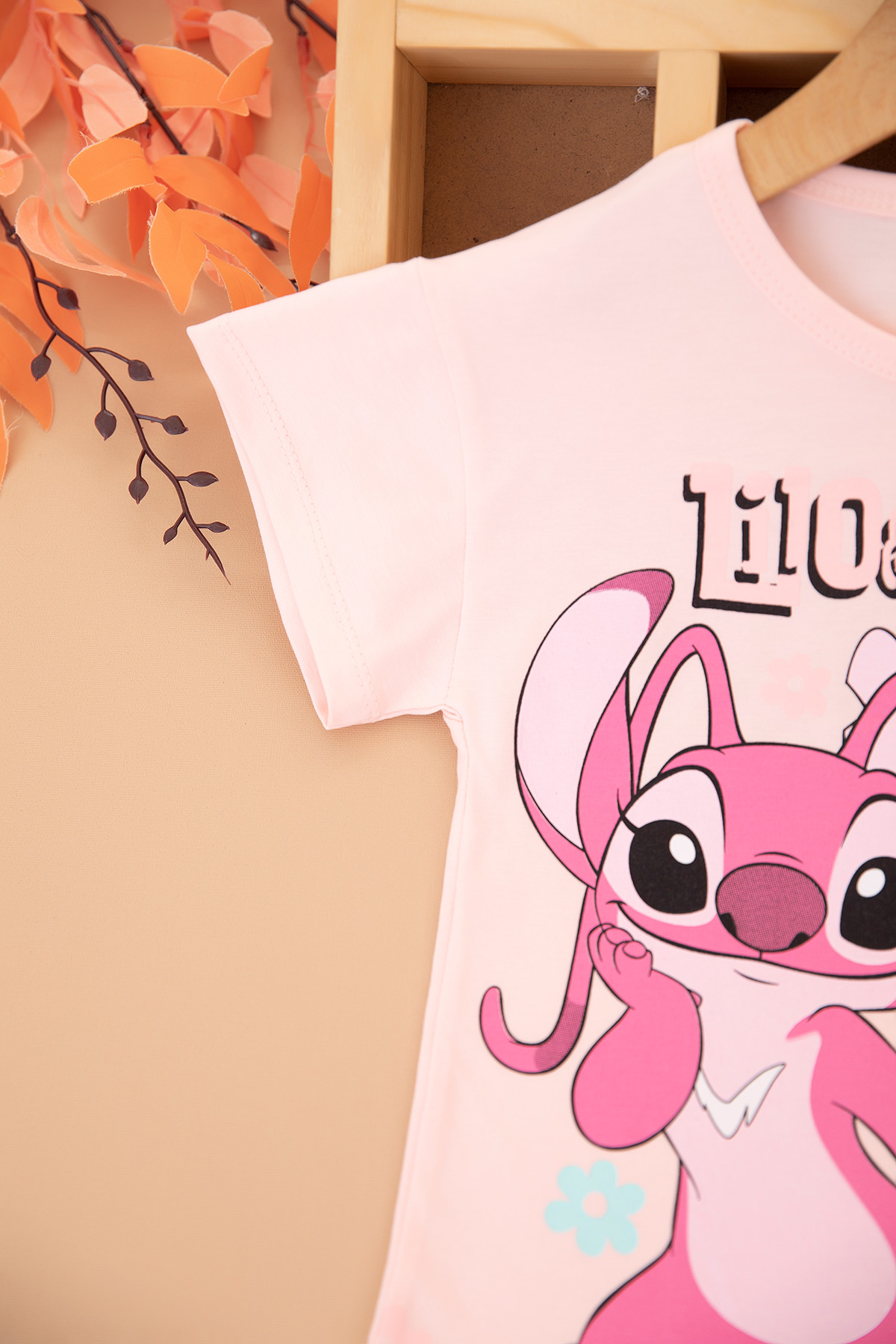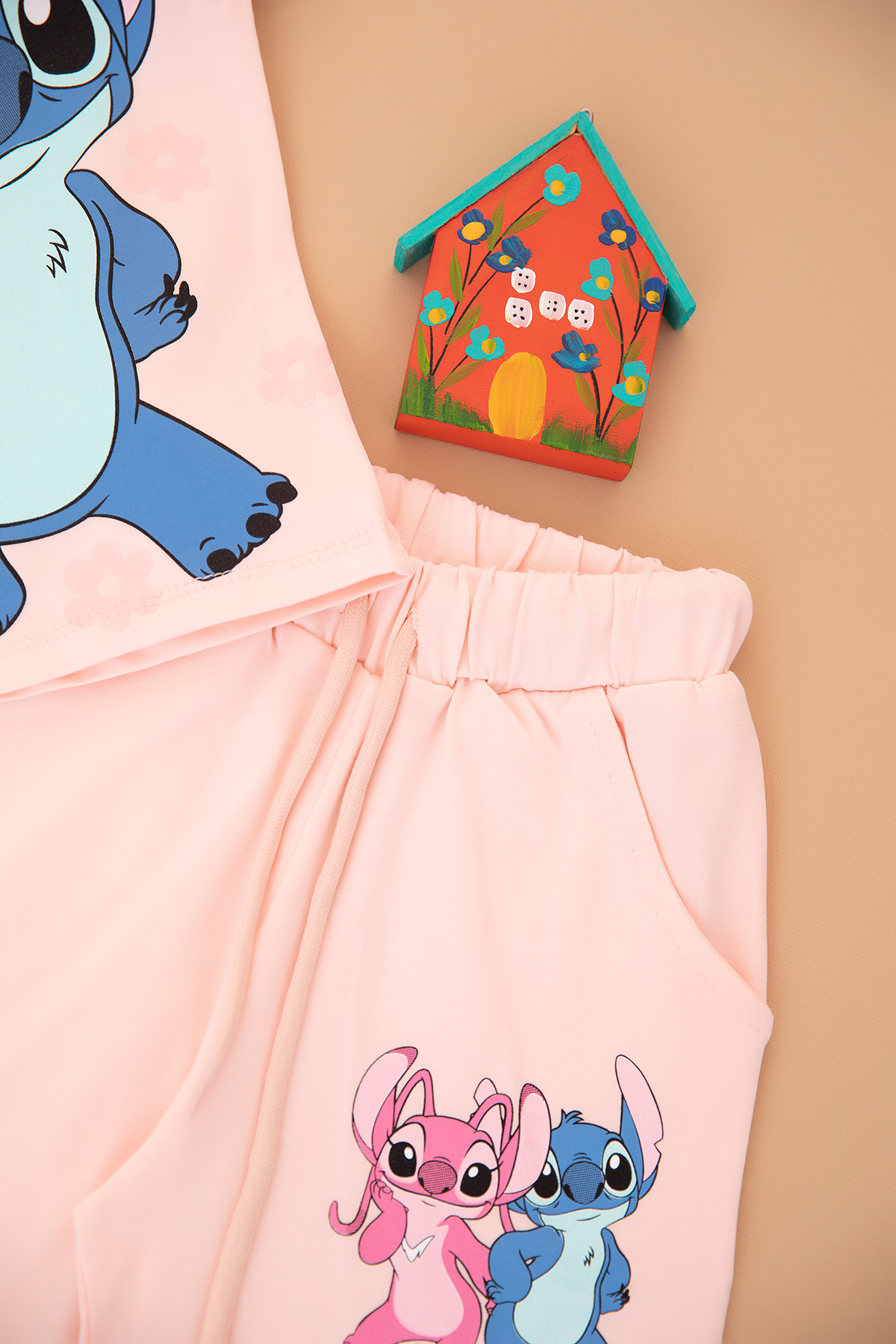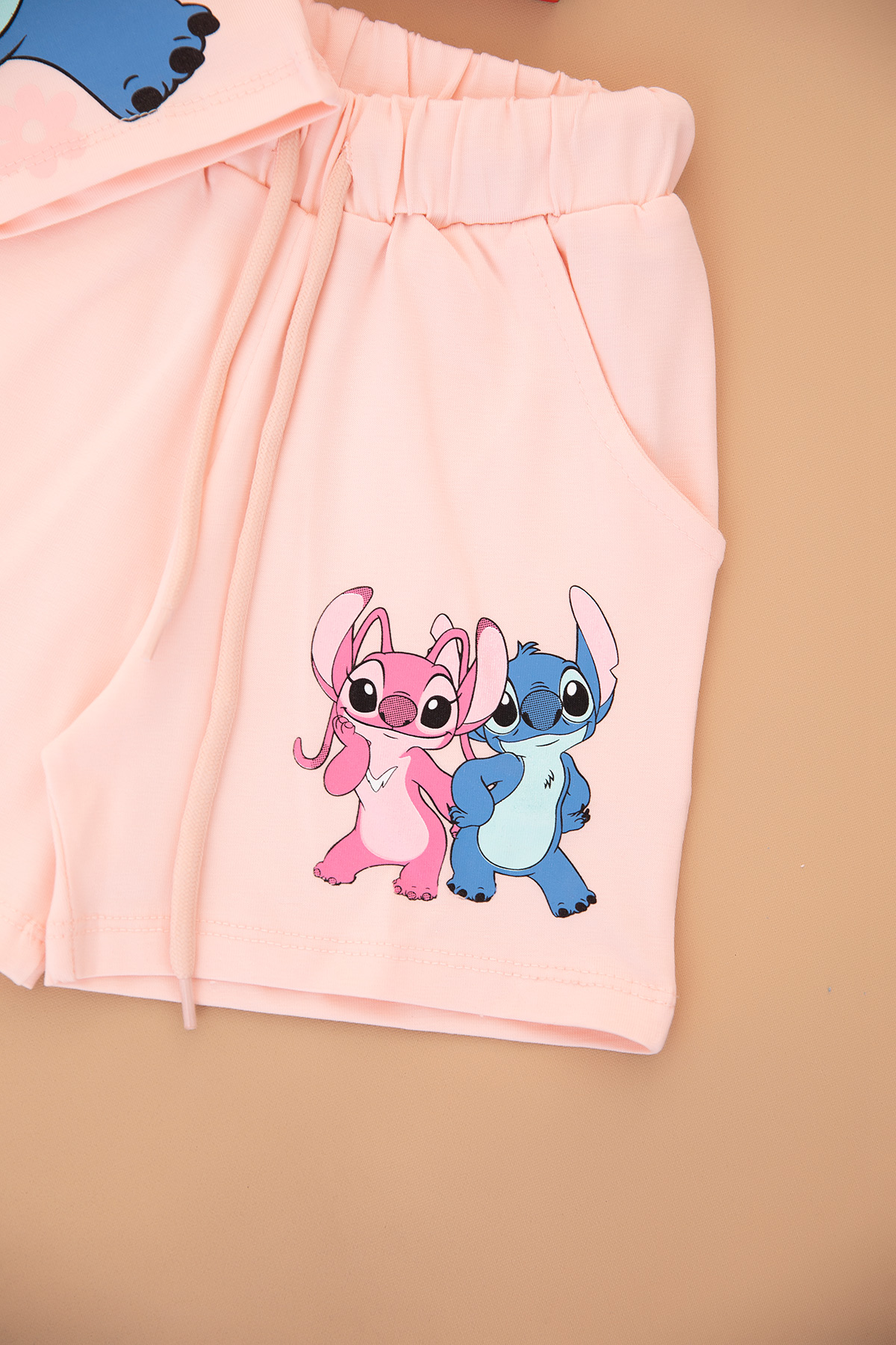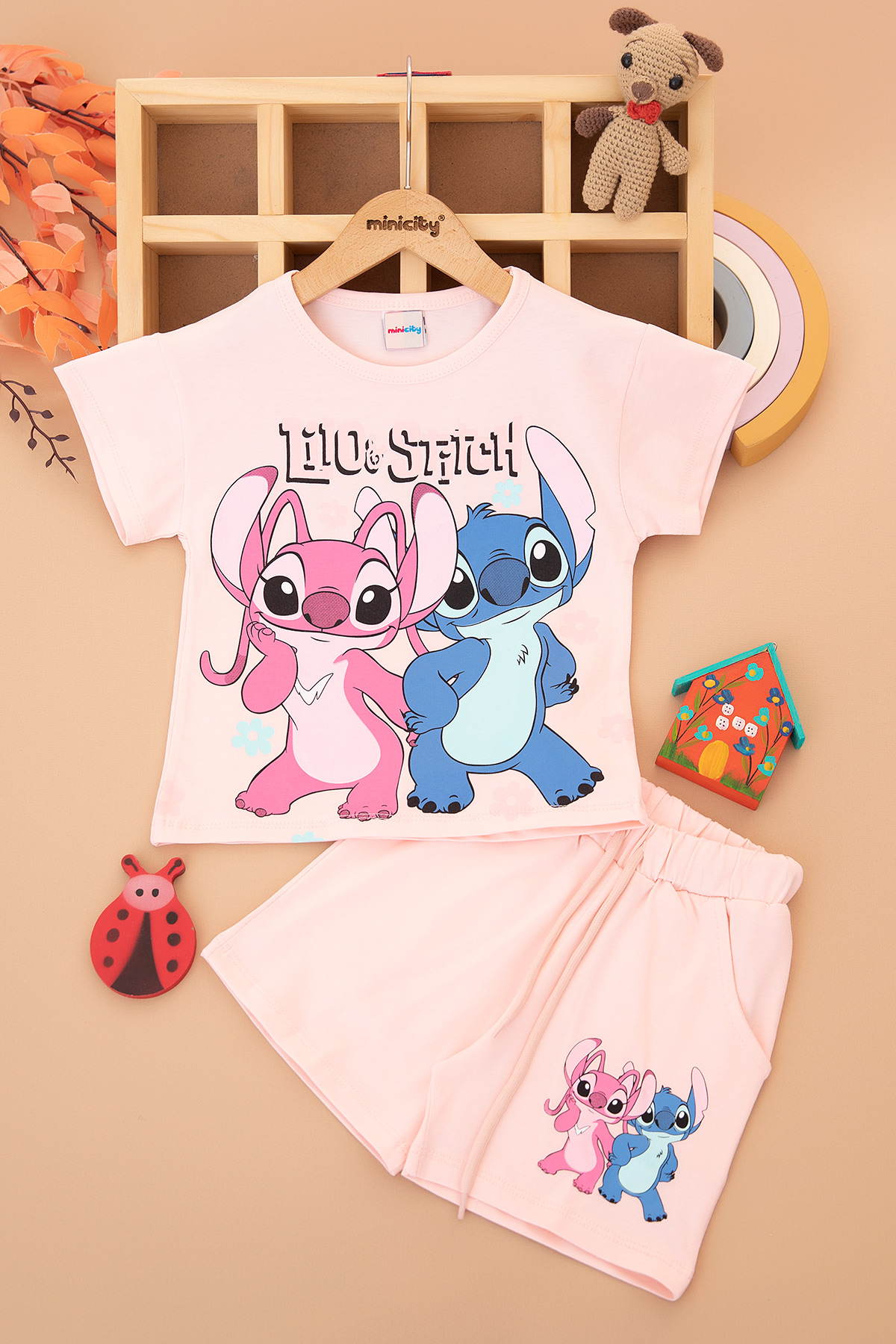Kız Çocuk Stitch Baskılı Şortlu Takım - 7537 (3-10 Yaş)