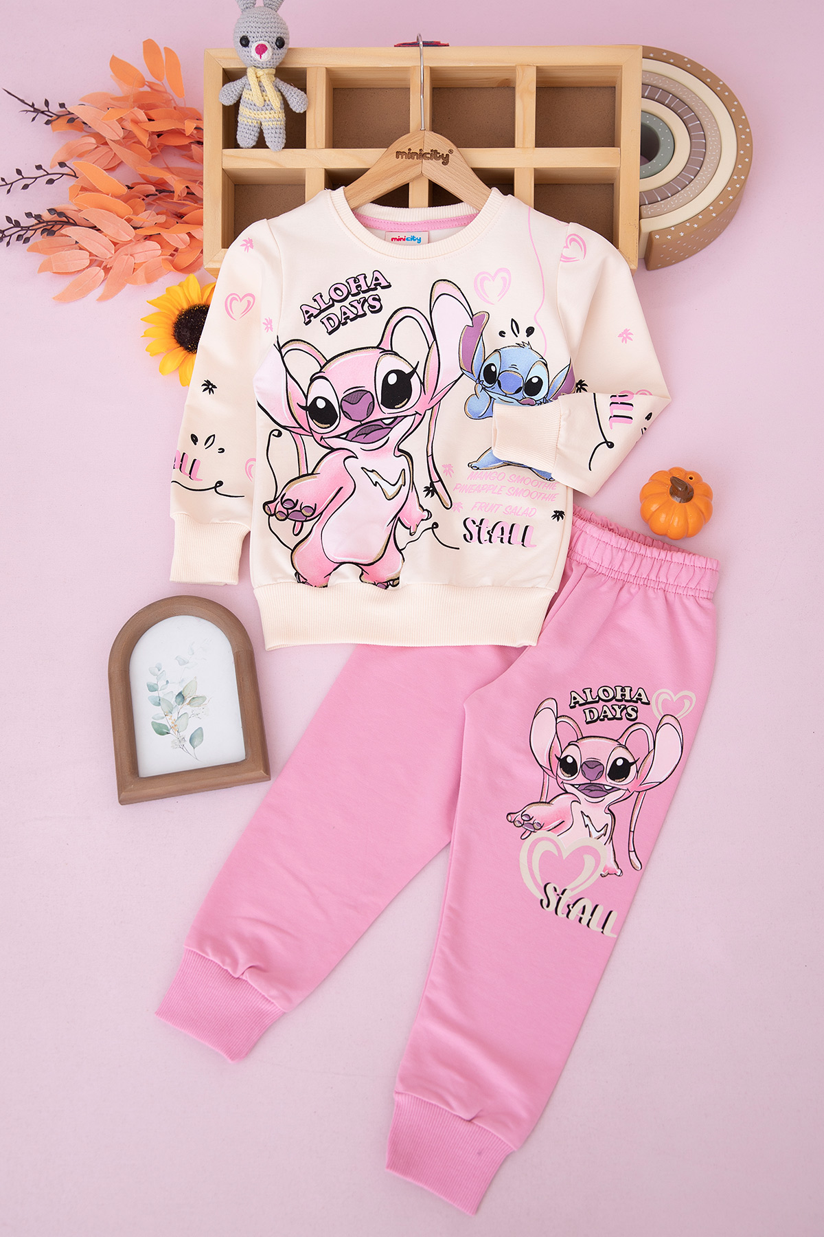 Kız Çocuk Stitch Baskılı Takım - 6409 (3-10 Yaş)