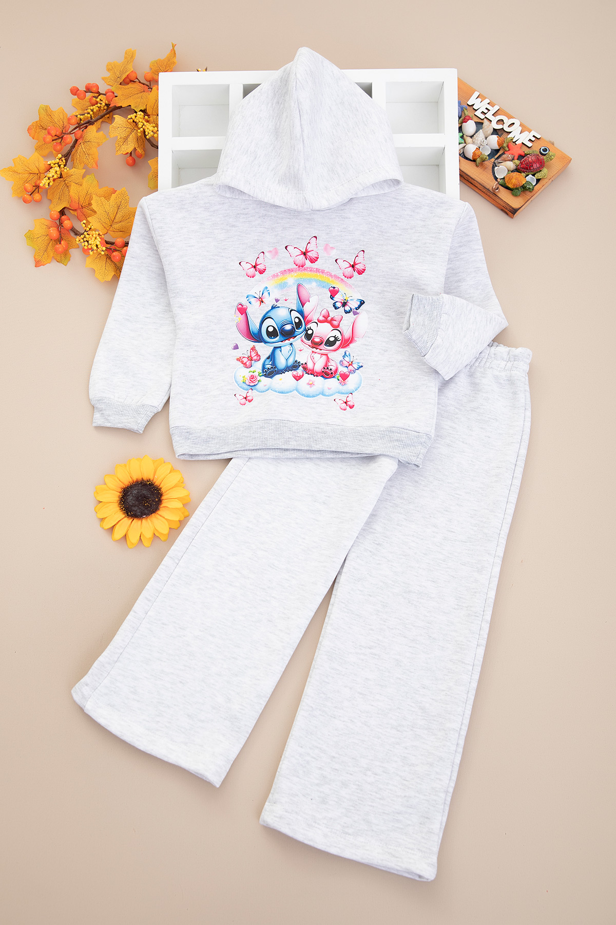 Kız Çocuk Stitch Baskılı Üçip Takım - 6239 (5-8 Yaş)