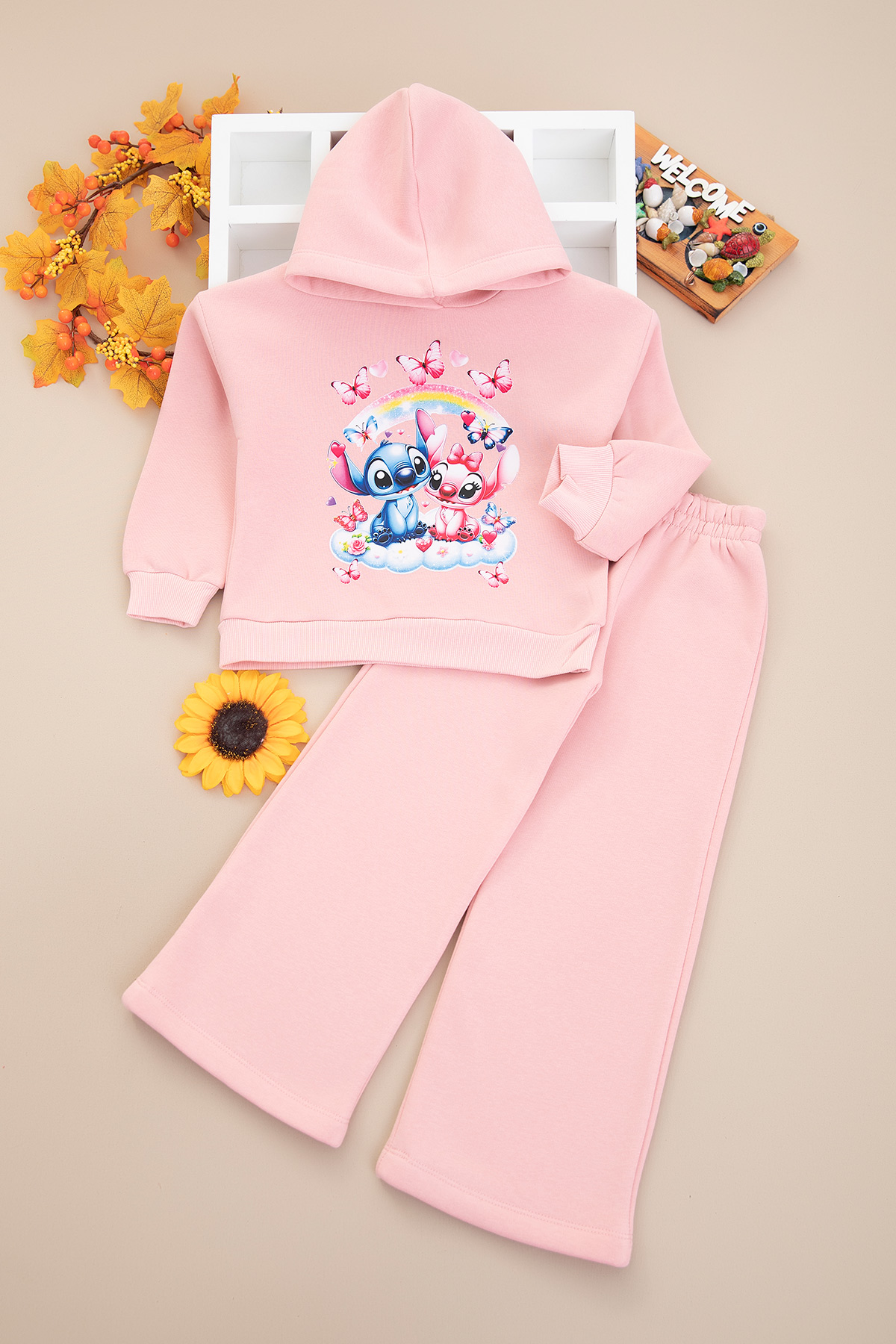 Kız Çocuk Stitch Baskılı Üçip Takım - 6239 (5-8 Yaş)