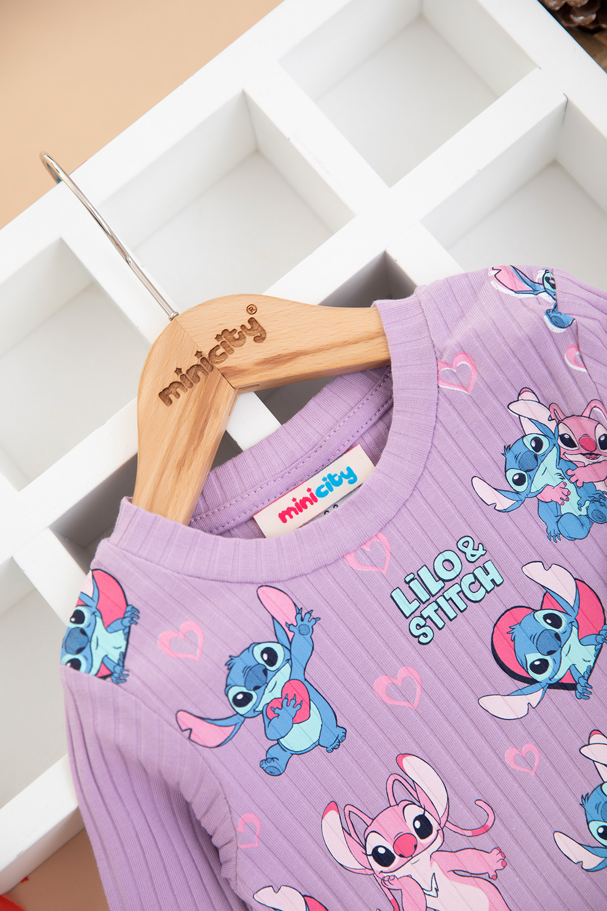 Kız Çocuk Stitch Kalp Baskılı Slopet 2 Li Takım - 8156 (2-8 Yaş)