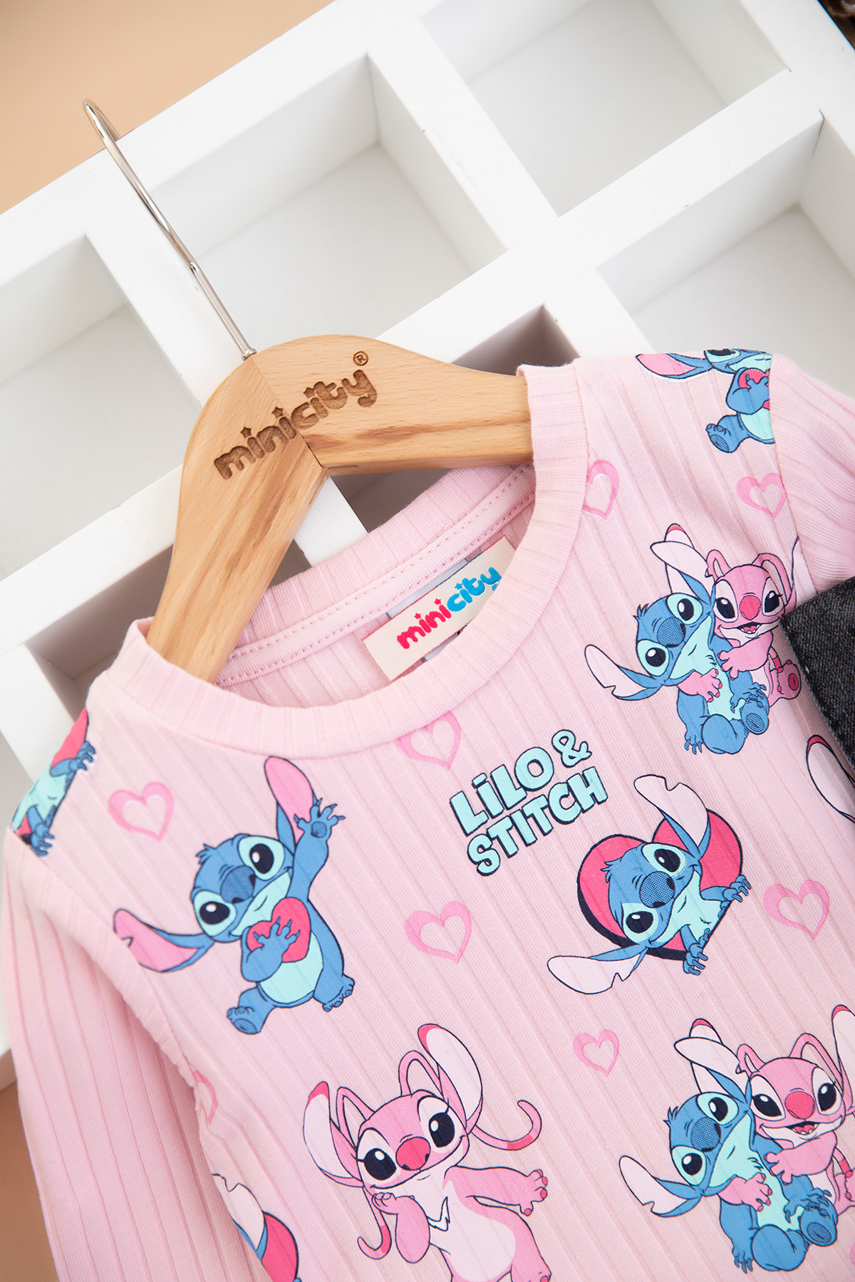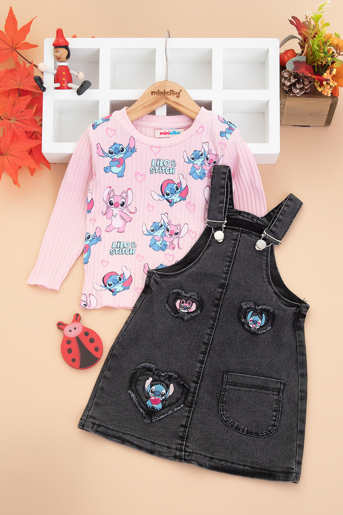 Kız Çocuk Stitch Kalp Baskılı Slopet 2 Li Takım - 8156 (2-8 Yaş)