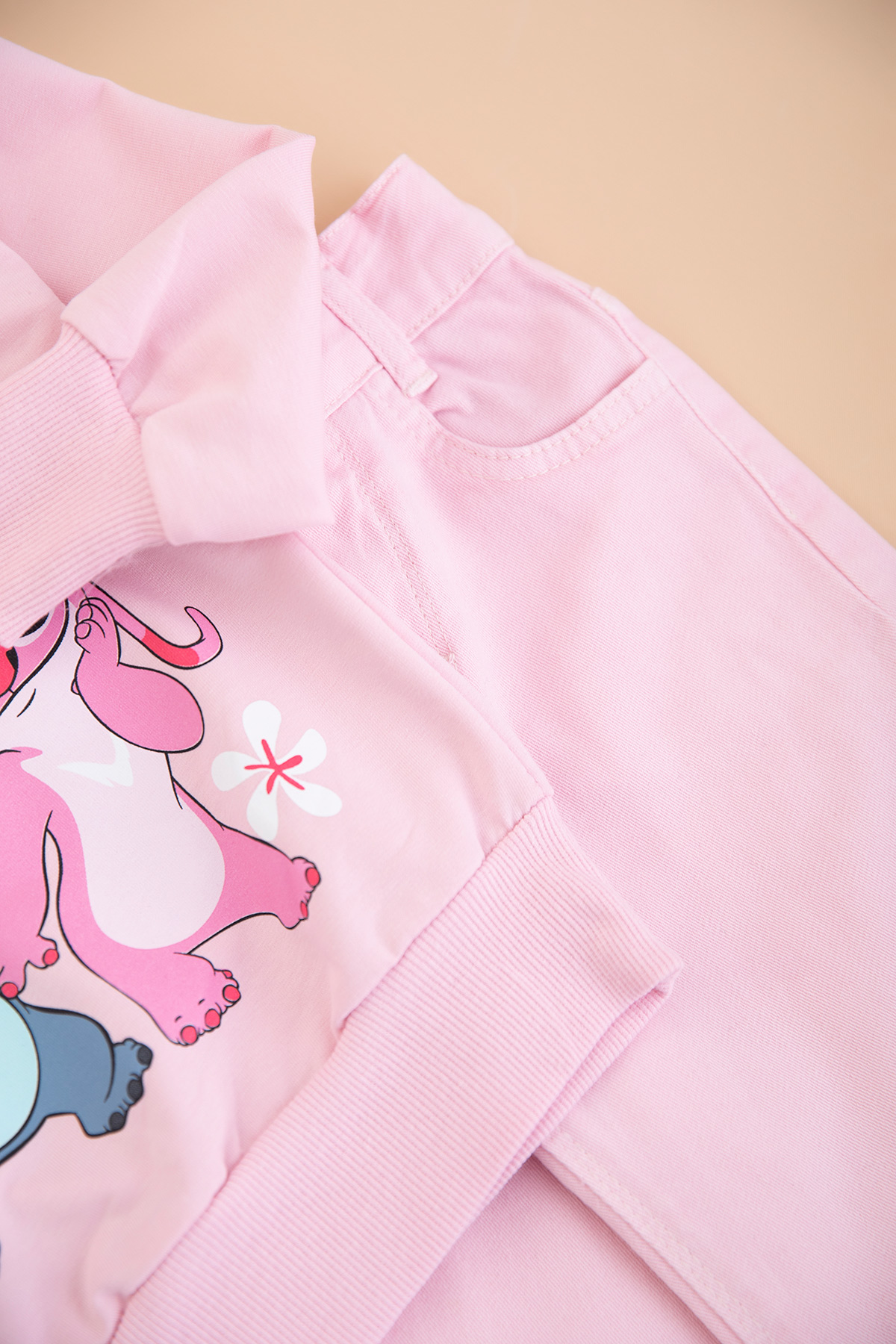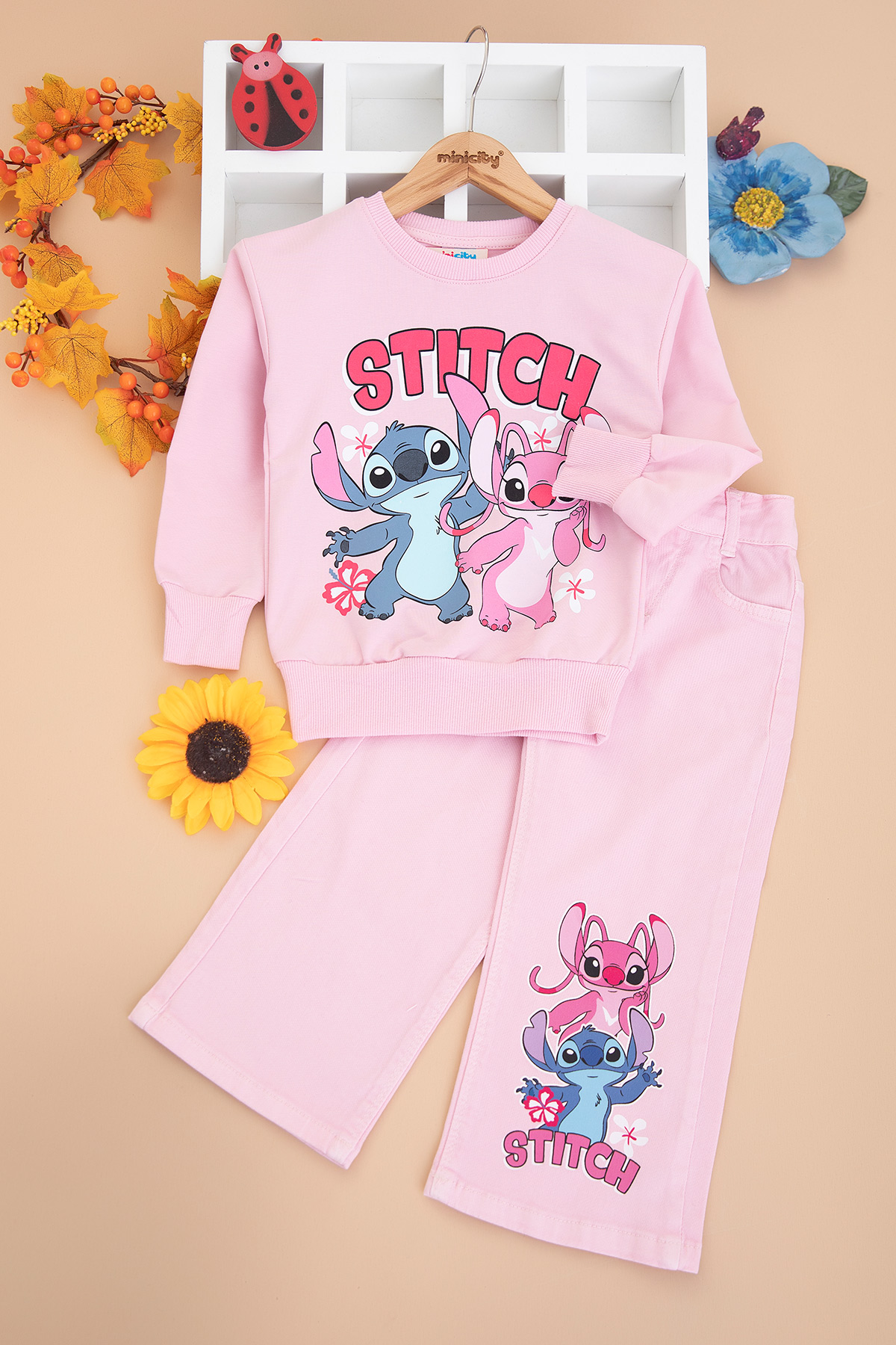 Kız Çocuk Stitch Kot Pantolon Takım - 6448 (3-10 Yaş)