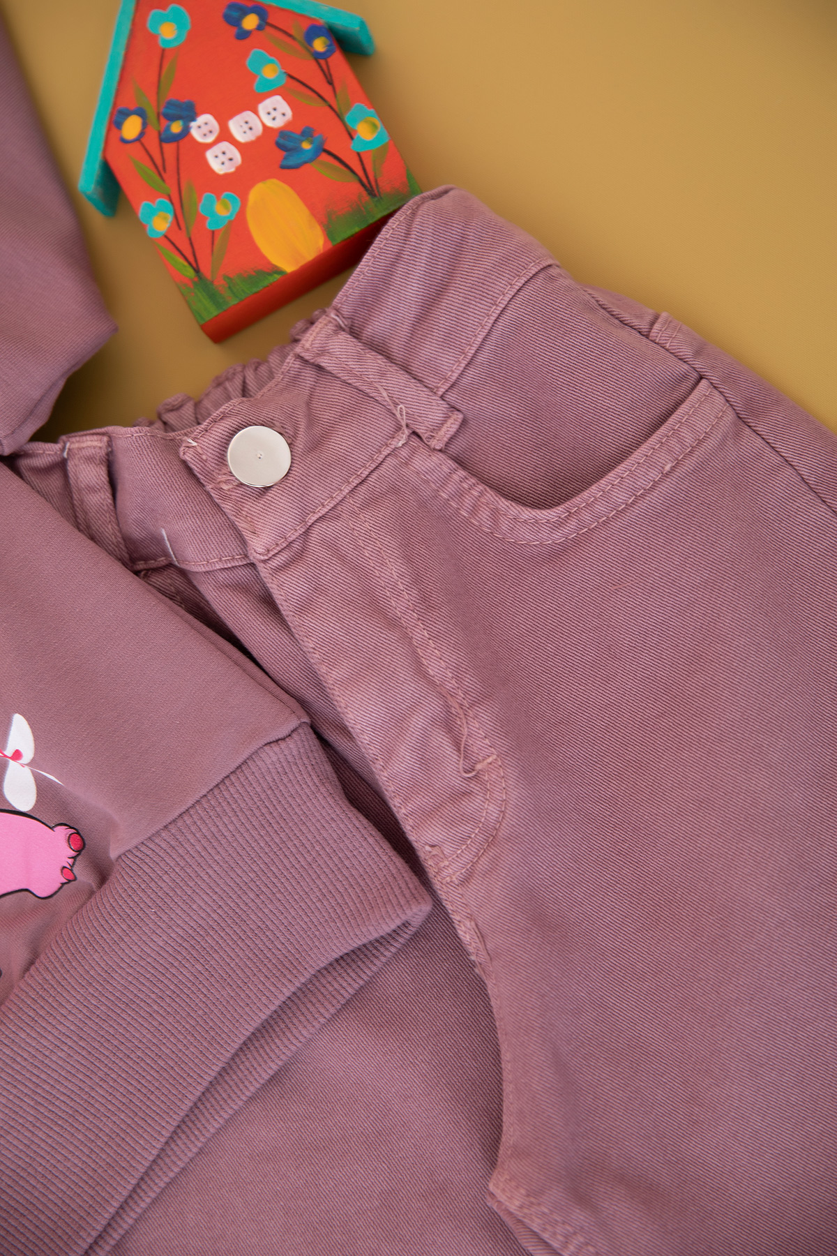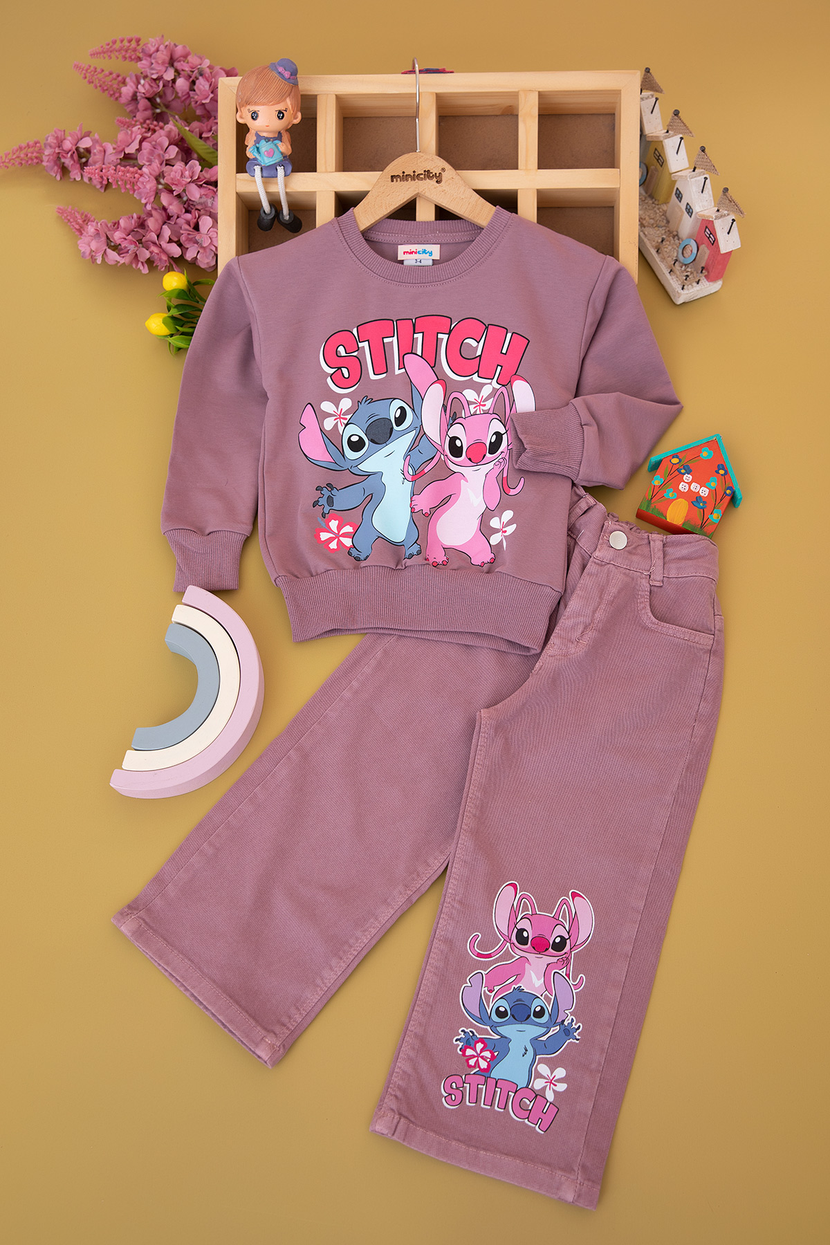 Kız Çocuk Stitch Kot Pantolon Takım - 6448 (3-10 Yaş)