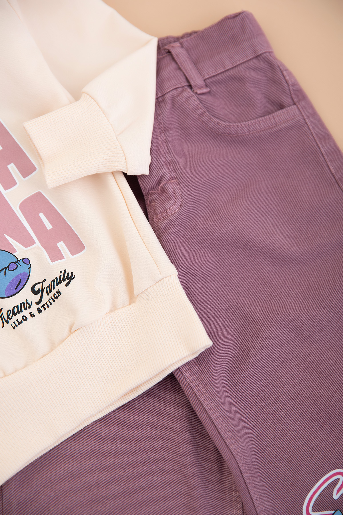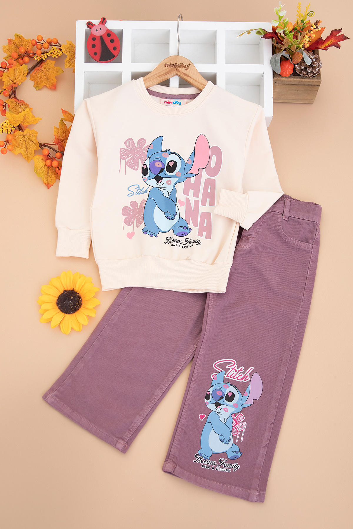 Kız Çocuk Stitch Kot Pantolon Takım - 6451 (3-10 Yaş)