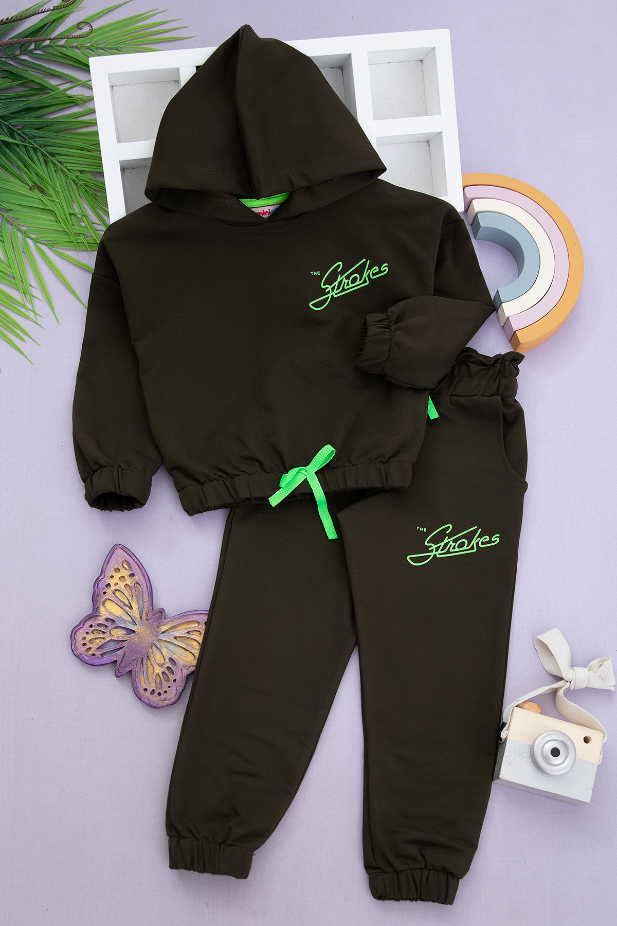 Kız Çocuk Strokes Neon Baskılı Takım - 7517 (6-9 Yaş)