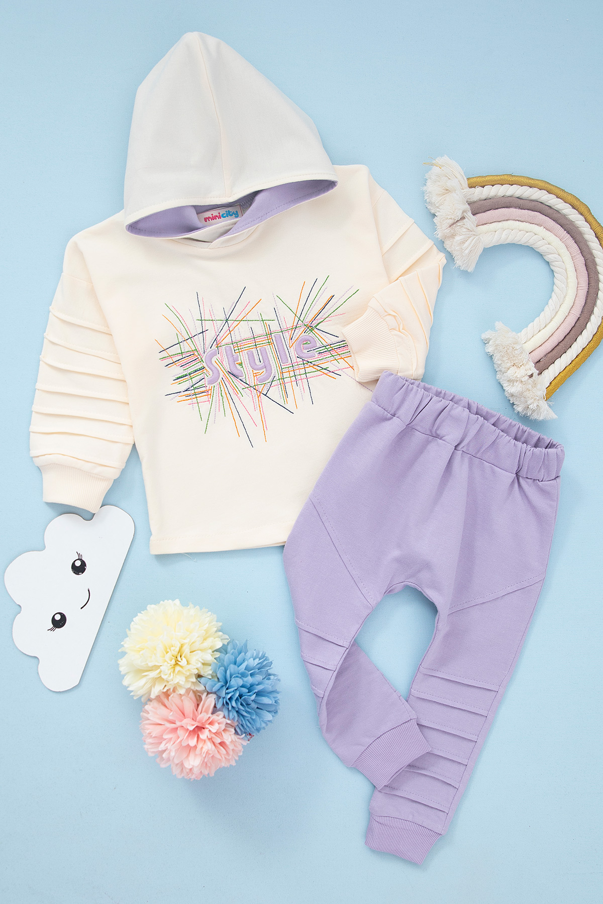 Kız Çocuk Style Nakışlı Kapşonlu Takım - 2125 (2-5 Yaş)