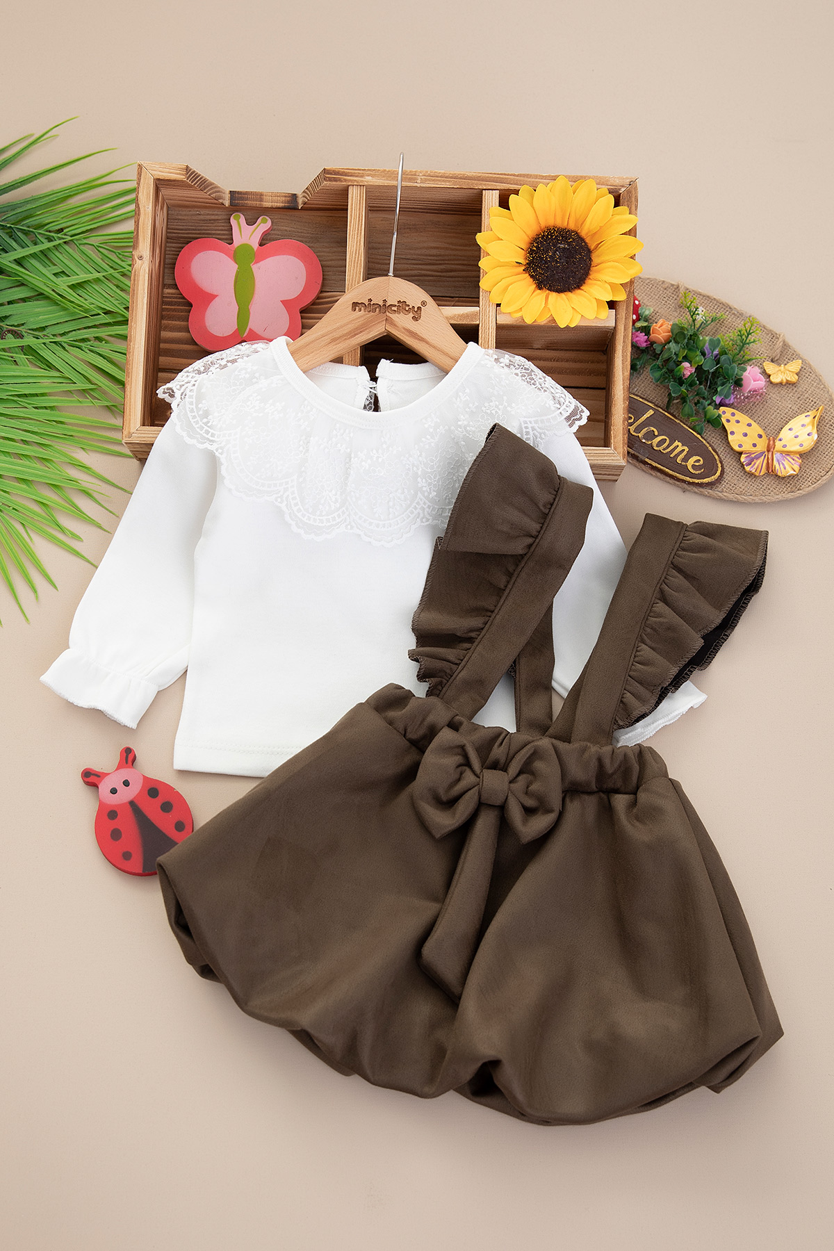 Kız Çocuk Süet Balon Etek Salopet Takım - 1616 (1-3 Yaş)