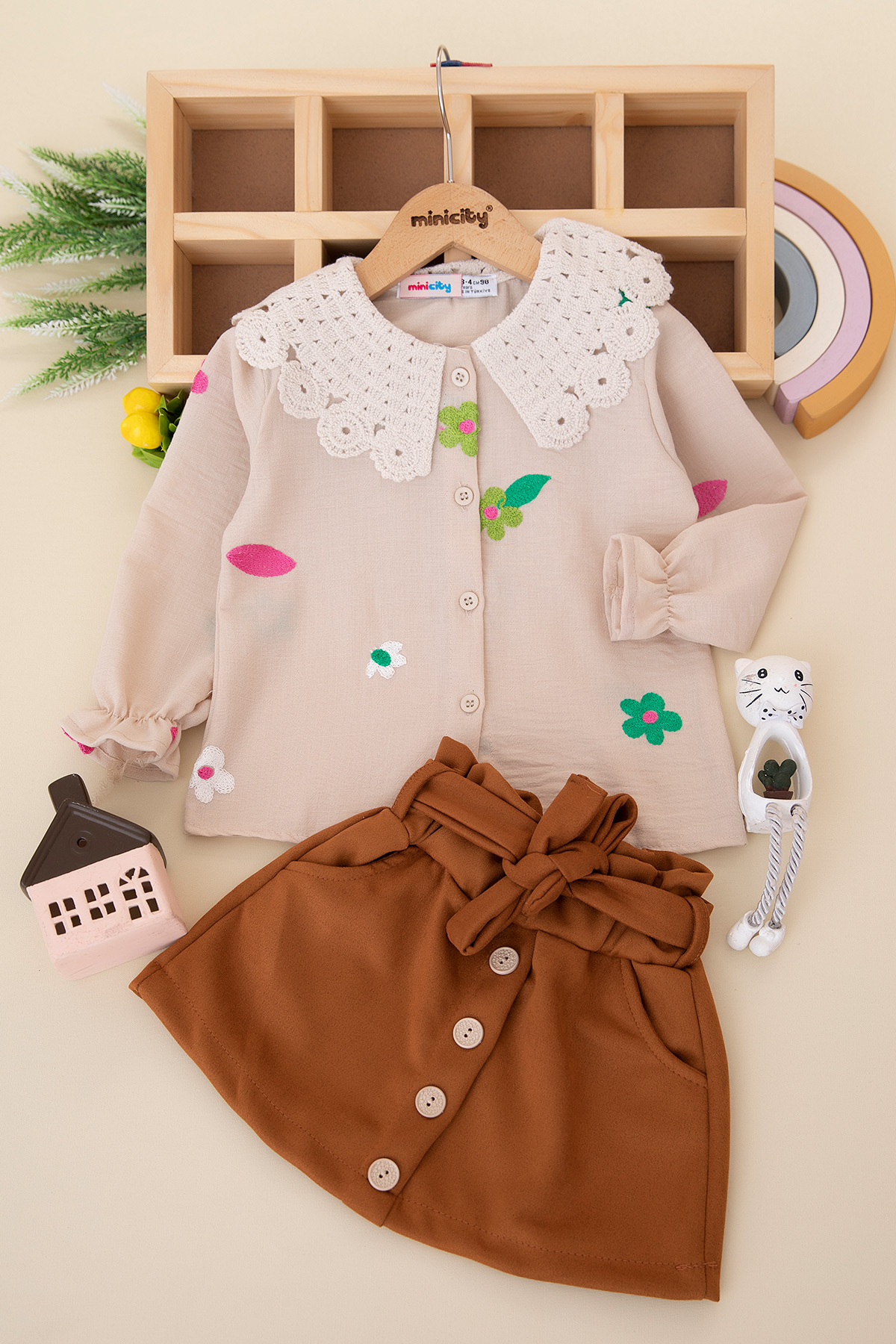 Kız Çocuk Süet Etekli Takım - 2378 (3-10 Yaş)