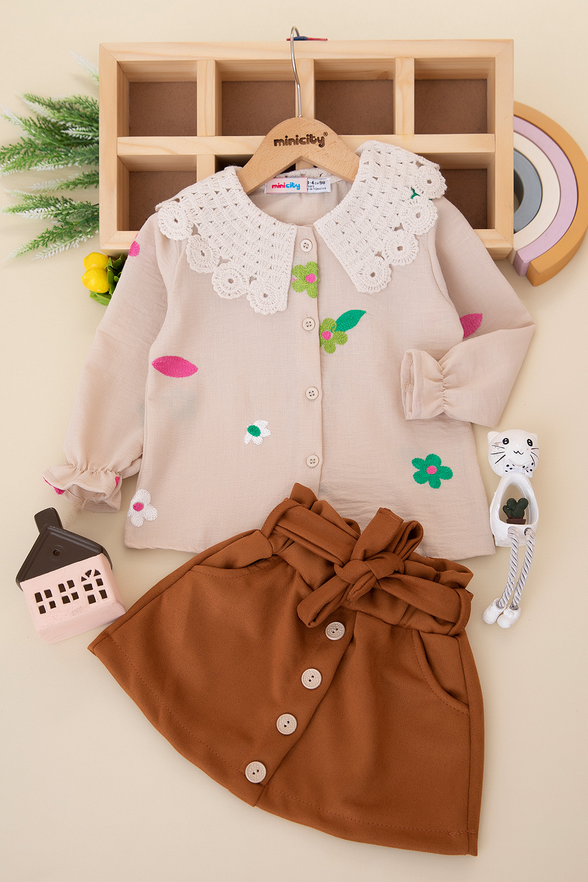 Kız Çocuk Süet Etekli Takım - 2378 (3-10 Yaş)