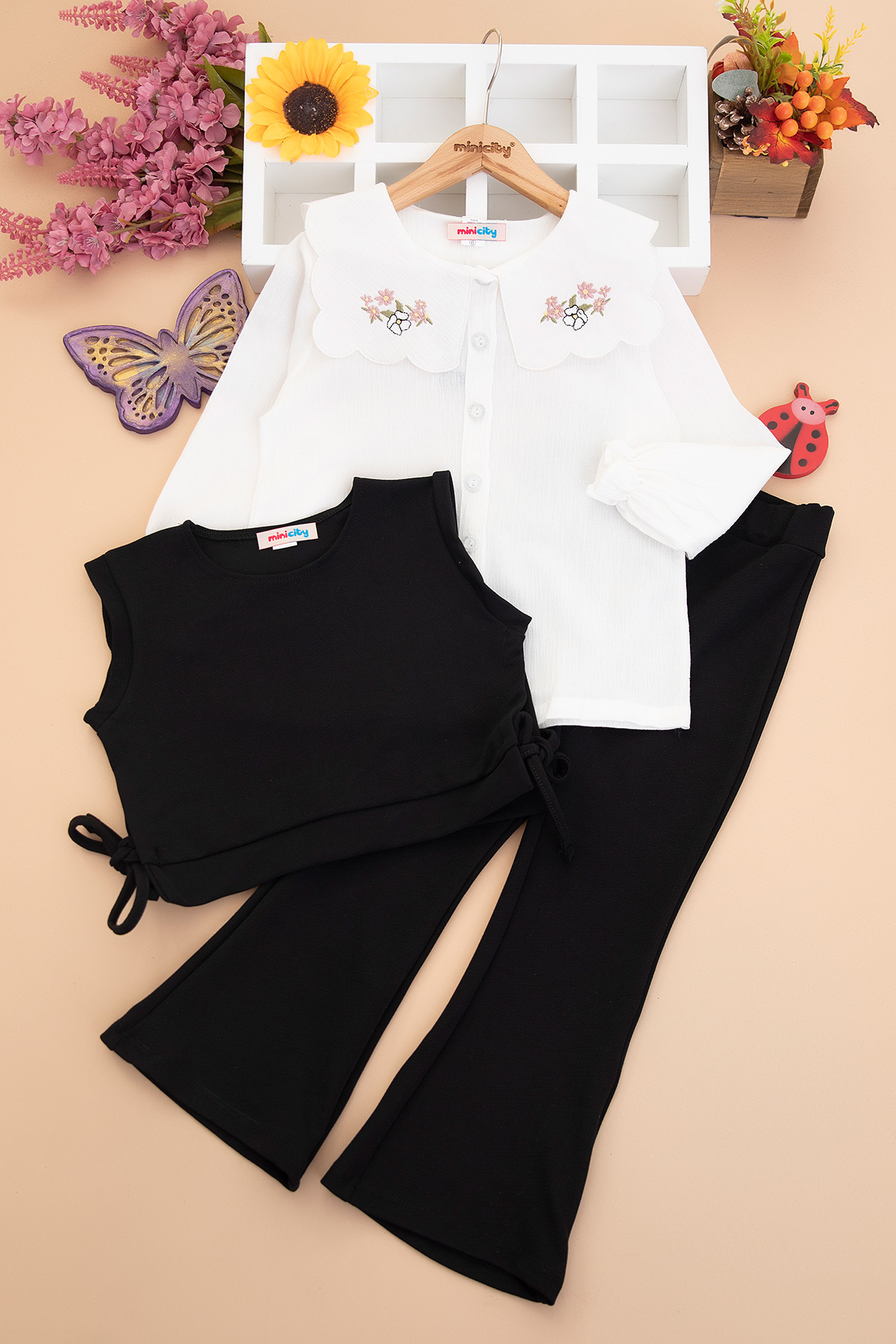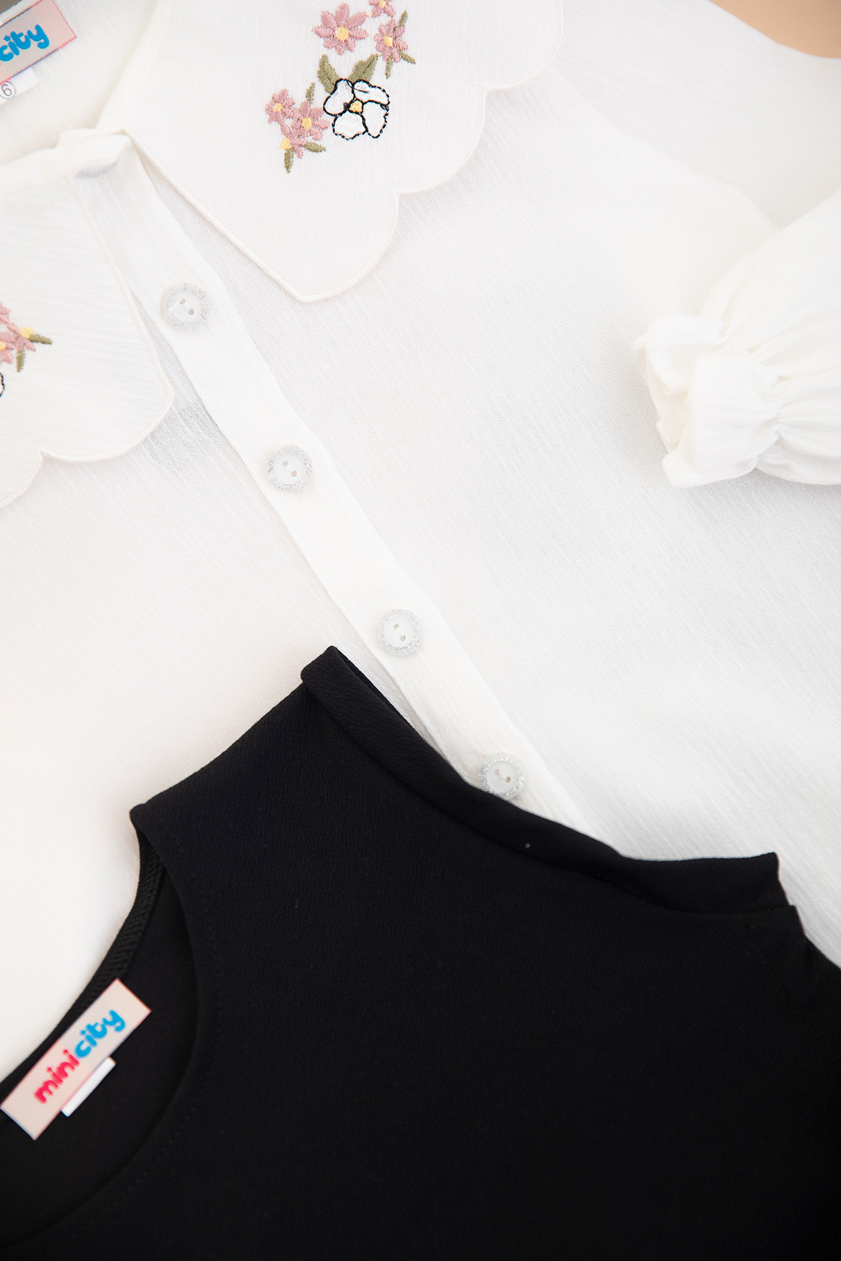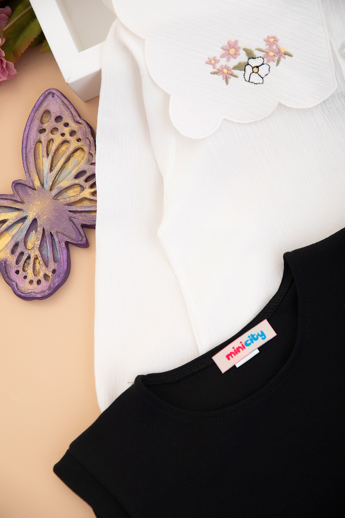 Kız Çocuk Sukuba Yaka Nakışlı Hırkalı Takım - 6463 (6-9 Yaş)