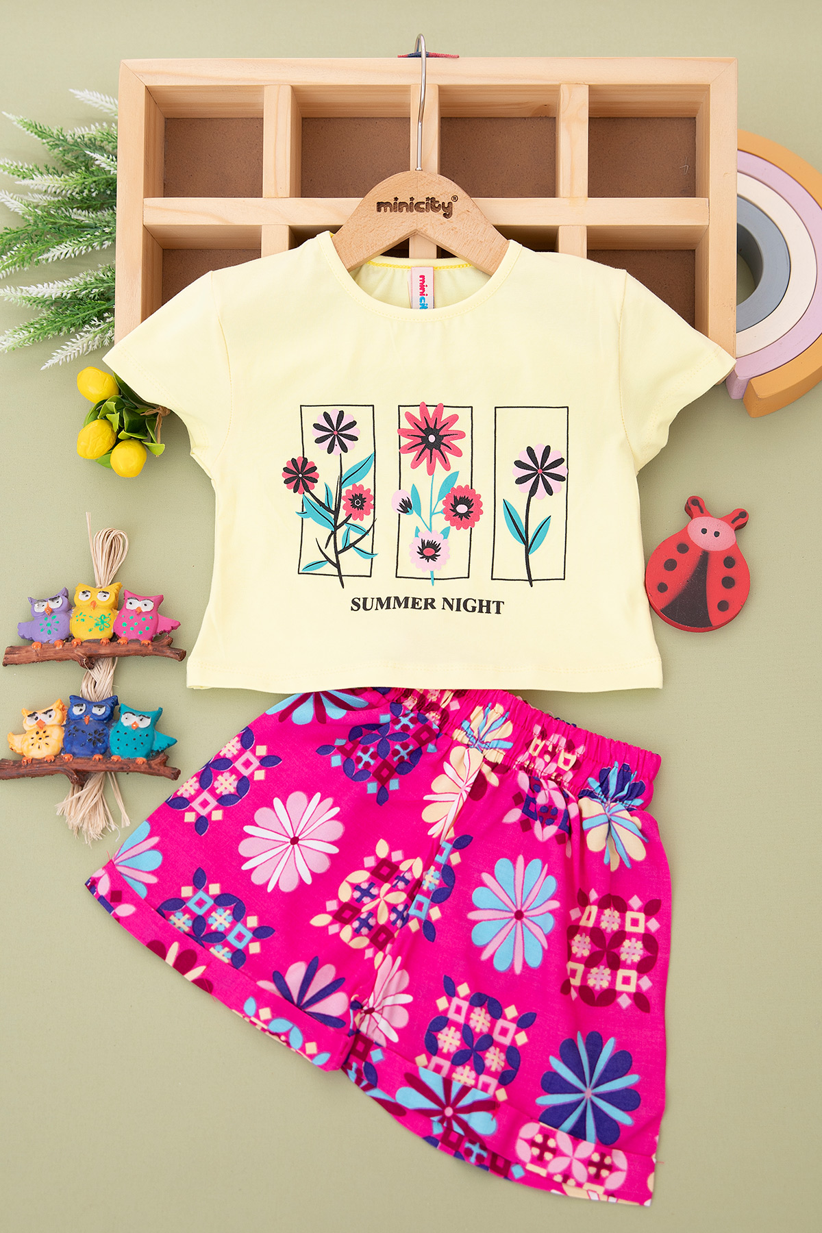 Kız Çocuk Summer Night Baskılı Şortlu Takım - 3006 (2-5 Yaş)