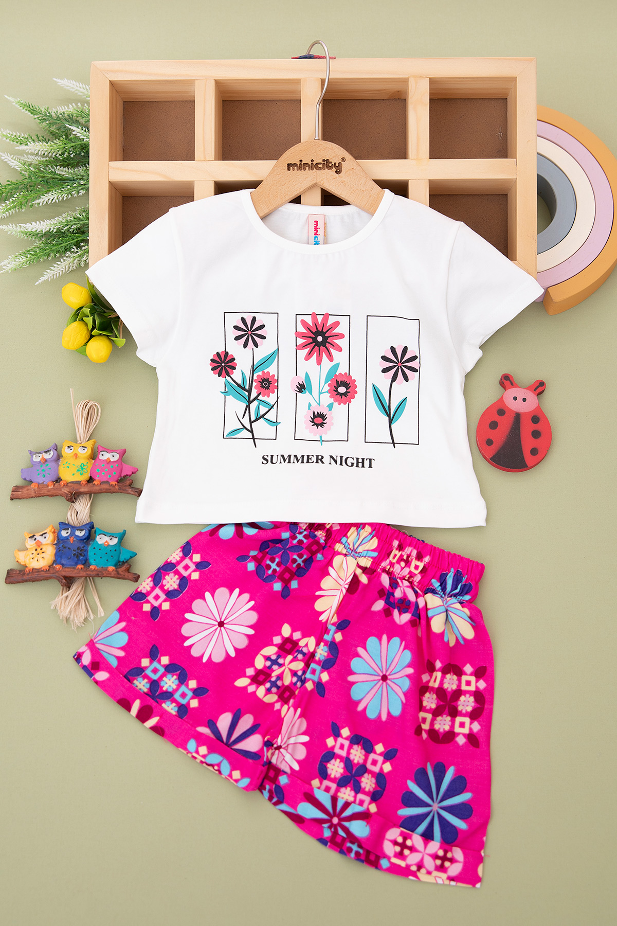 Kız Çocuk Summer Night Baskılı Şortlu Takım - 3006 (2-5 Yaş)
