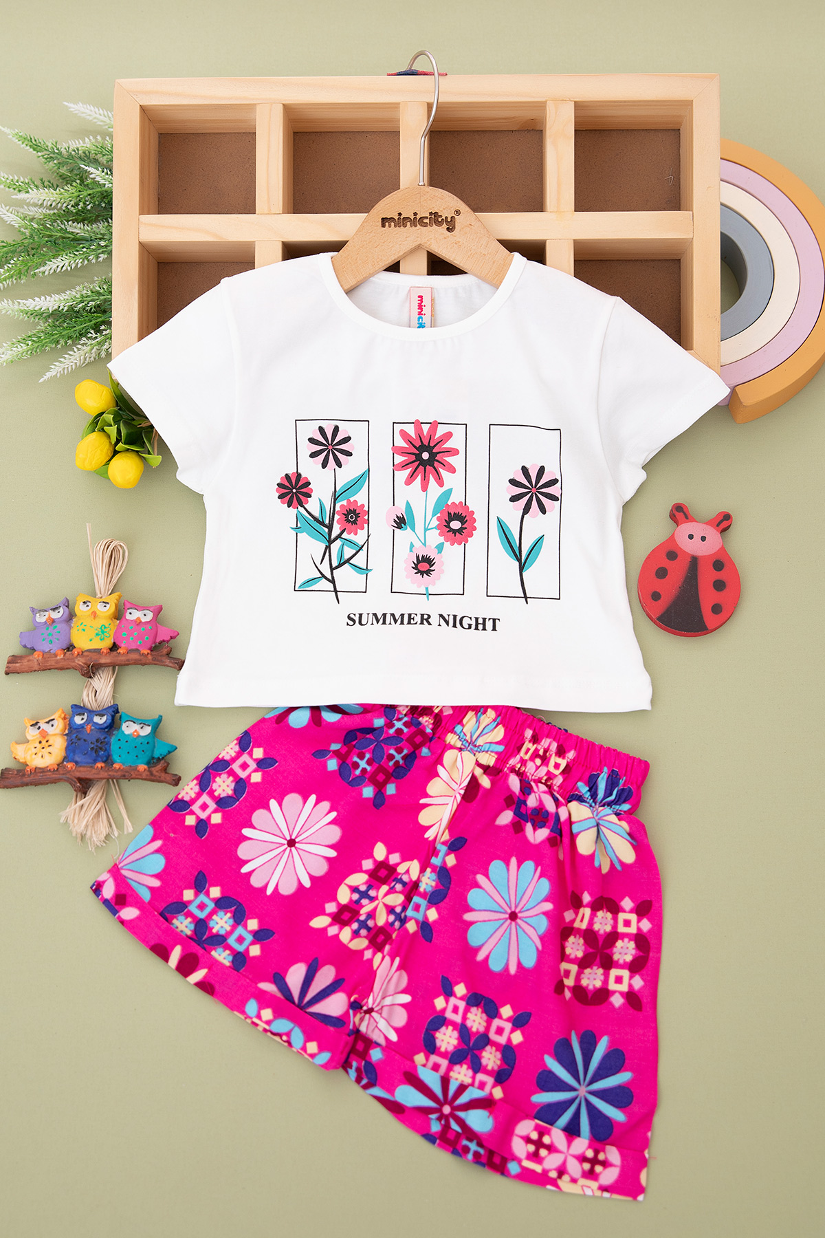 Kız Çocuk Summer Night Baskılı Şortlu Takım - 3007 (5-8 Yaş)