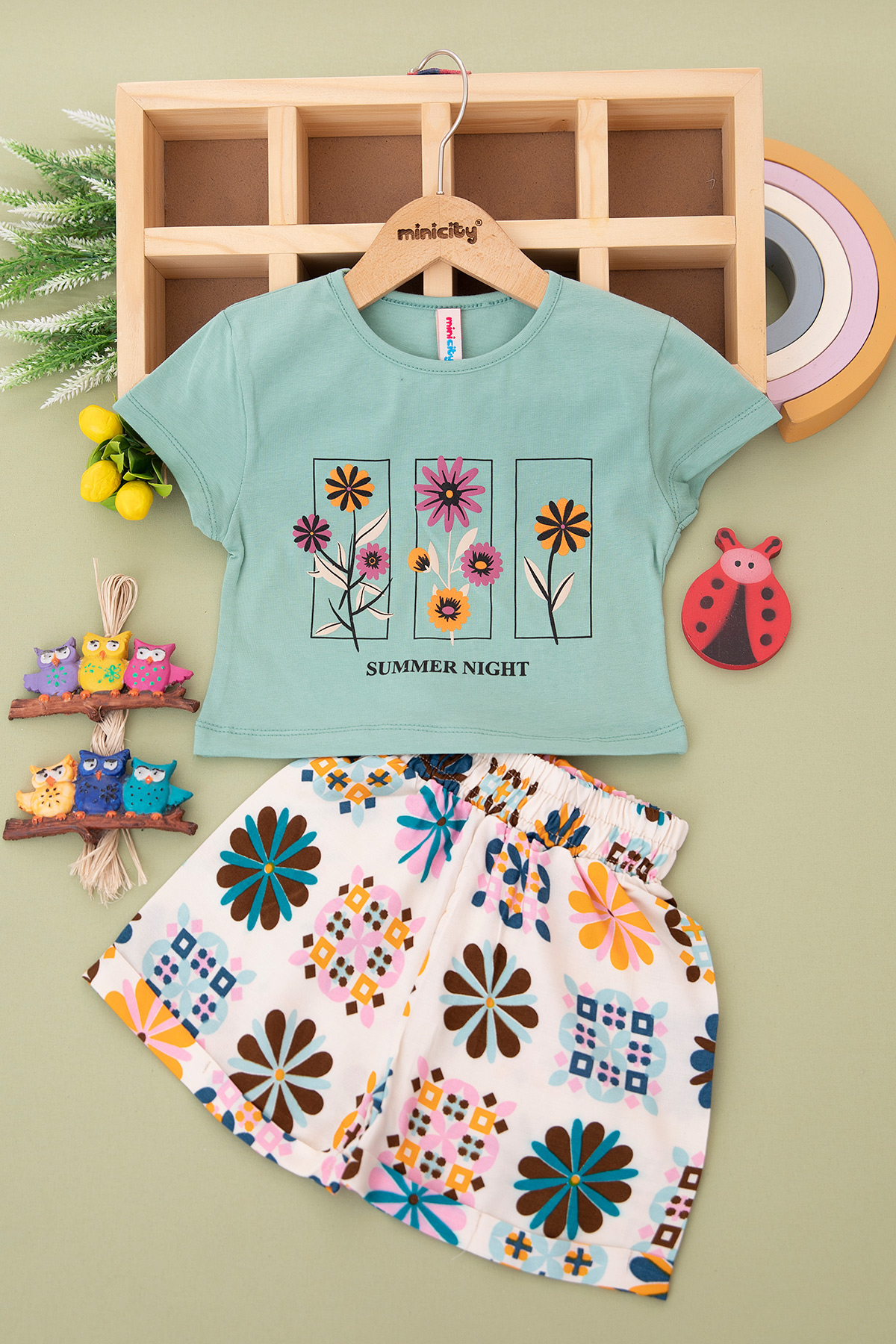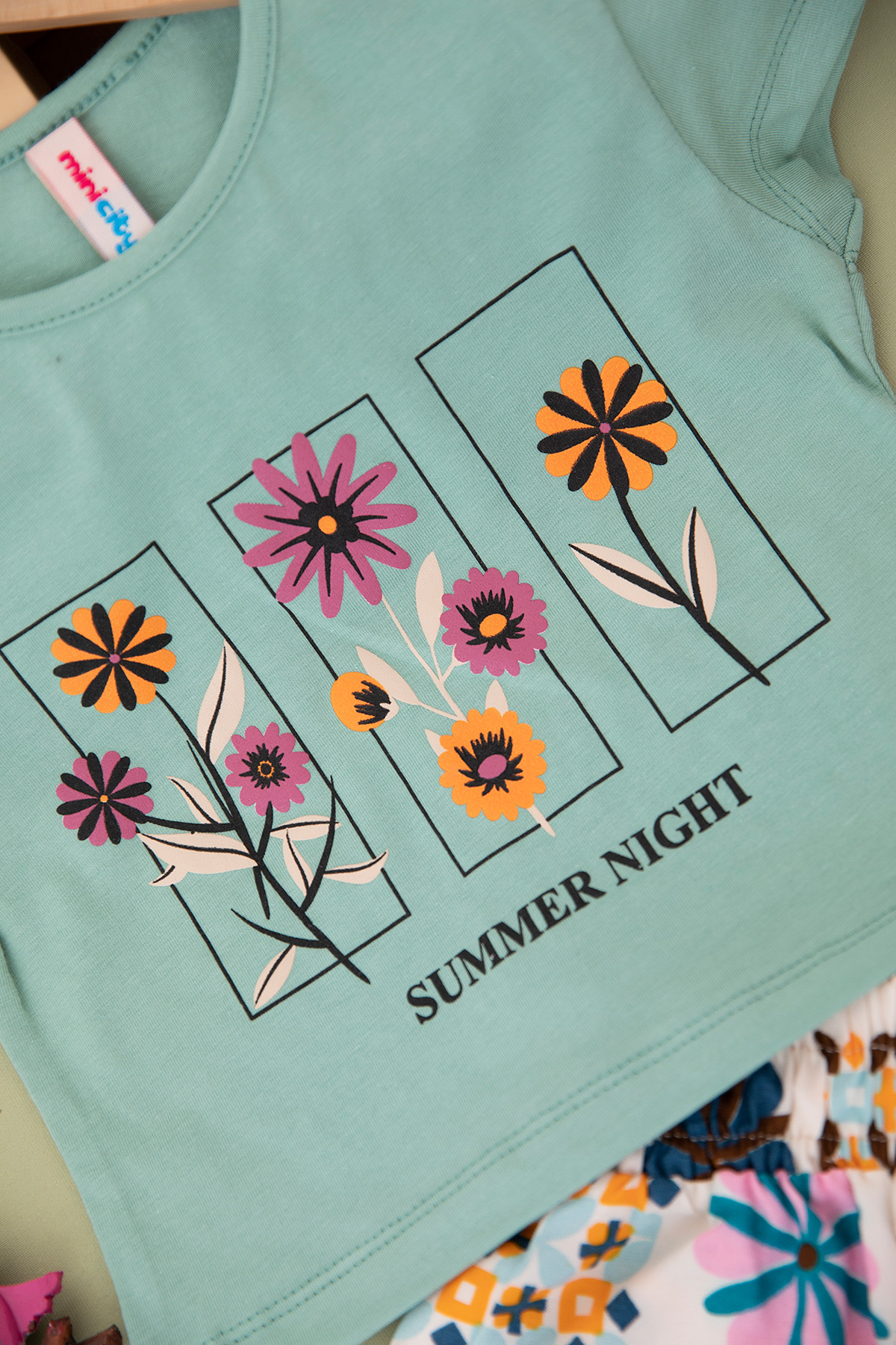 Kız Çocuk Summer Night Baskılı Şortlu Takım - 3007 (5-8 Yaş)