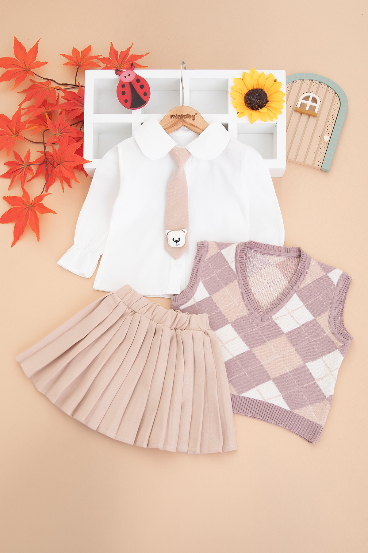 Kız Çocuk Süveterli Kravatlı Takım - 4170 (2-5 Yaş)