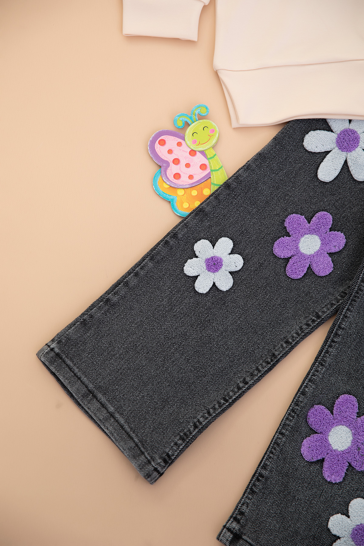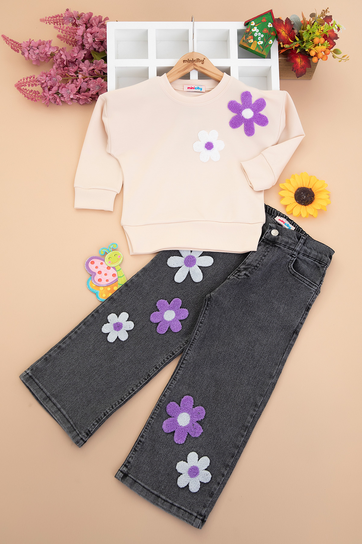 Kız Çocuk Süzene Çiçek Nakışlı Takım - 5147 (4-11 Yaş)