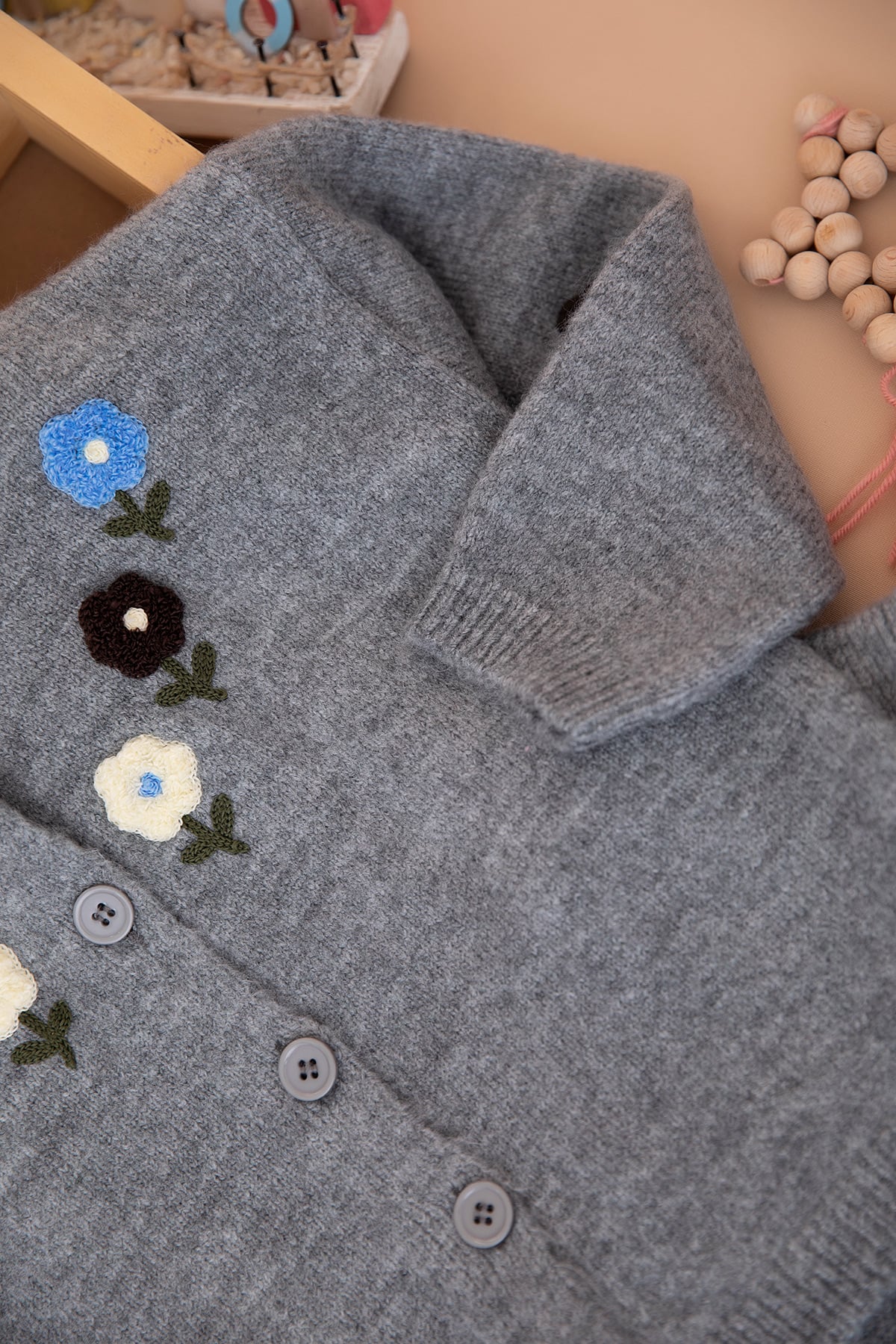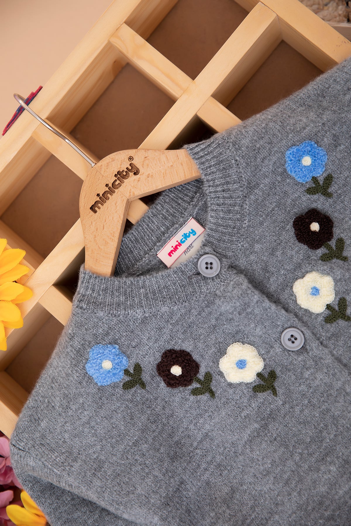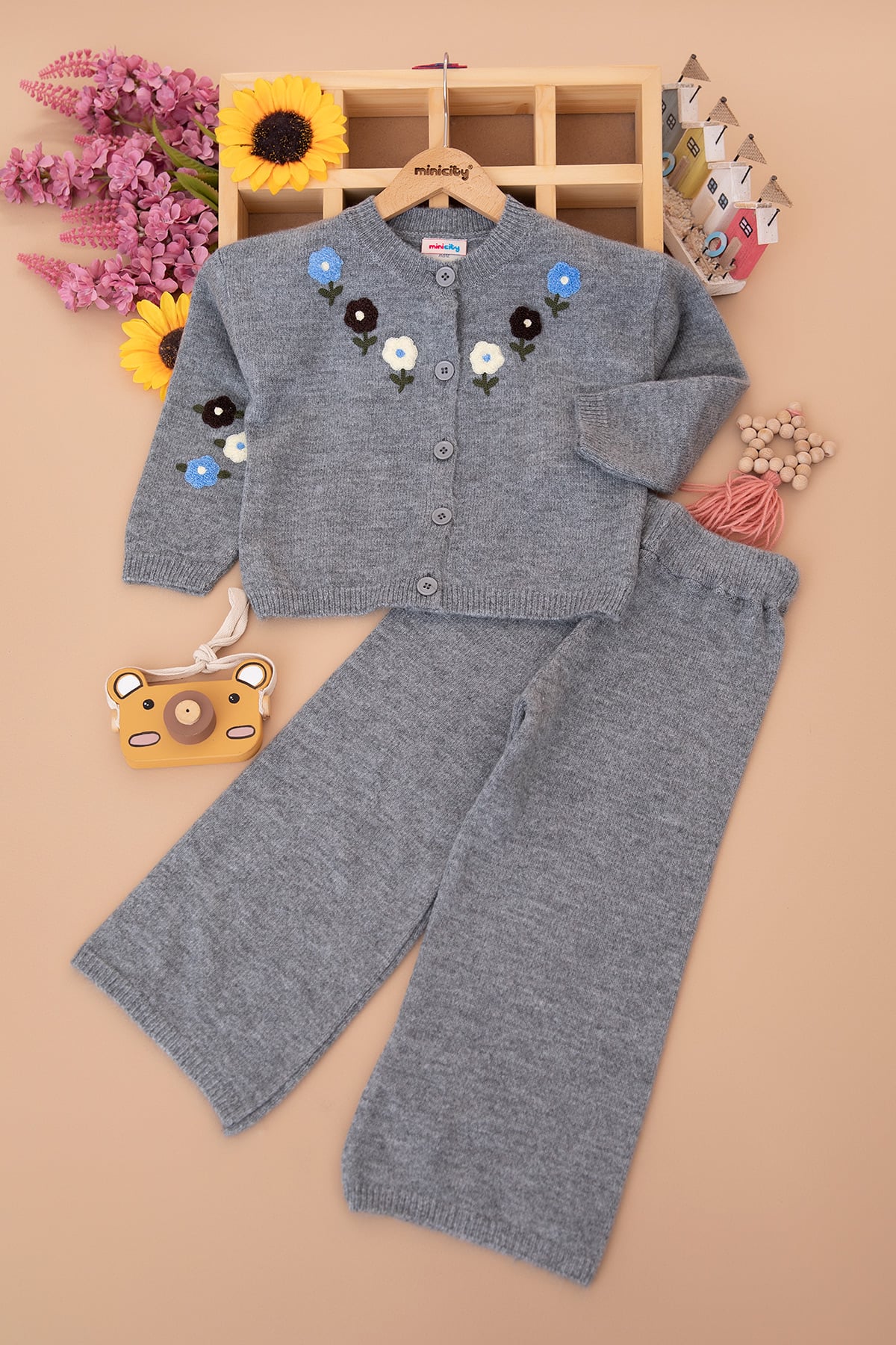 Kız Çocuk Süzene Çiçek Nakışlı Triko Hırkalı Takım (3-10 Yaş)