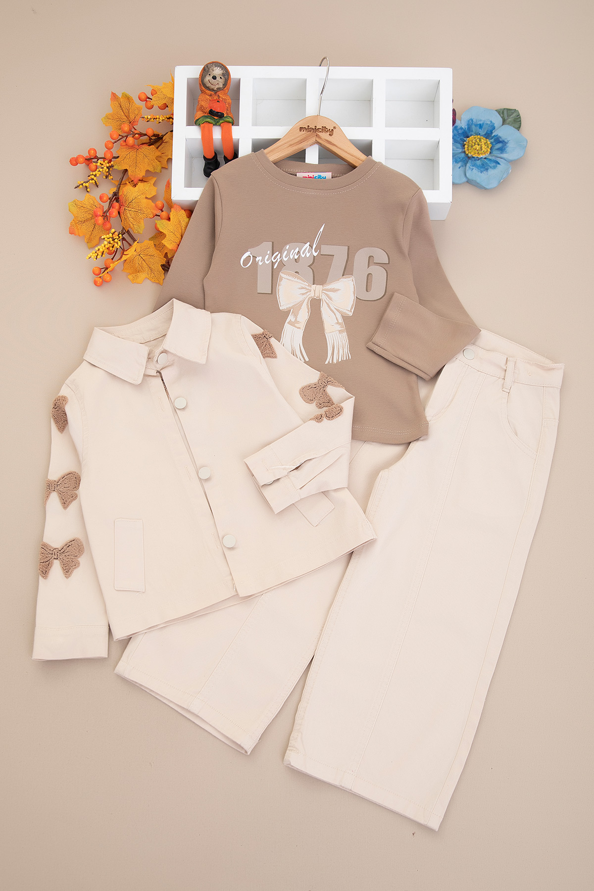 Kız Çocuk Süzene Fiyonk Ceketli Takım - 50710 (5-8 Yaş)